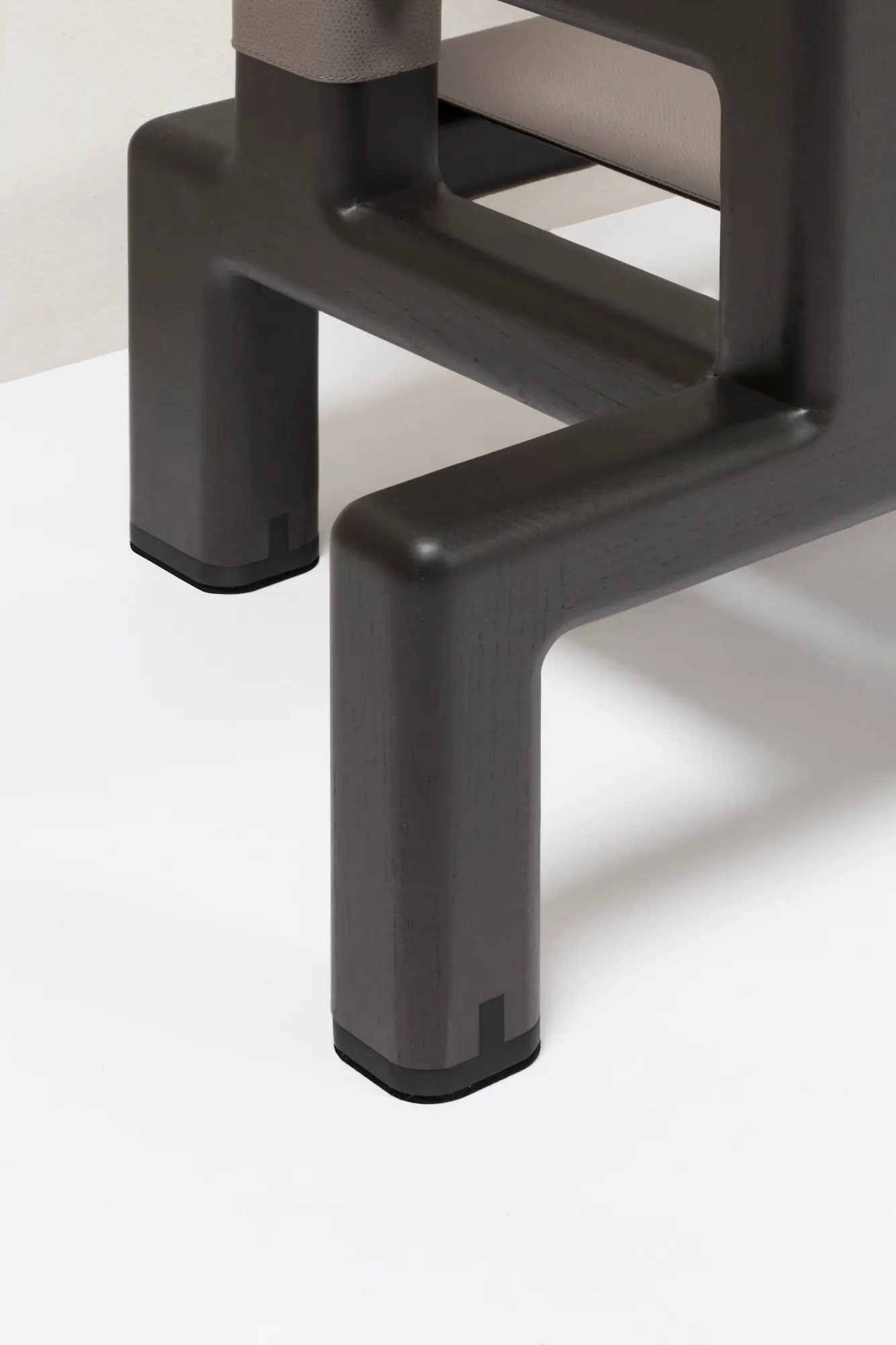 Materials: leather and dark-stained Canaletto walnut wood. Provided with inox or brushed bronze decorative feet. Custom sizes available on request.