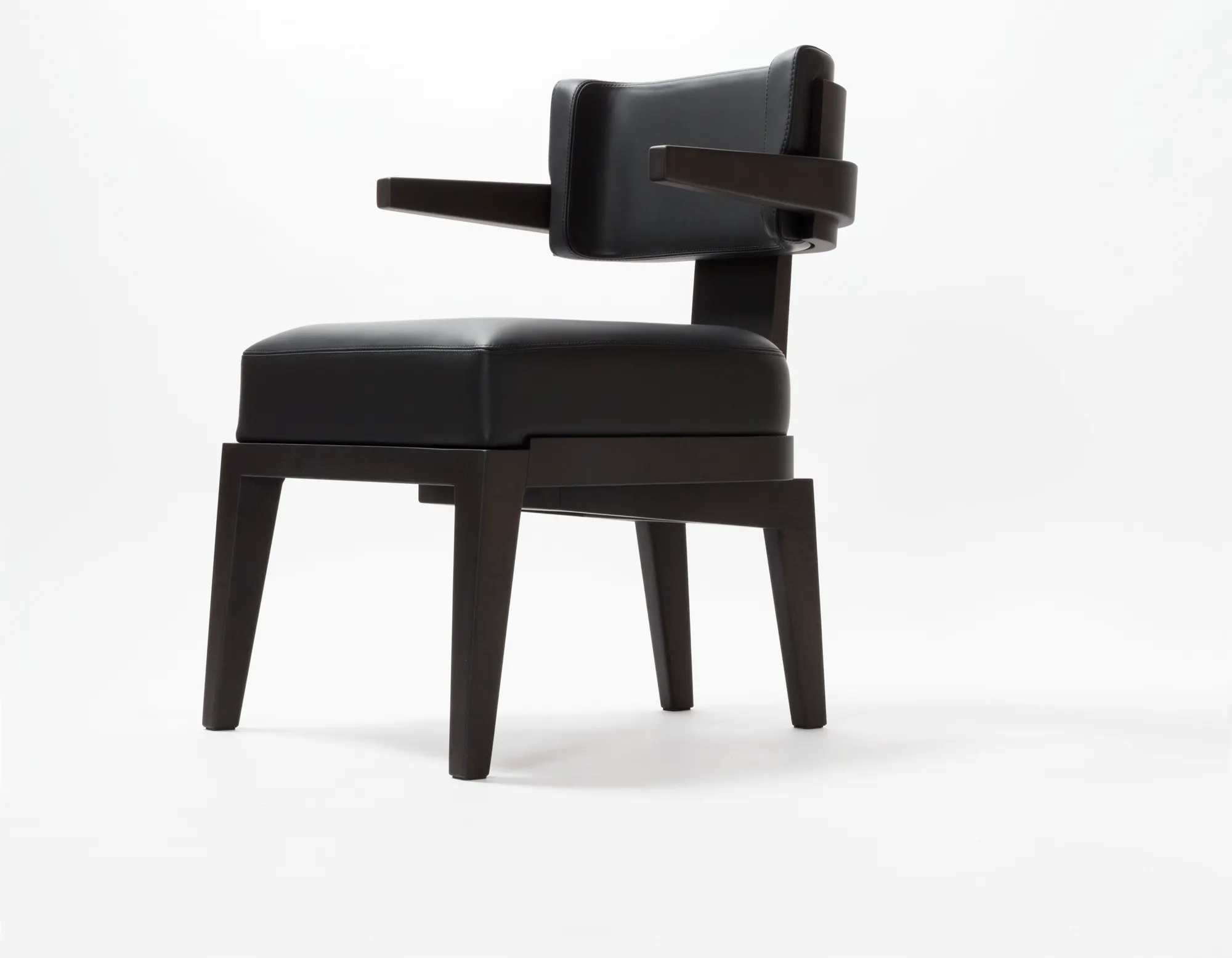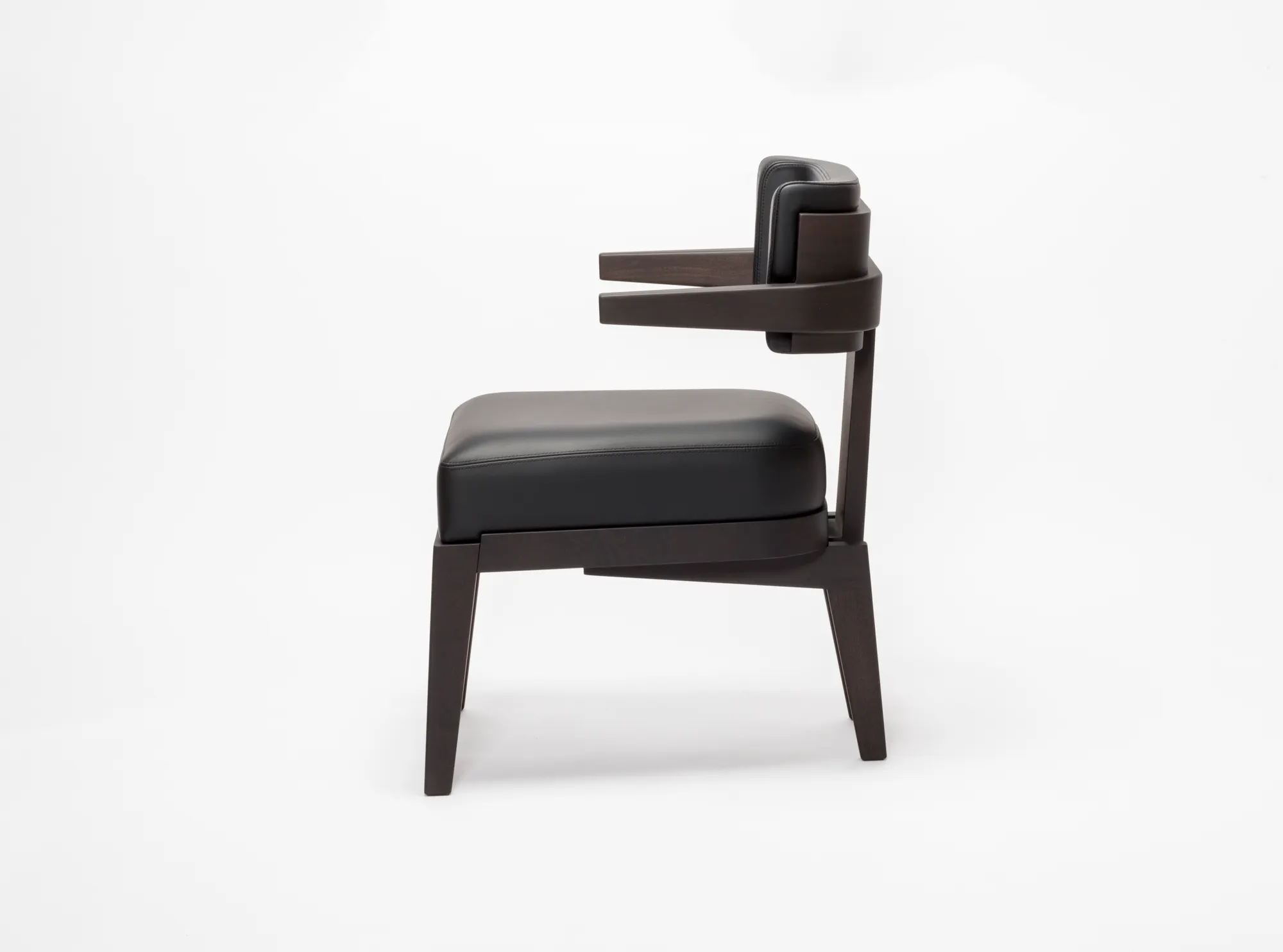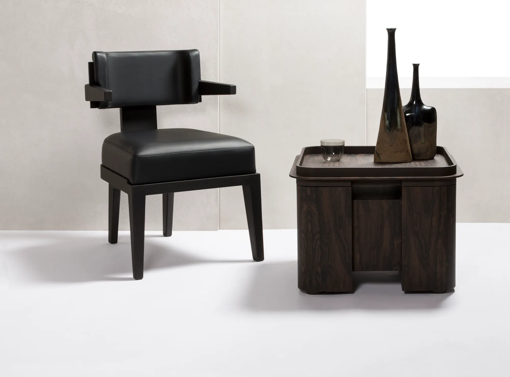 Materials: Canaletto walnut wood structure with upholstered leather cushions. Choose between two available wood finishes. Custom sizes and fabric available on request.