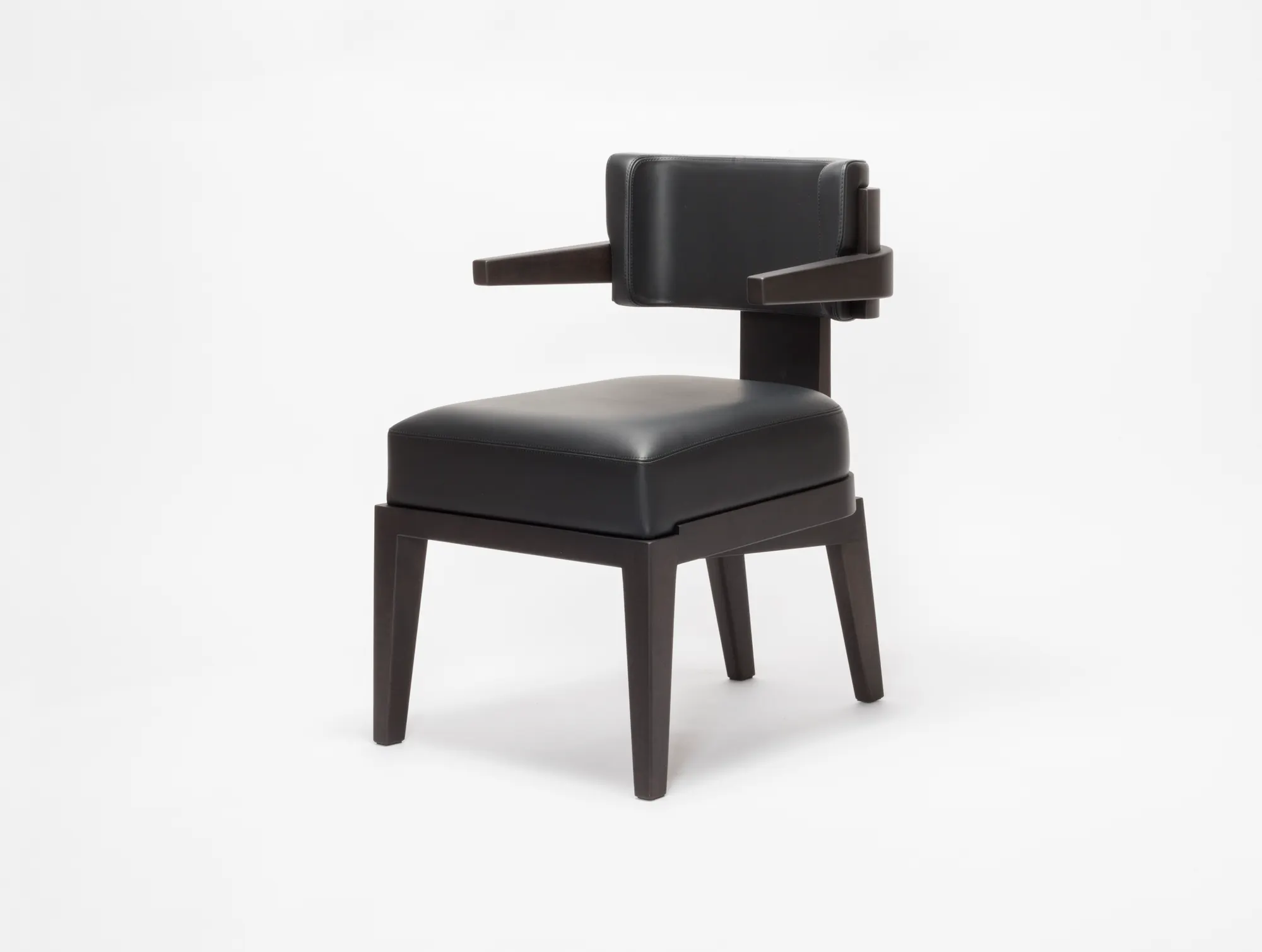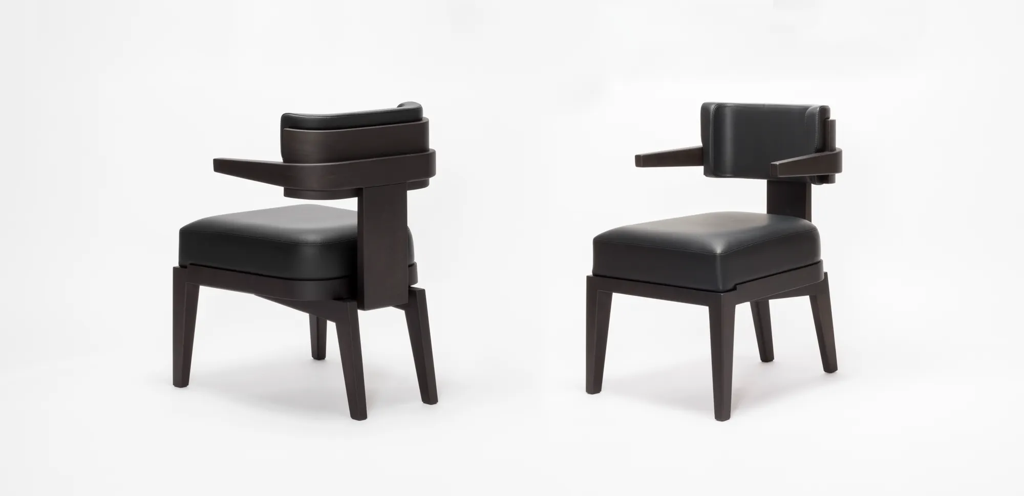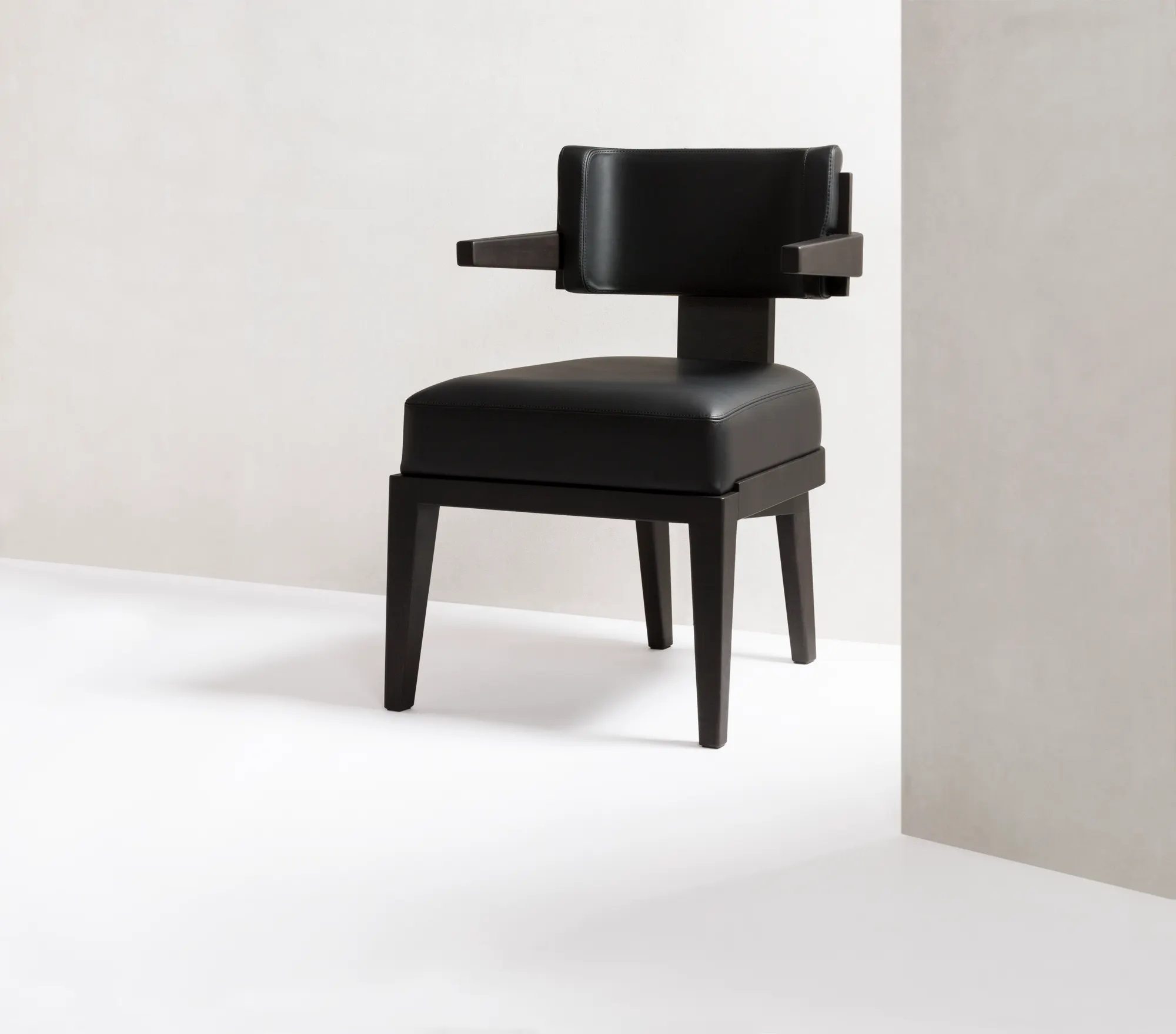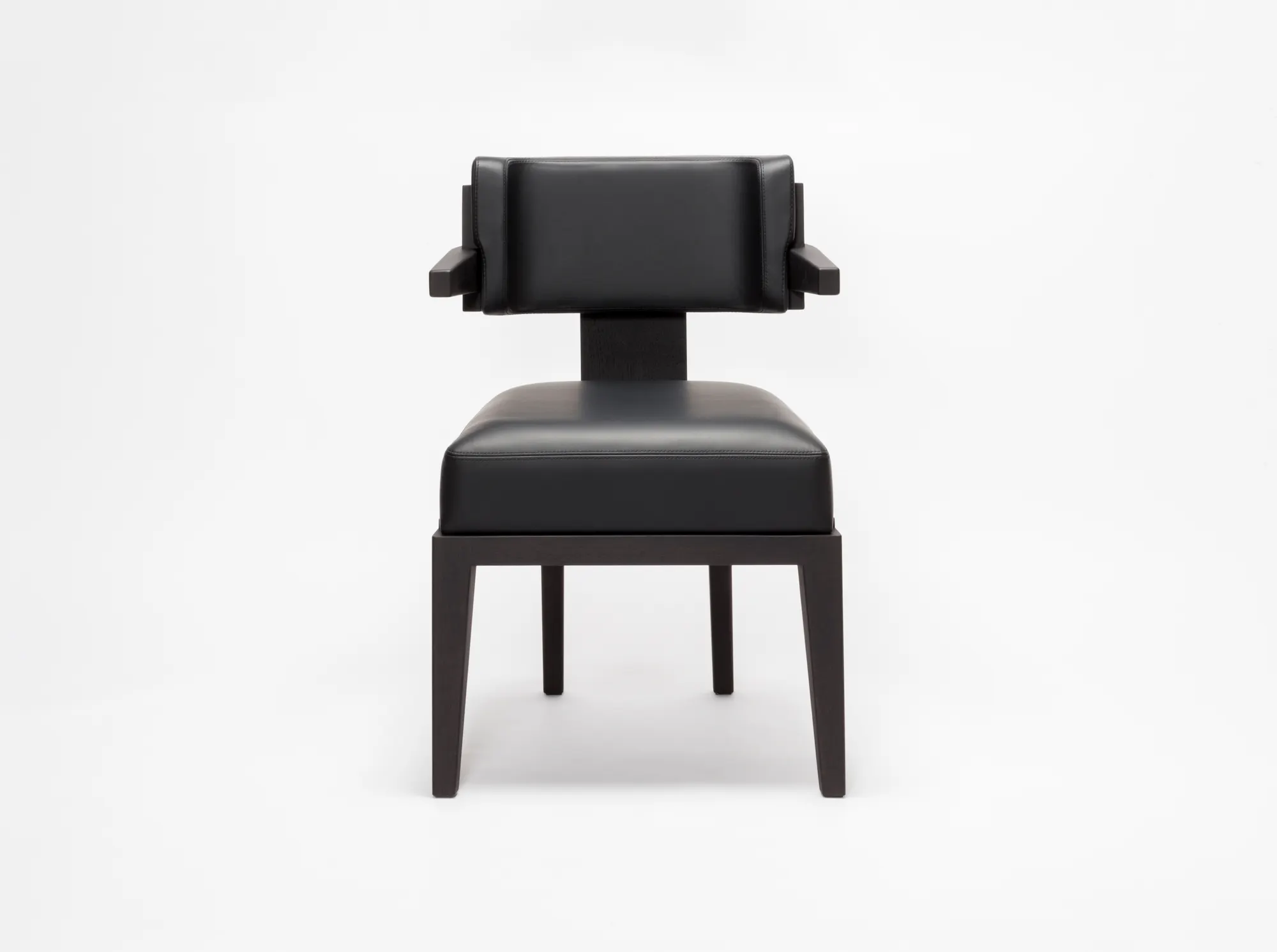 Materials: Canaletto walnut wood structure with upholstered leather cushions. Choose between two available wood finishes. Custom sizes and fabric available on request.