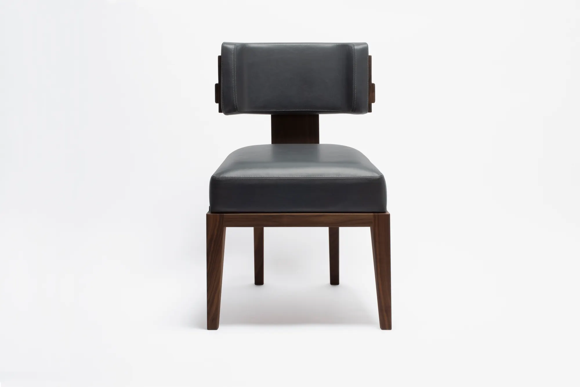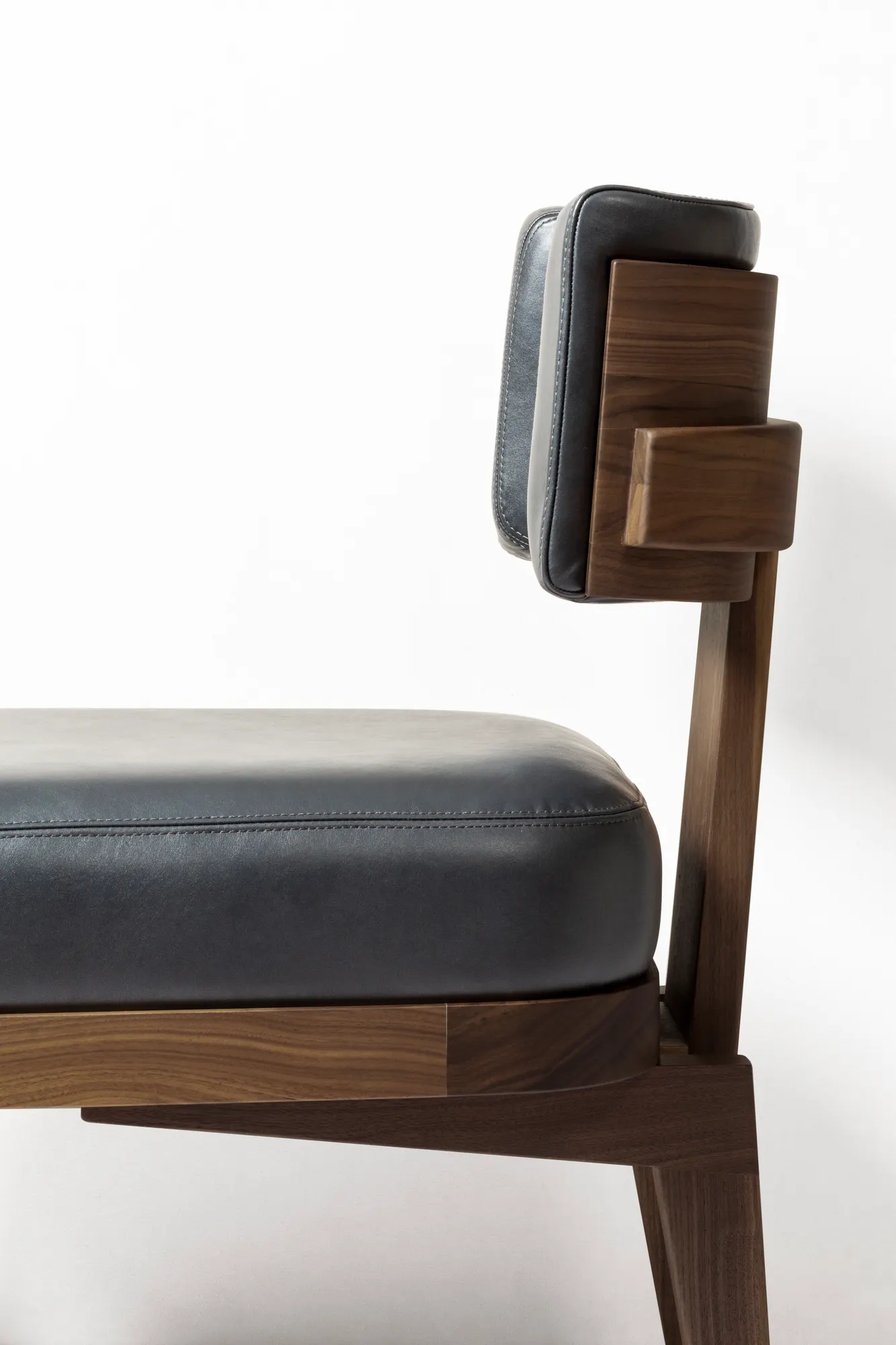 Materials: Canaletto walnut wood structure with upholstered leather cushions. Choose between two available wood finishes. Custom sizes and fabric available on request.