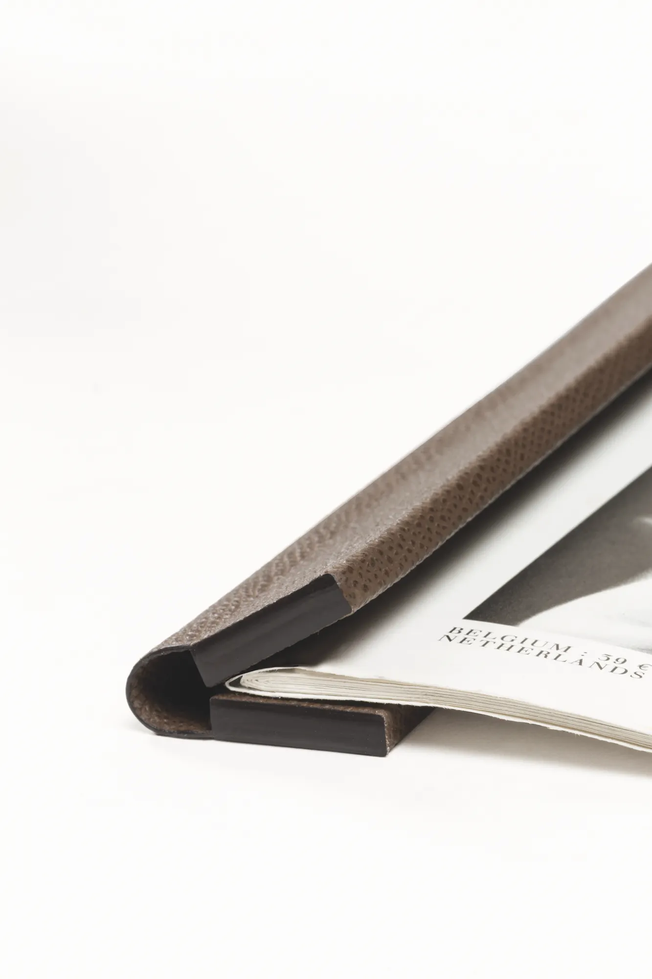 Leather covered heavy magnetic flaps able to keep together up to 6mm thick sheets. All-leather structure with soft padding. Ideal for project presentations and home-printed newspapers used during cruises. Leather covered inner heavy magnetic flaps able to keep together up to 6mm thick sheets.