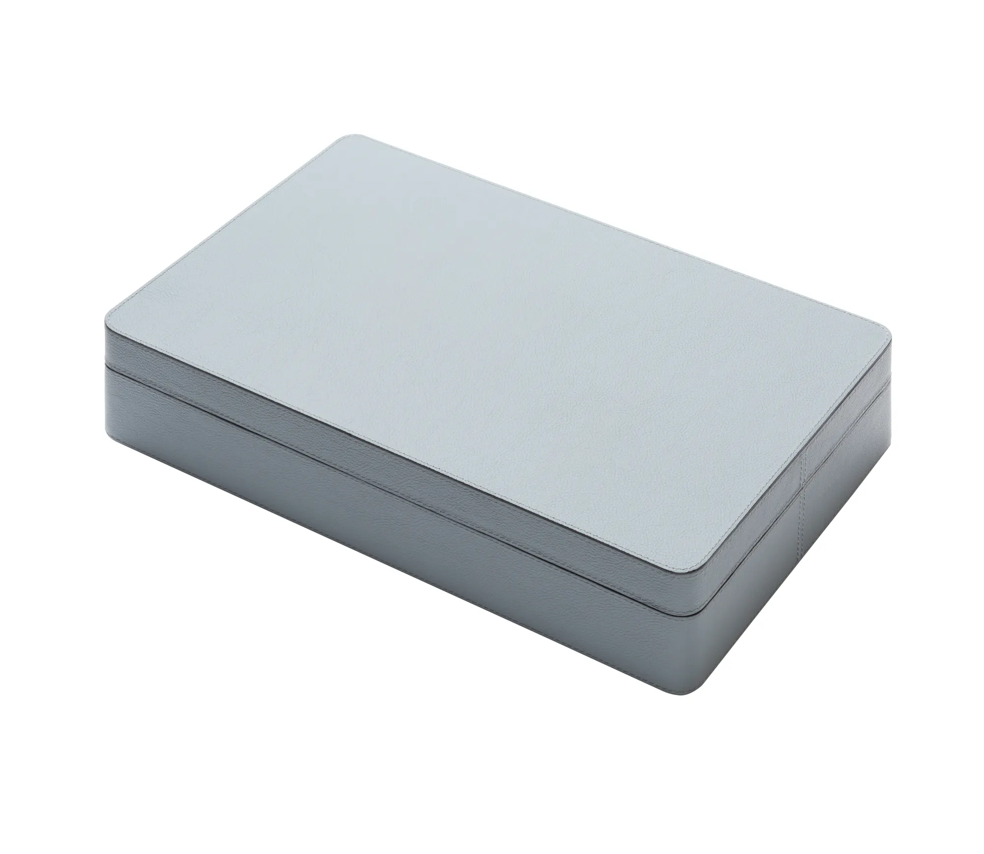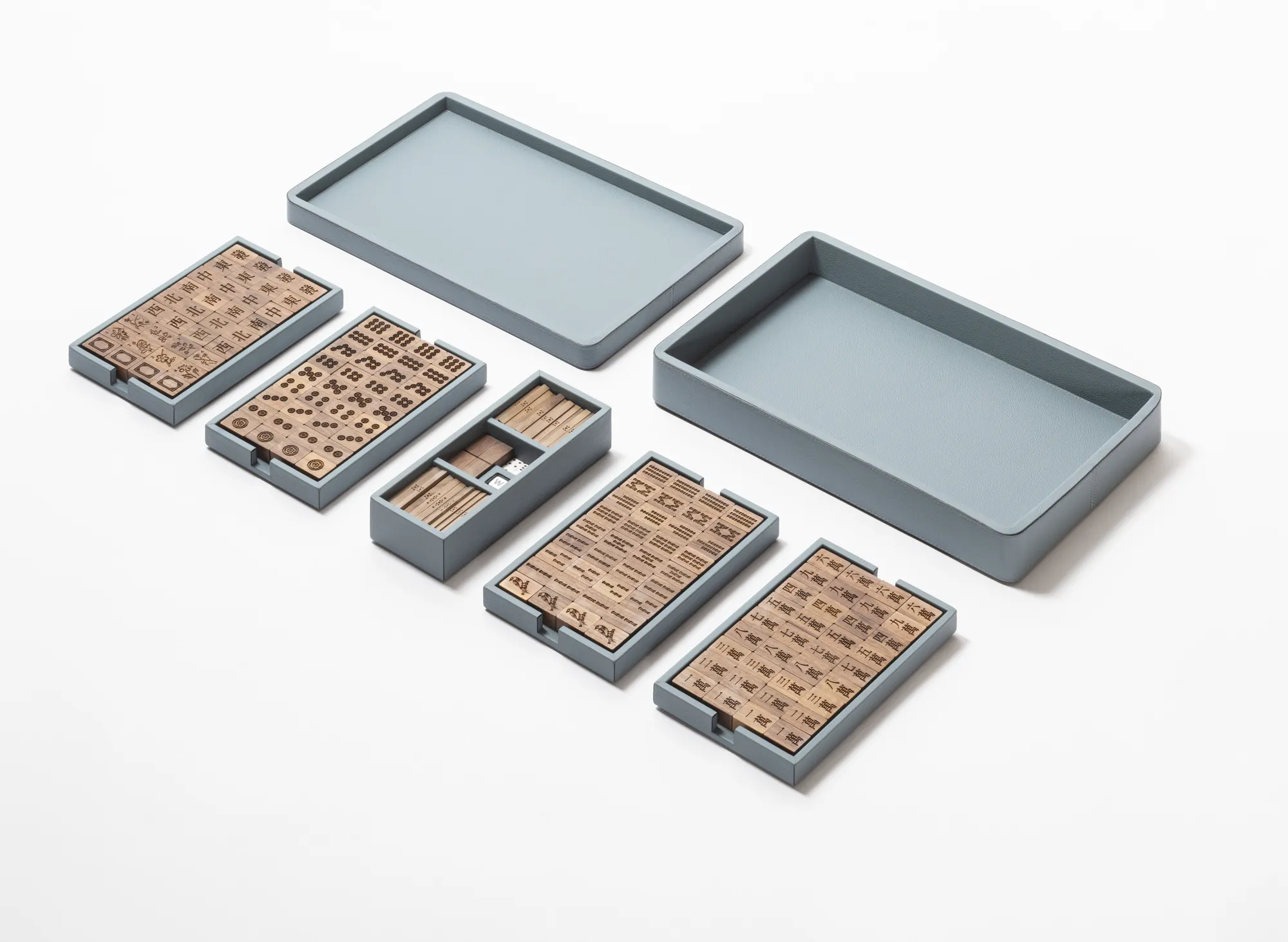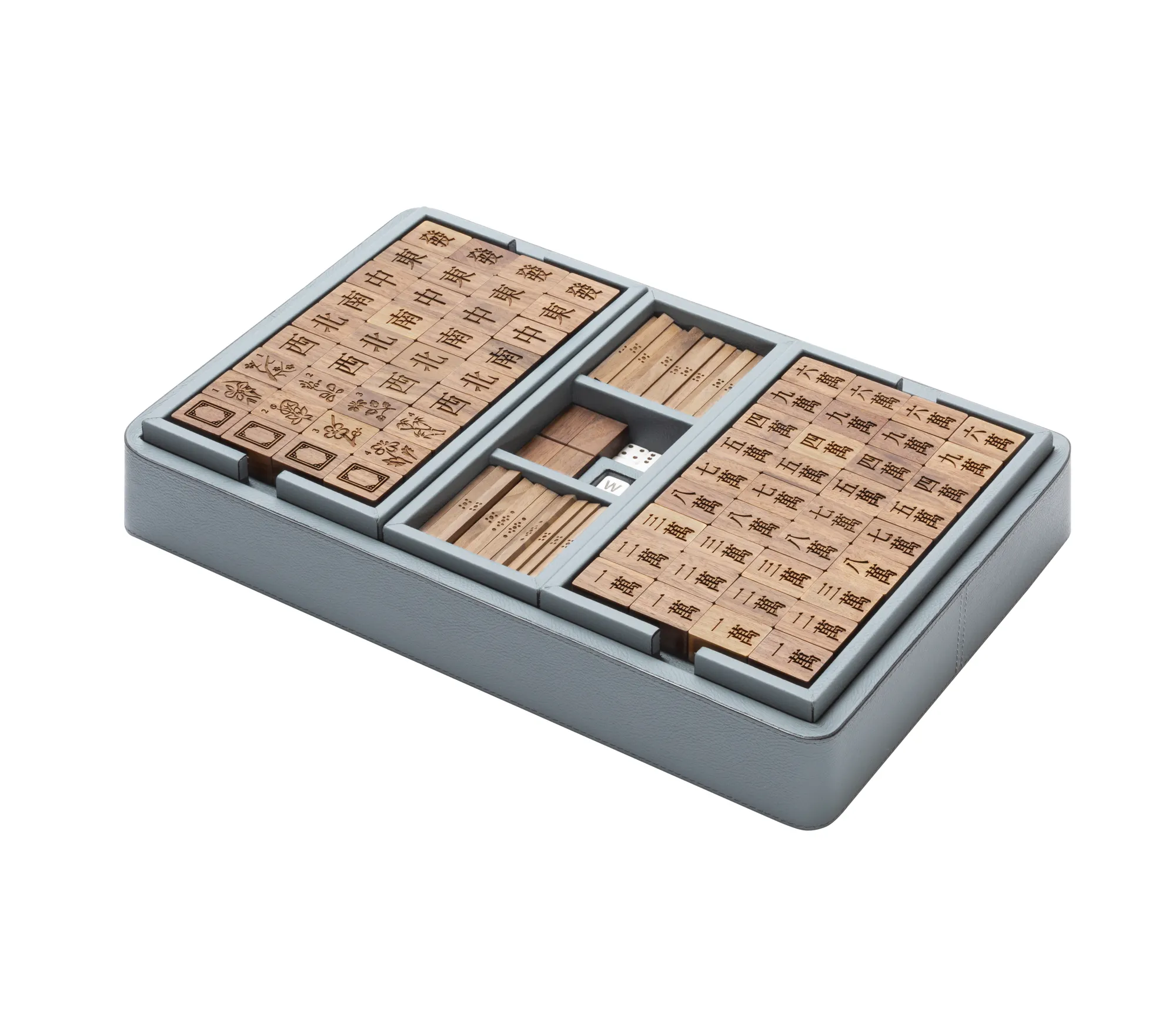 Traditional Chinese tile-based game that has gained popularity worldwide during the 1920s. Presented in a precious leather-covered wood case with removable top, this set makes an amazing gift for any board game enthusiast. The set includes: 148 engraved walnut wood and maple tiles (144 with symbols and characters + 4 plain) 244 walnut wood sticks 4 opaque plexiglass dice 1 leather-covered wind indicator dice Entirely made in Pelle Frau®.
