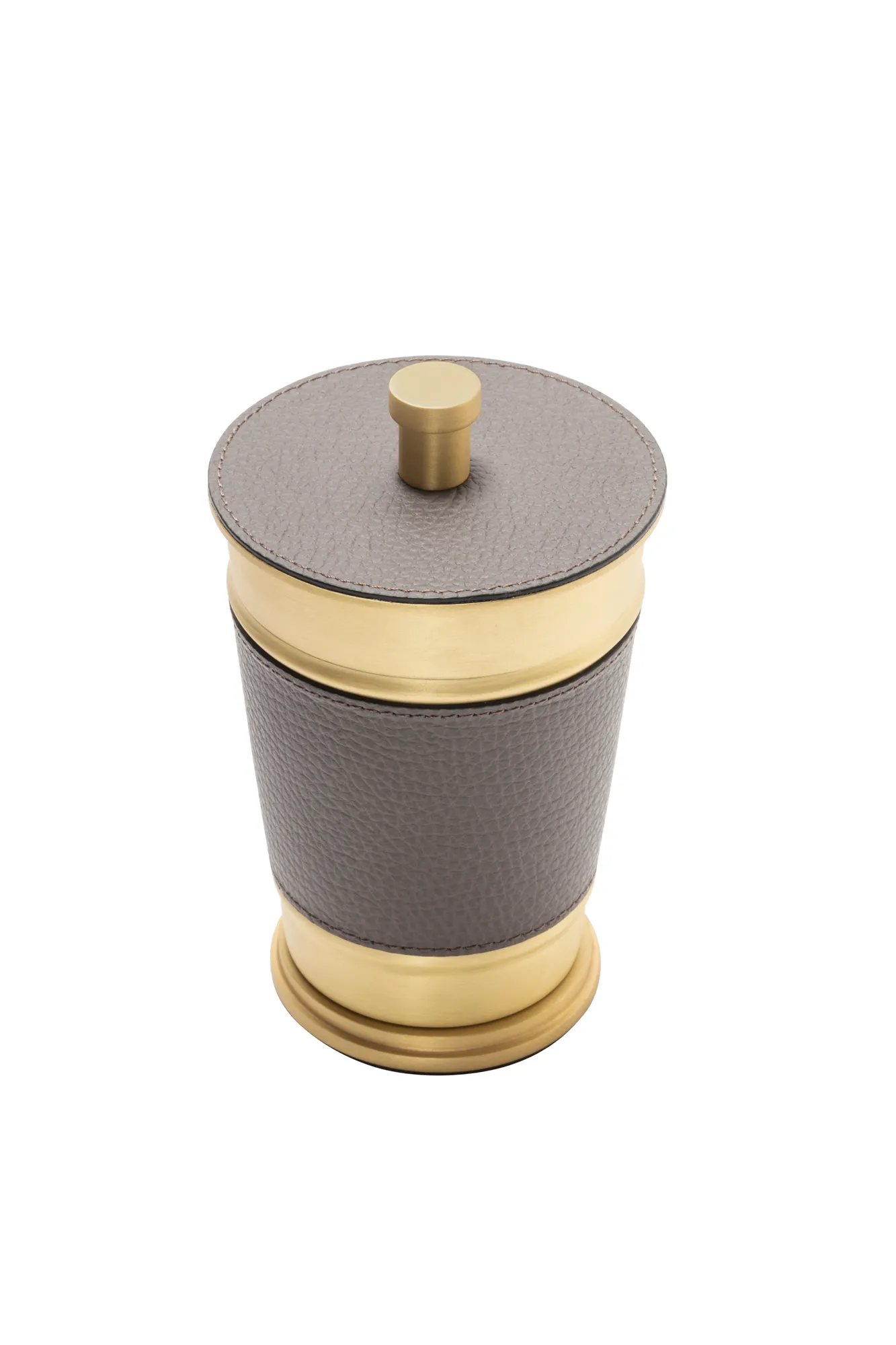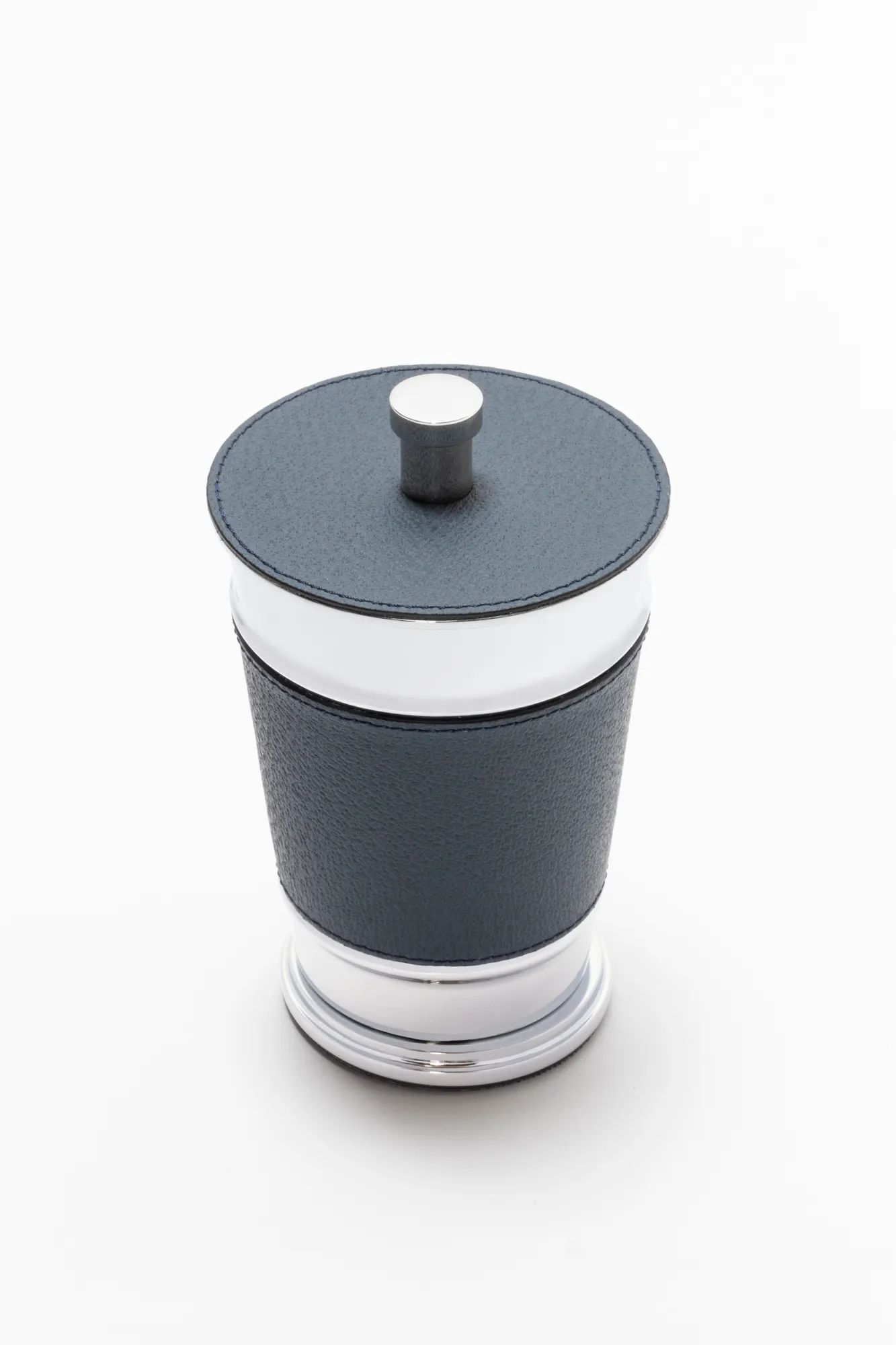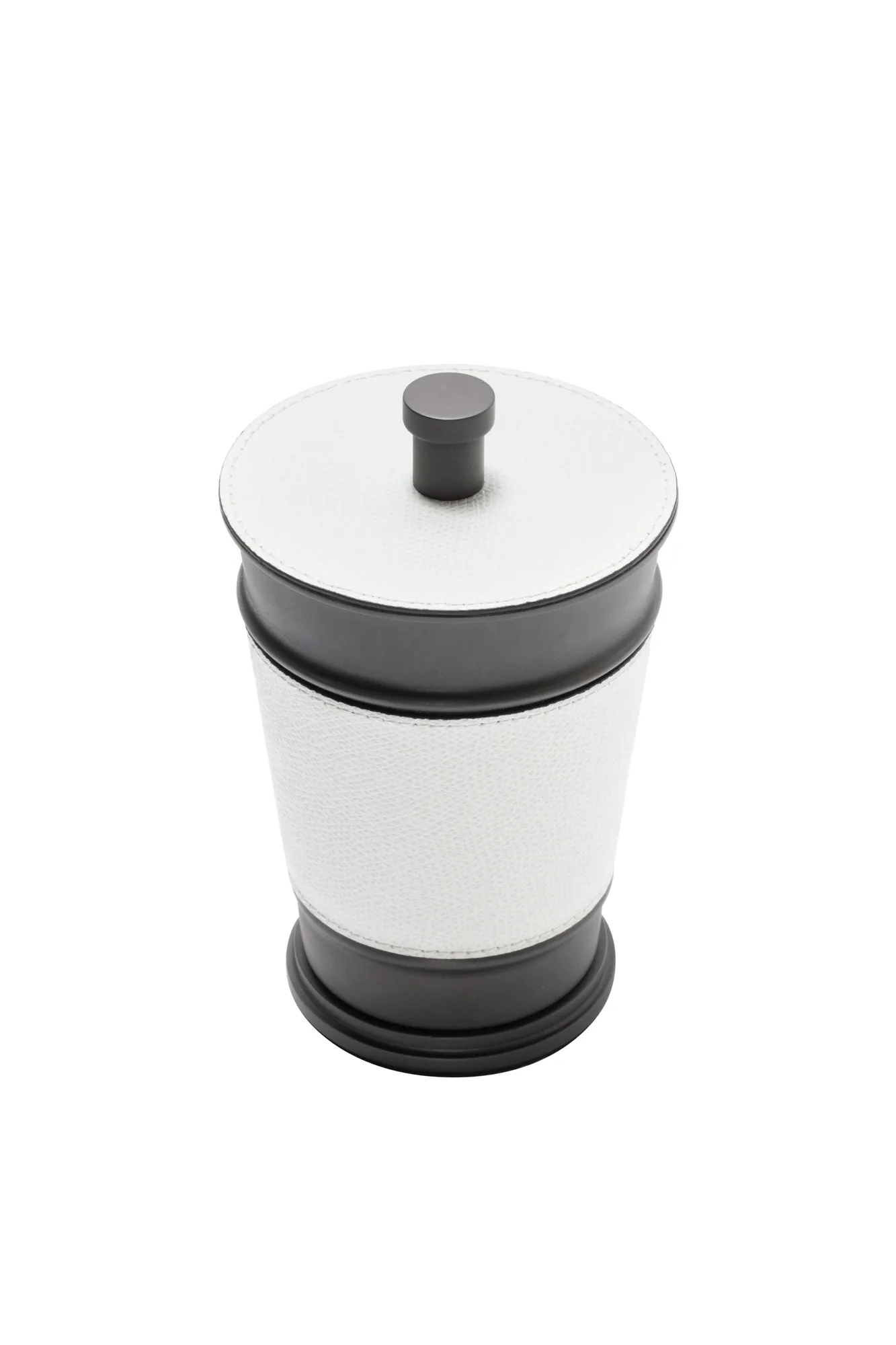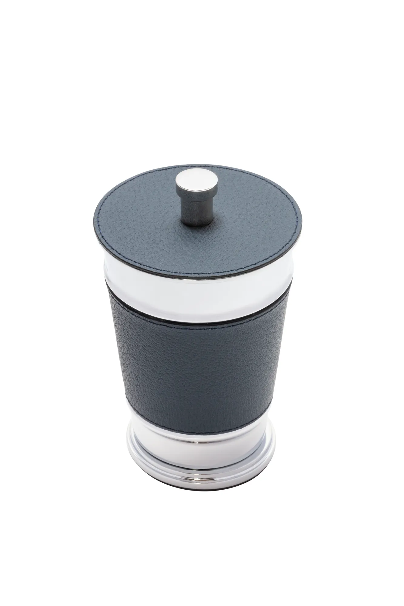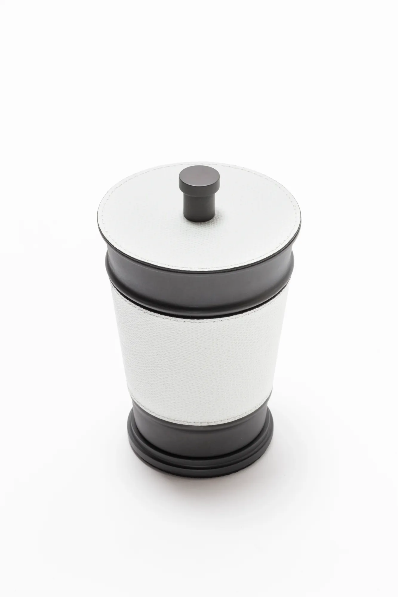 The pieces belonging to this bathroom set boast a characterizing inverted truncated cone metal structure with fine leather inserts. Featuring a series of decorative protrusions and indentations, the Manhattan collection retains a typically modern architectural appeal. Partially leather-covered metal structure. Non-slip waterproof rubber base underneath.