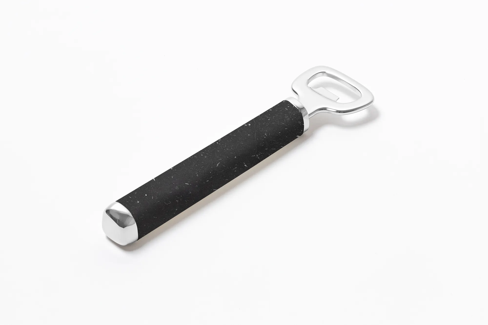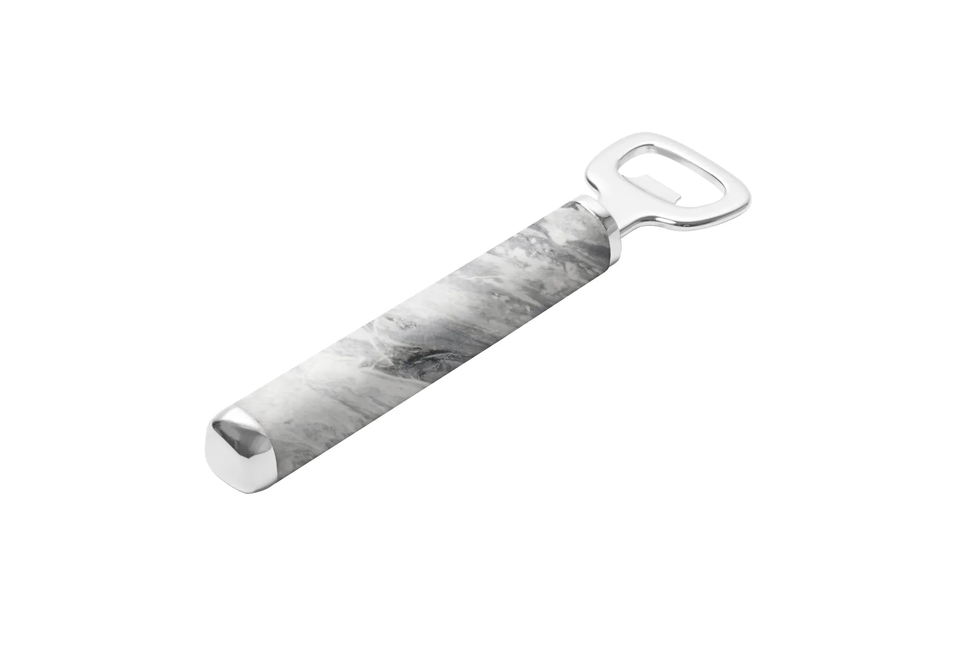 Crafted in polished stainless steel with marble accents for added sophistication. Characterized by soft, flowing lines that evoke an organic quality, this accessory is perfect for the discerning collector.