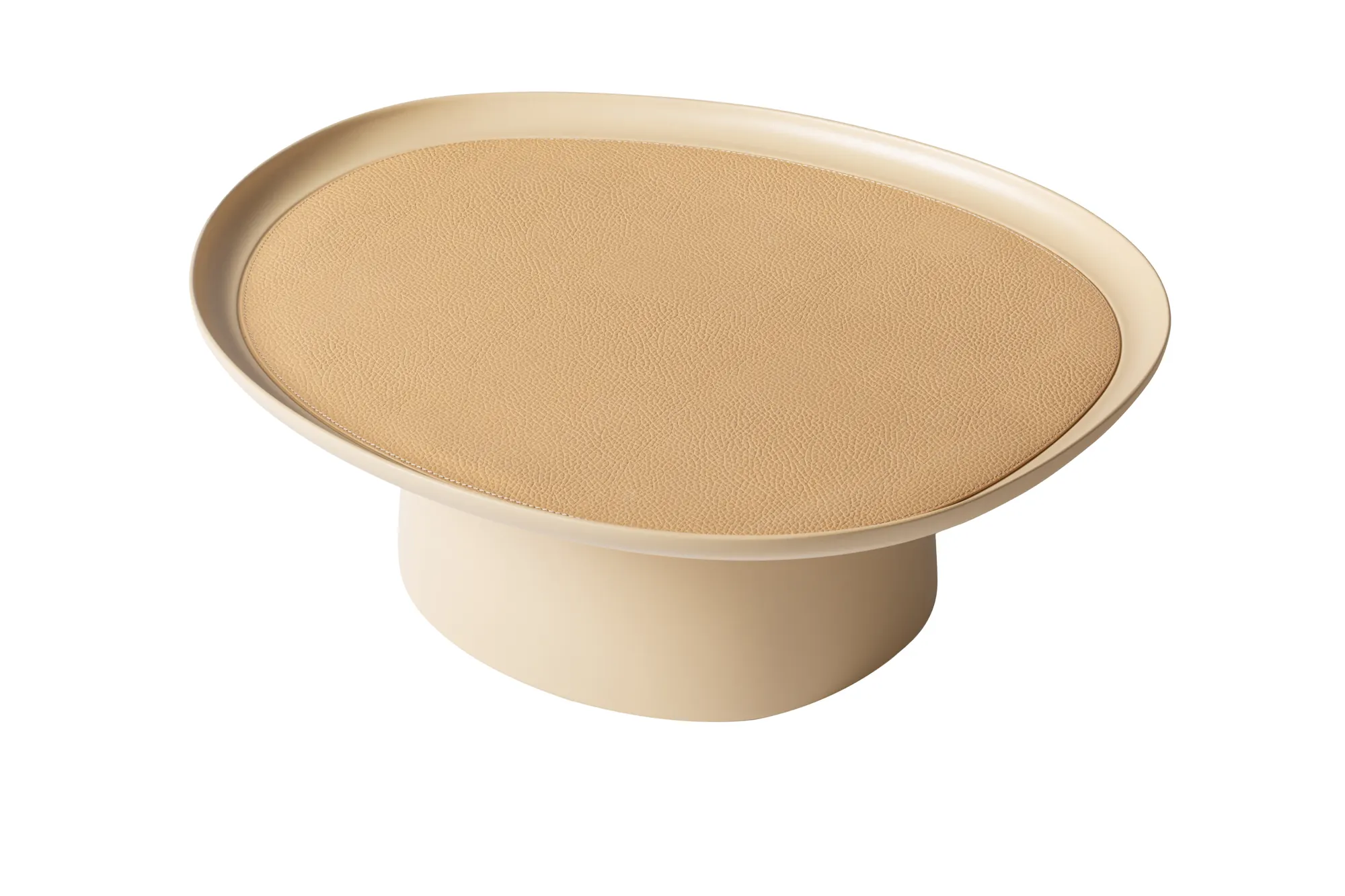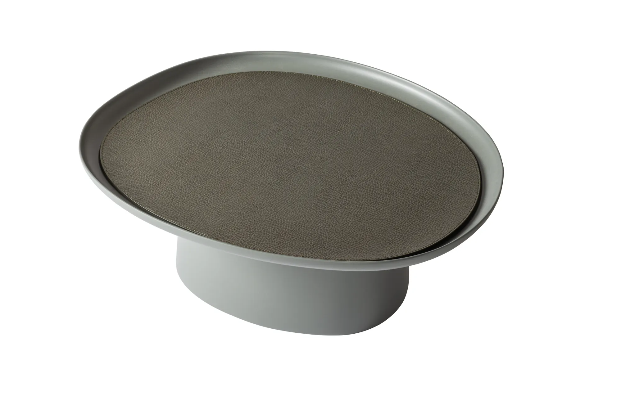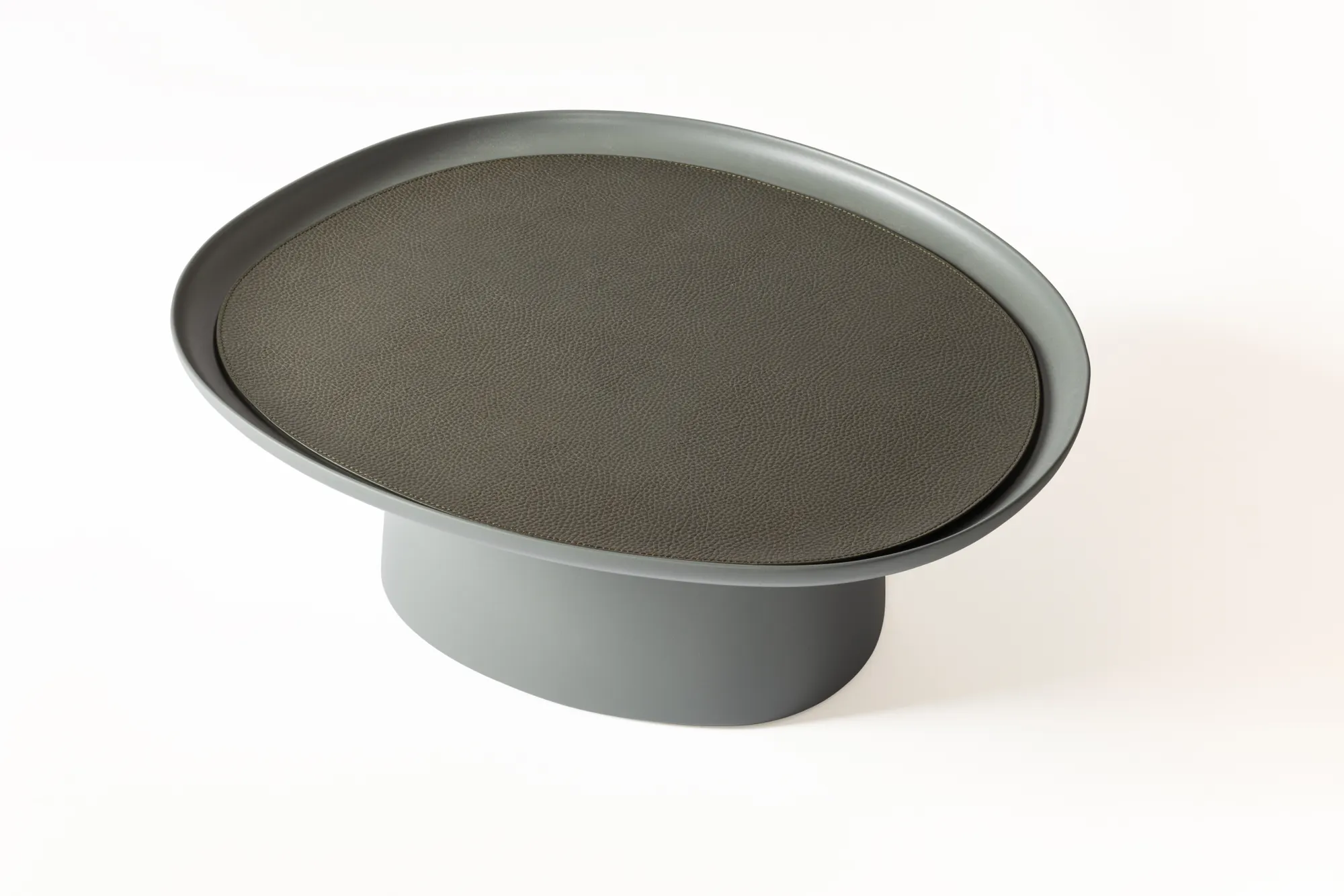 Sandblasted aluminium raised trays with removable leather inlay. Non-slip waterproof rubber base underneath.