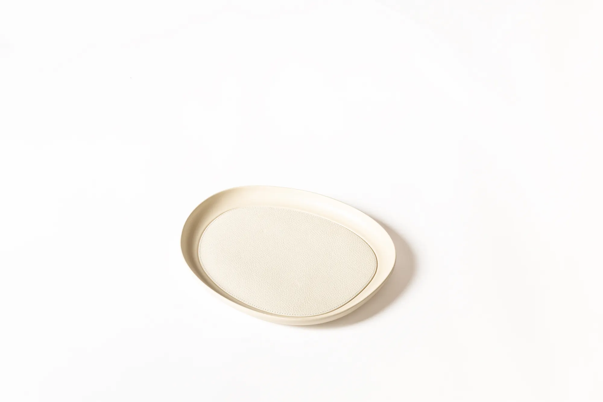Sandblasted aluminium trays with removable leather inlay. Non-slip waterproof rubber base underneath.