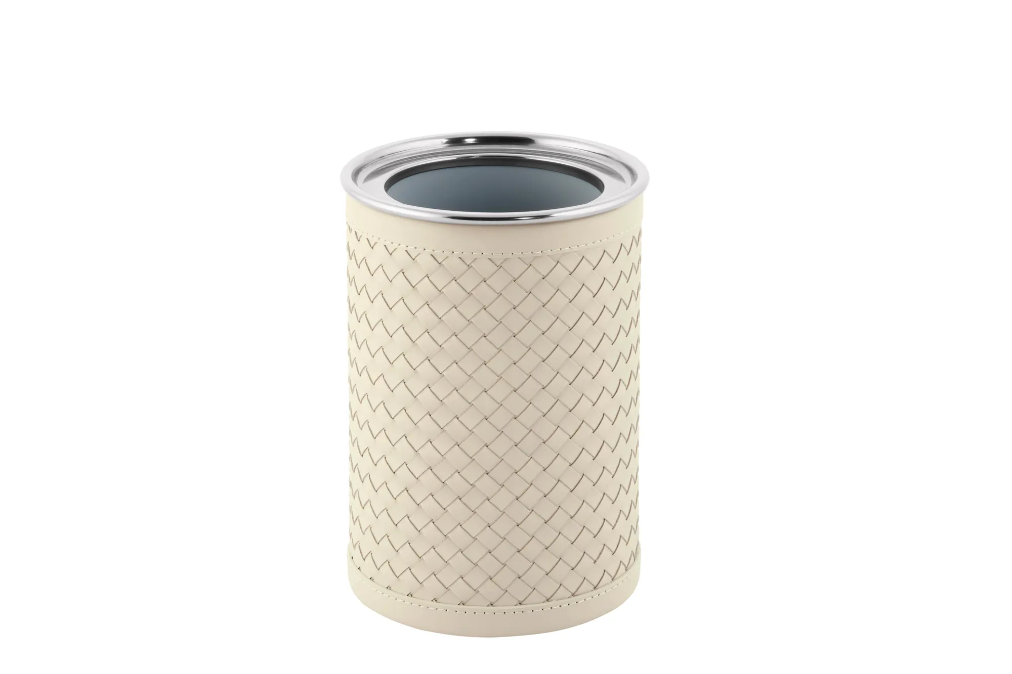 Stainless steel thermic bottle cooler covered with handwoven leather.