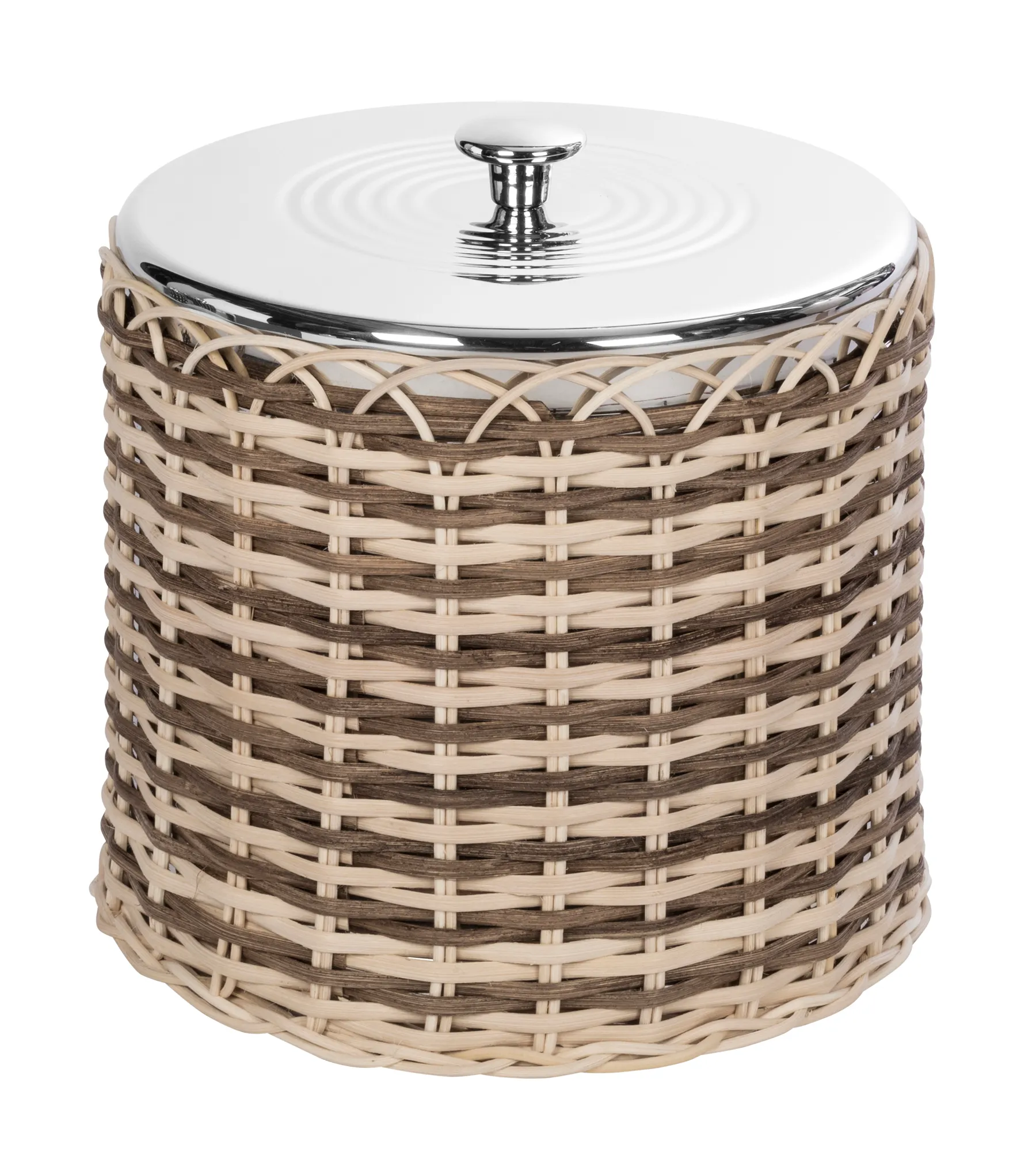 Two-chamber insulated stainless steel structure covered in rattan. Items able to keep bottles cool for several hours.
