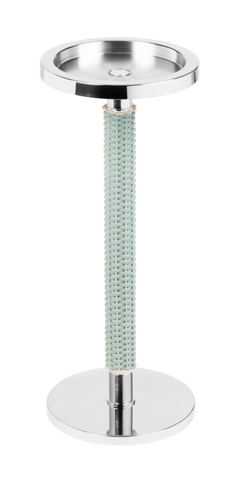 Stainless steel structure with a heavy solid base and central column covered in woven leather and rattan. Perfect in combination with our Menton leather & rattan champagne buckets, but also able to host any other model with a maximum lower diameter of 20 cm.