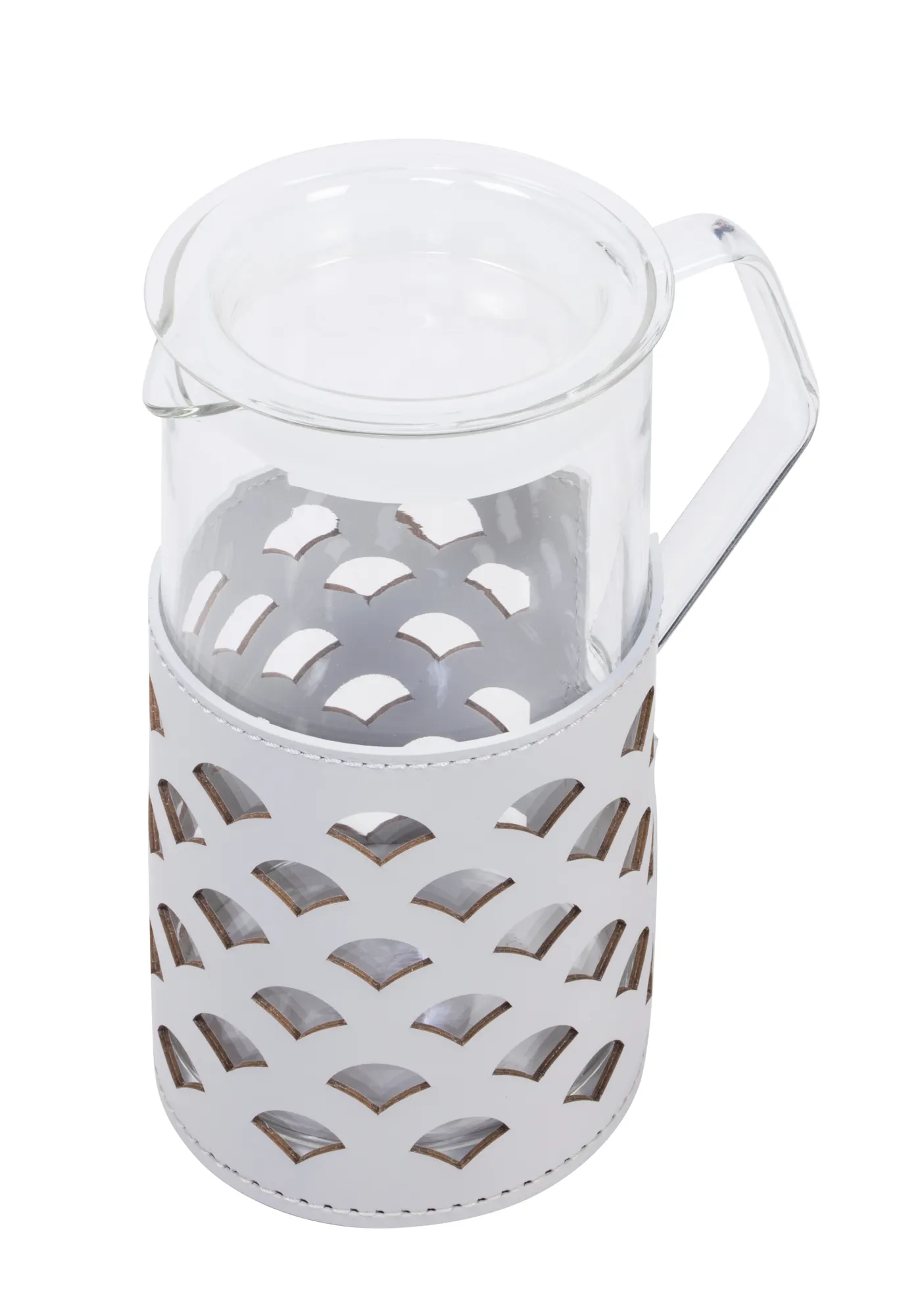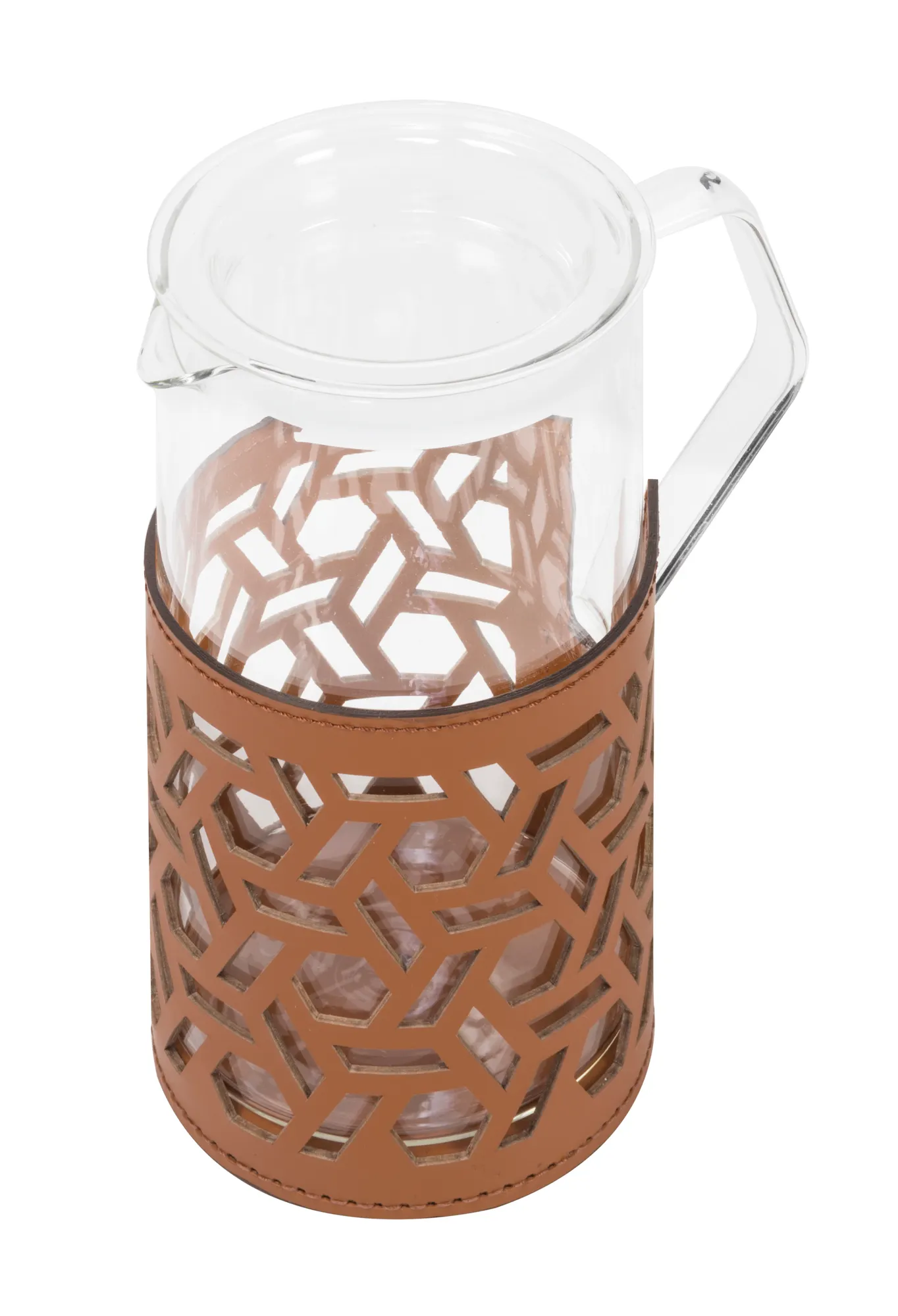 Transparent borosilicate glass partially dressed in finest regenerated leather with water-resistant and UV-resistant finish. Featuring a glass lid with silicone ring and heat-resistant glass body, it can be used for both hot and cold drinks. Non-slip waterproof rubber base underneath. Removable cover for easy cleaning.