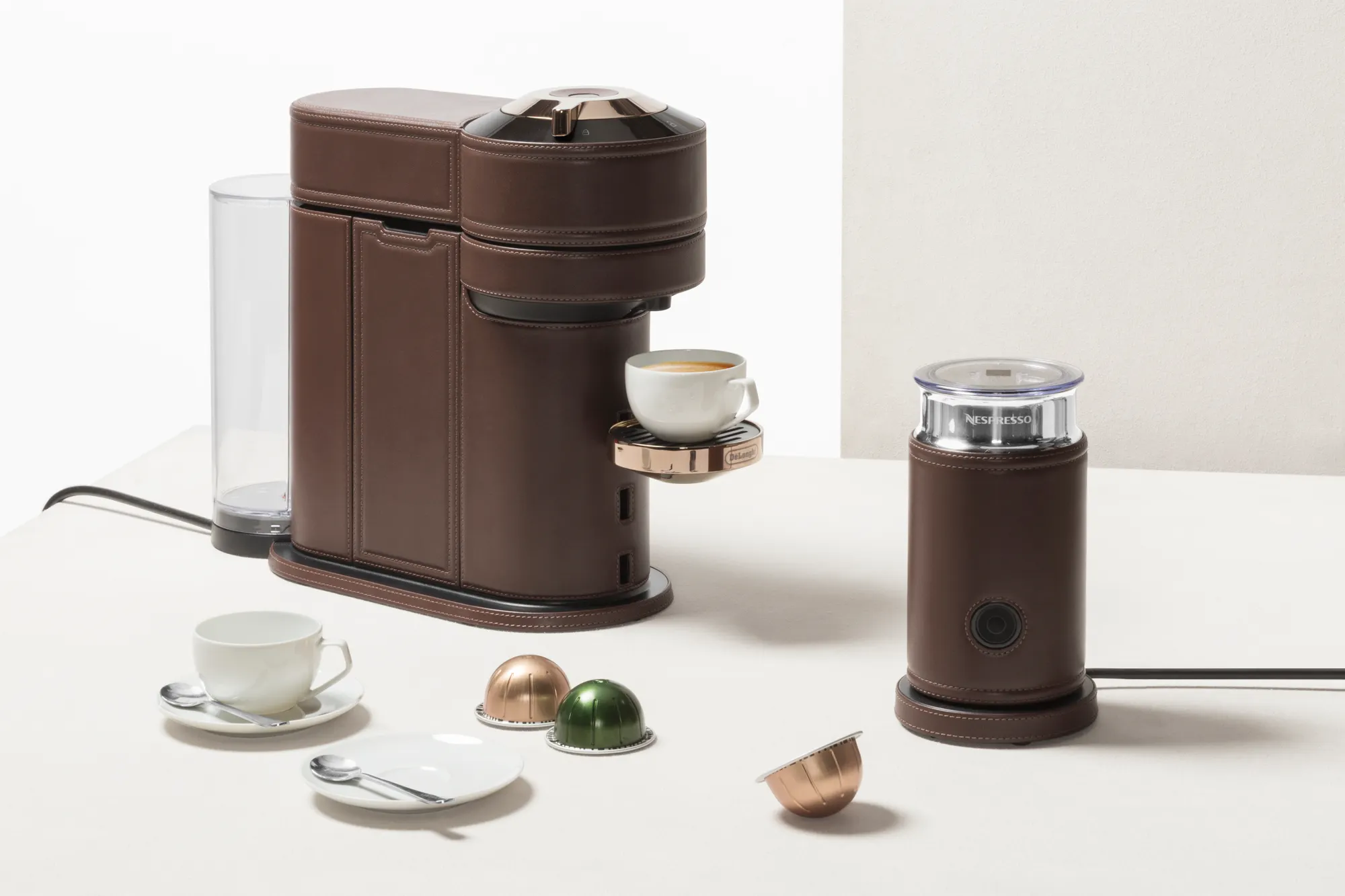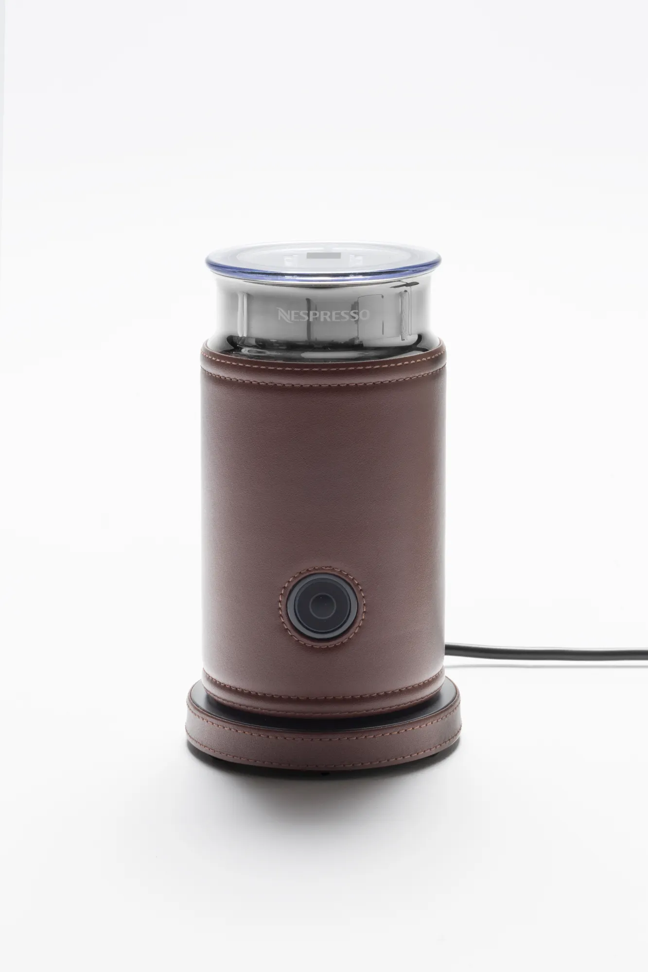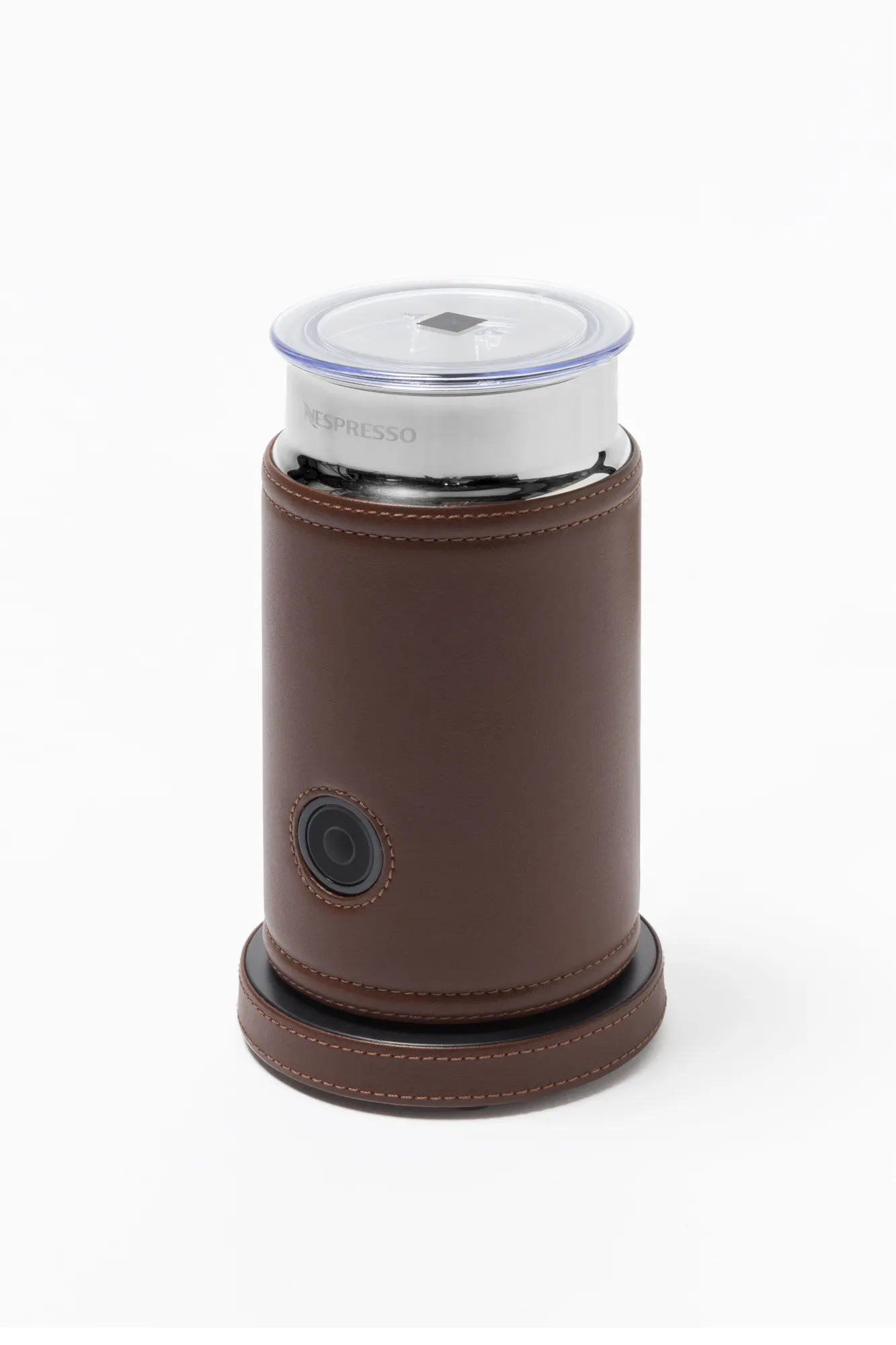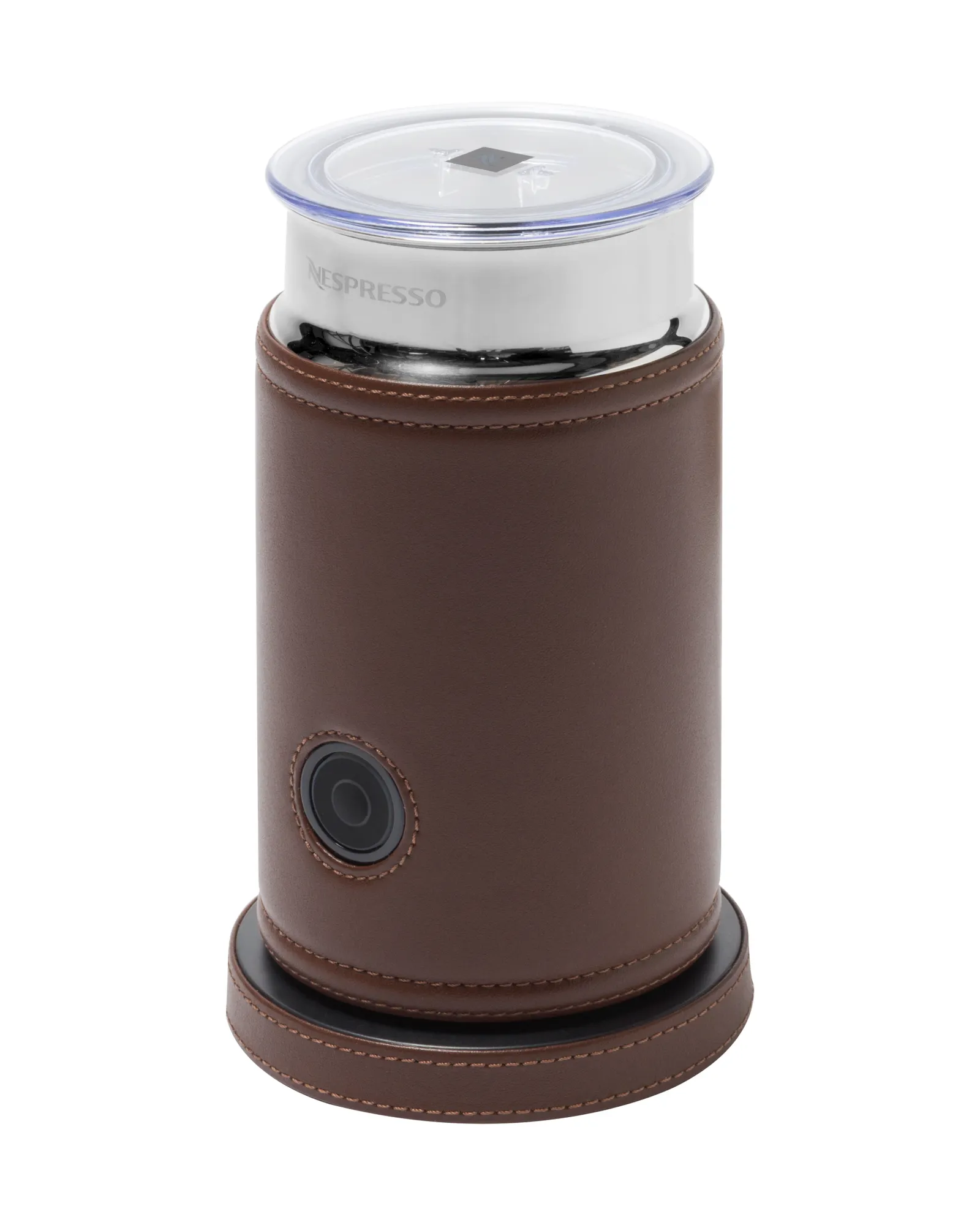 Original leather-bound Nespresso milk frother. Ideal for milk-based drinks, both hot and cold. Perfect in combination with the Vertuo coffee machine. Voltage available: 110V or 220V.