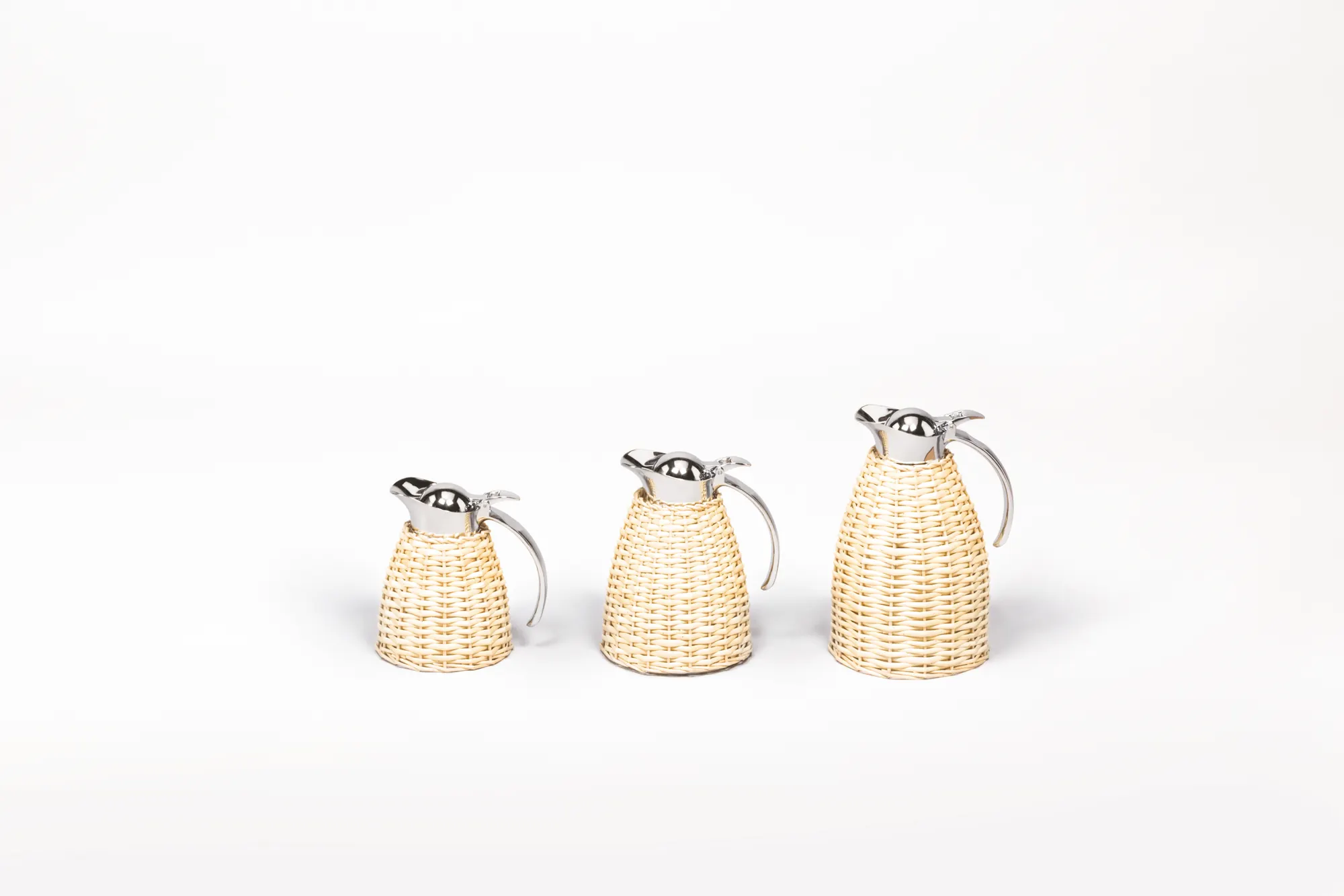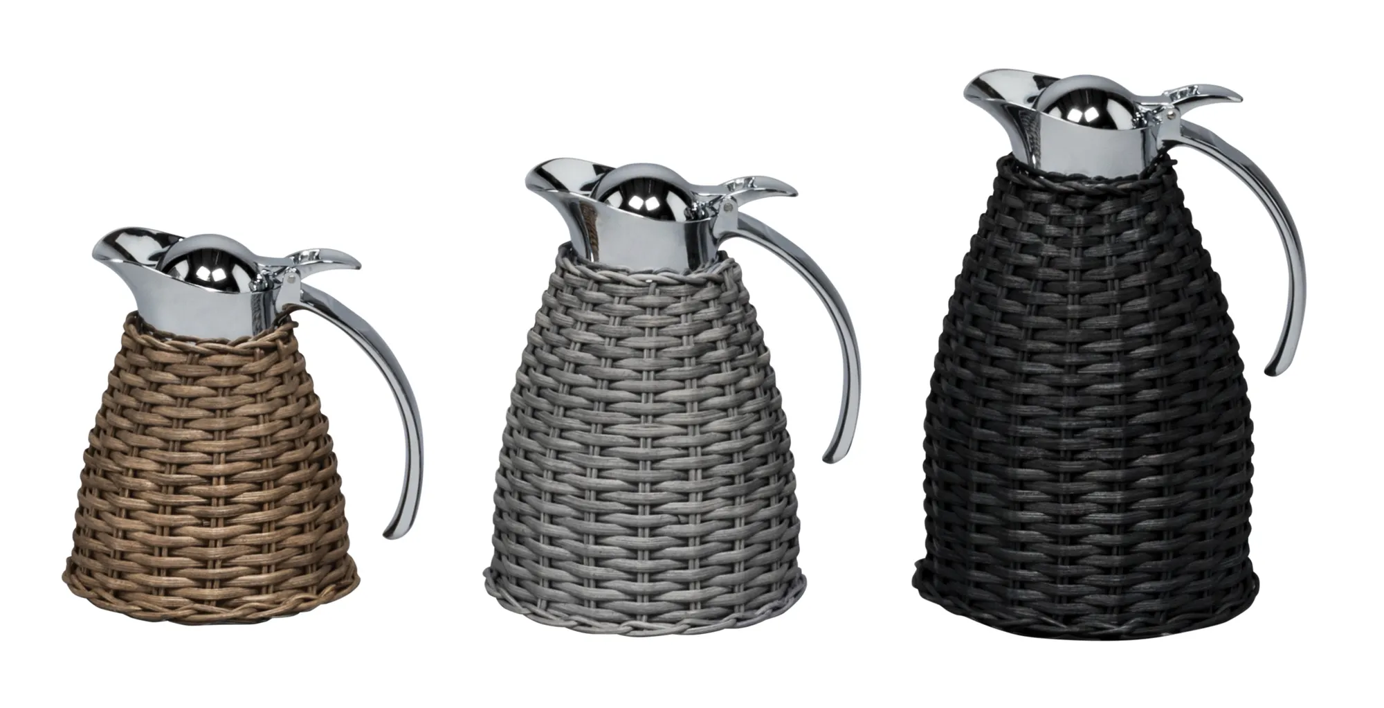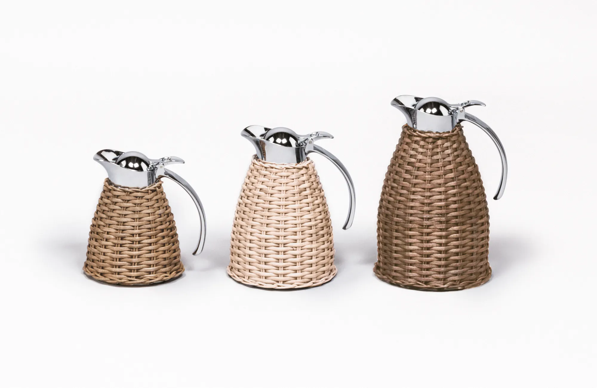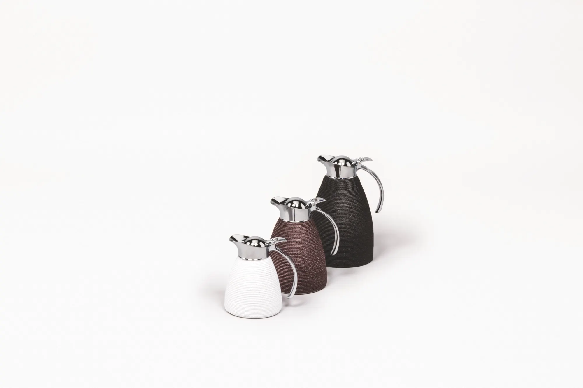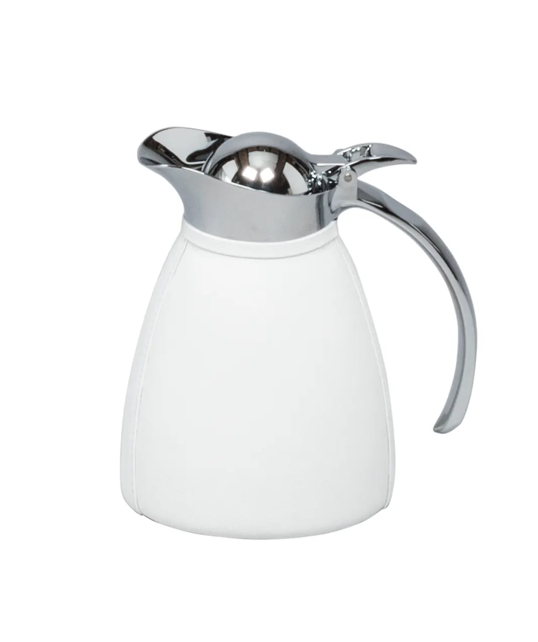 Partially leather covered insulated stainless steel carafes with chrome-plated finish. Two-chamber structure able to maintain liquid’s temperatures. Precise pouring thanks to the specially developed hinged lid with one-hand operation.