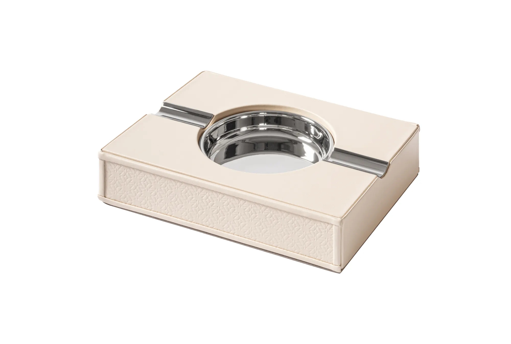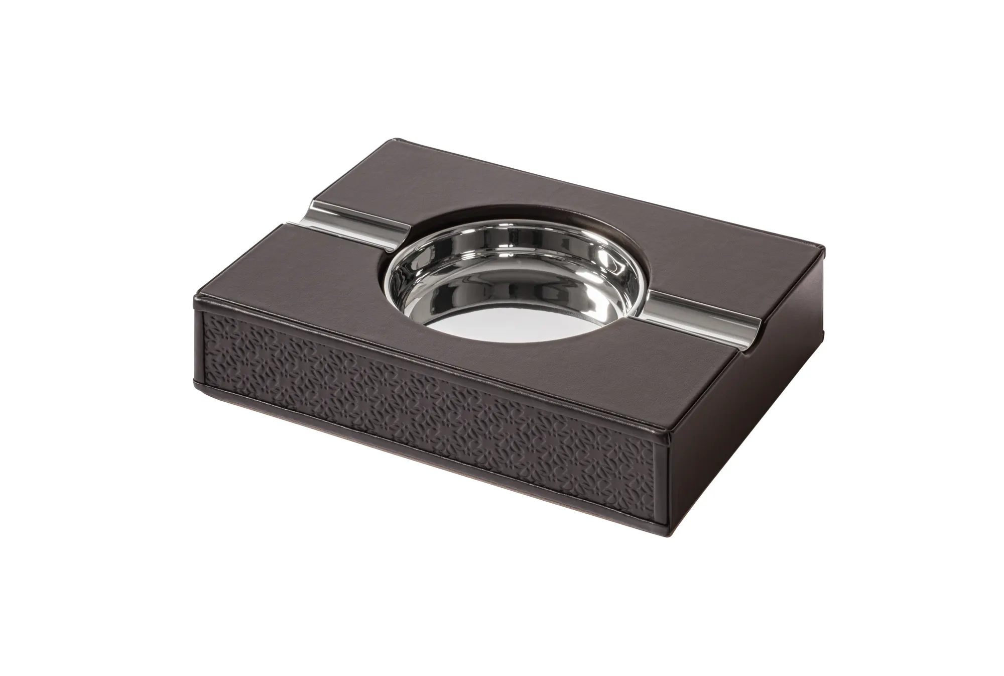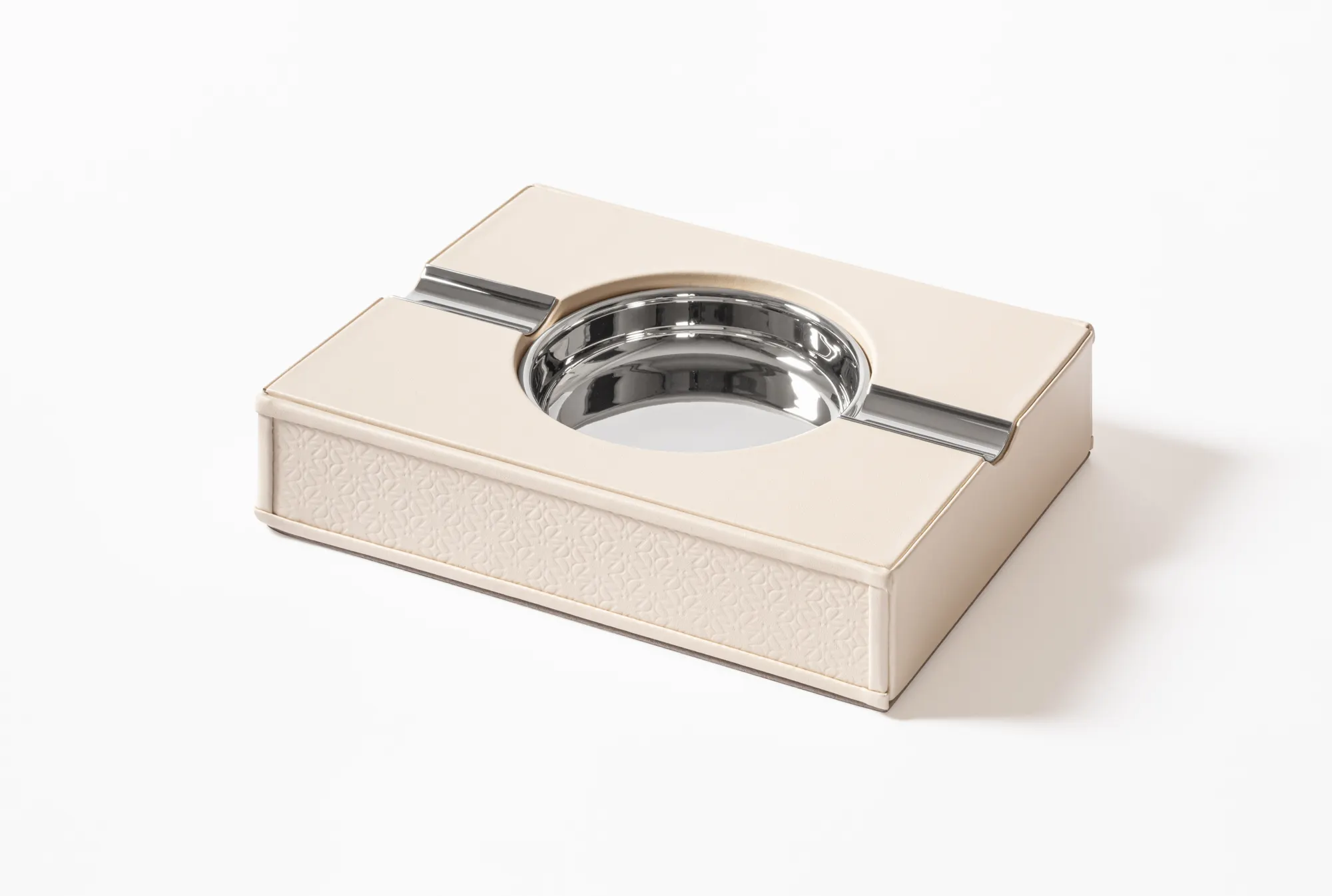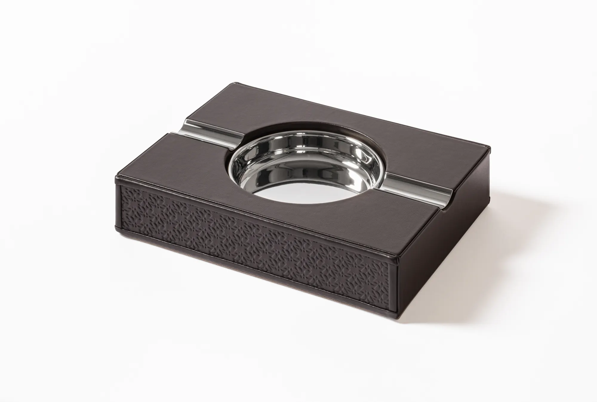 Table ashtray with padded leather inserts featuring the ELIE SAAB Monogram pattern and polished palladium details. The removable palladium plate ensures an easy cleaning.