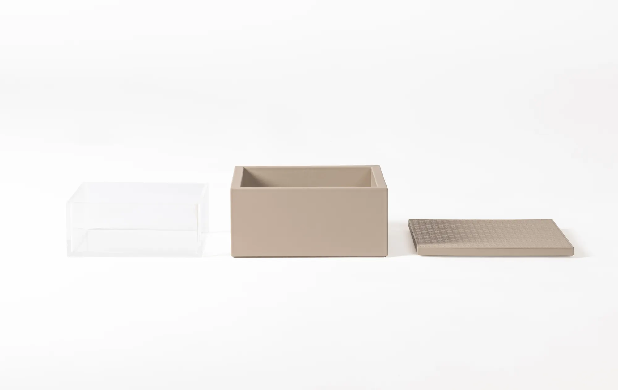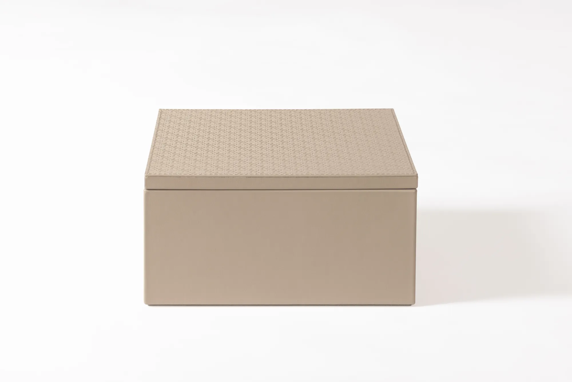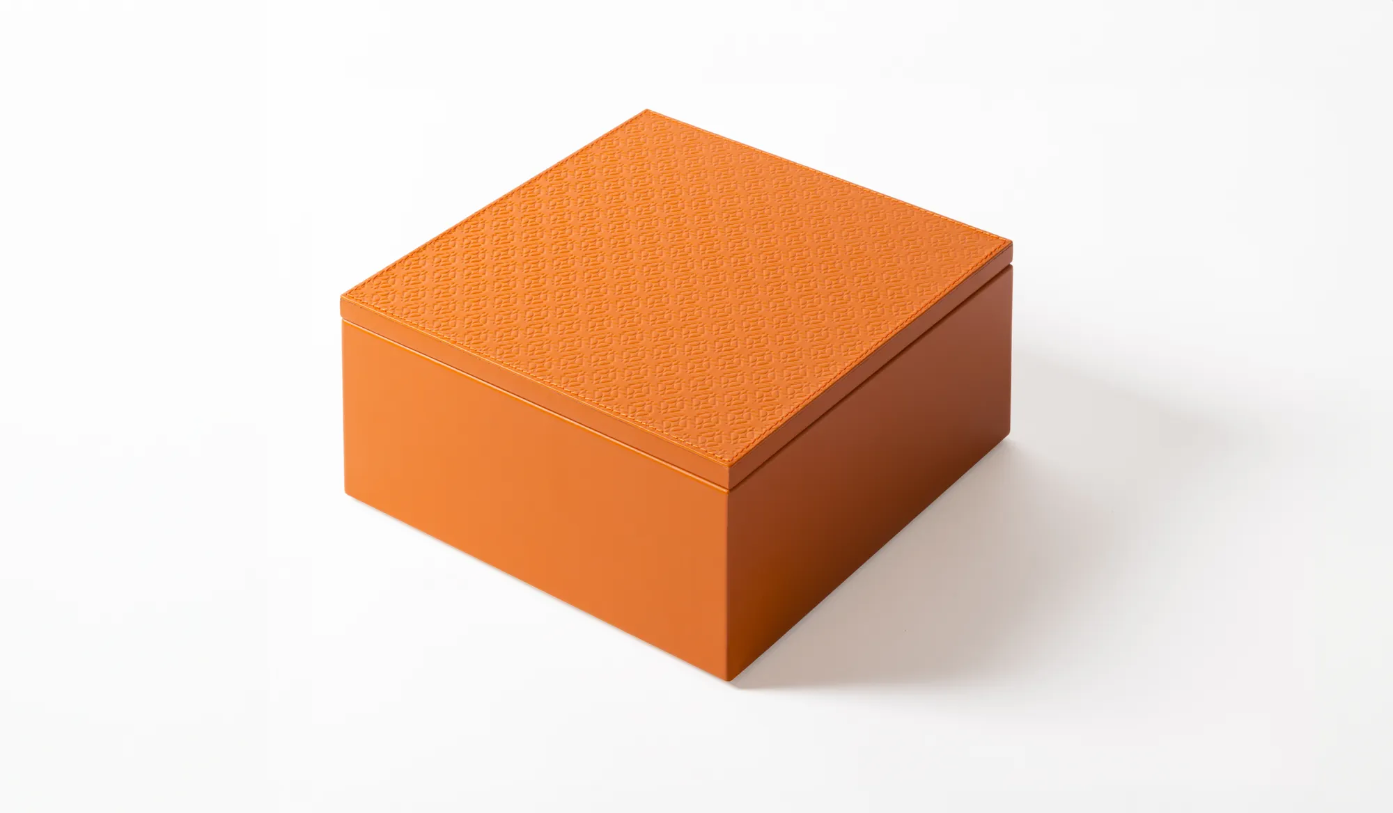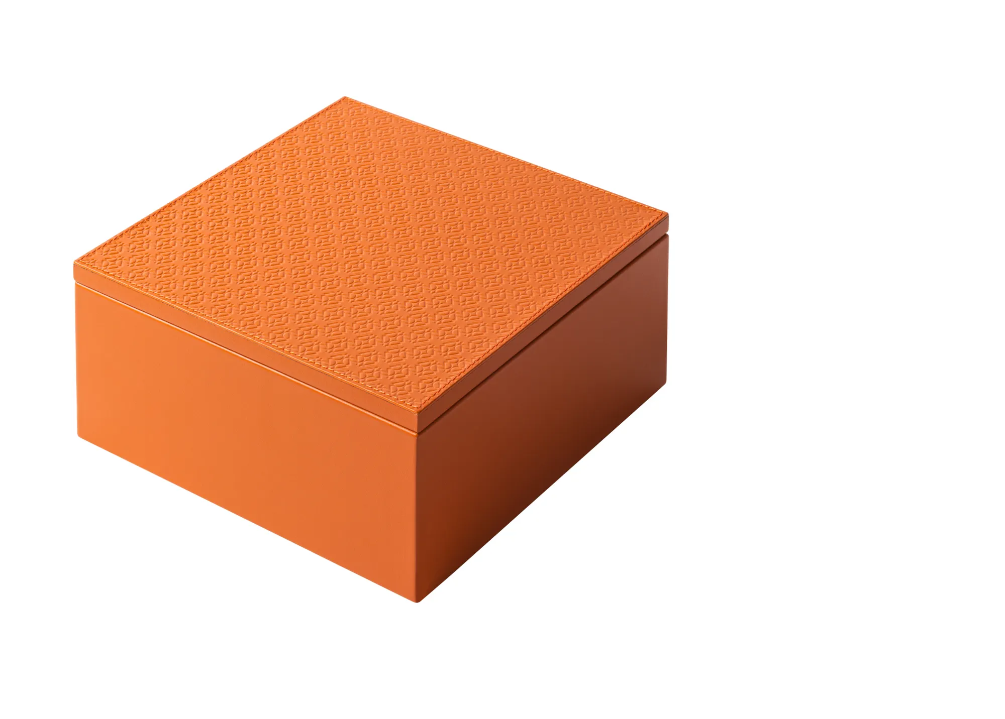 Leather box featuring the ELIE SAAB Monogram pattern on the lid and an acrylic removable inner container that ensures an easy cleaning.