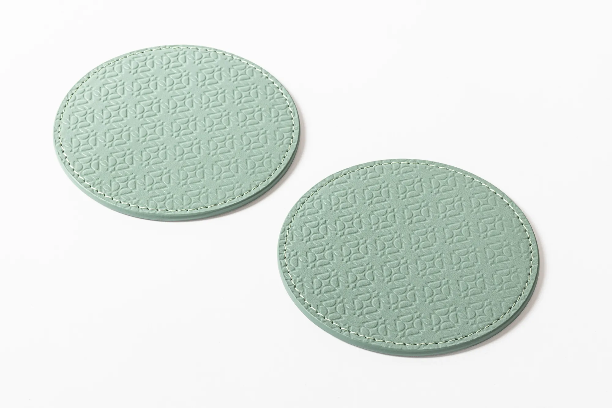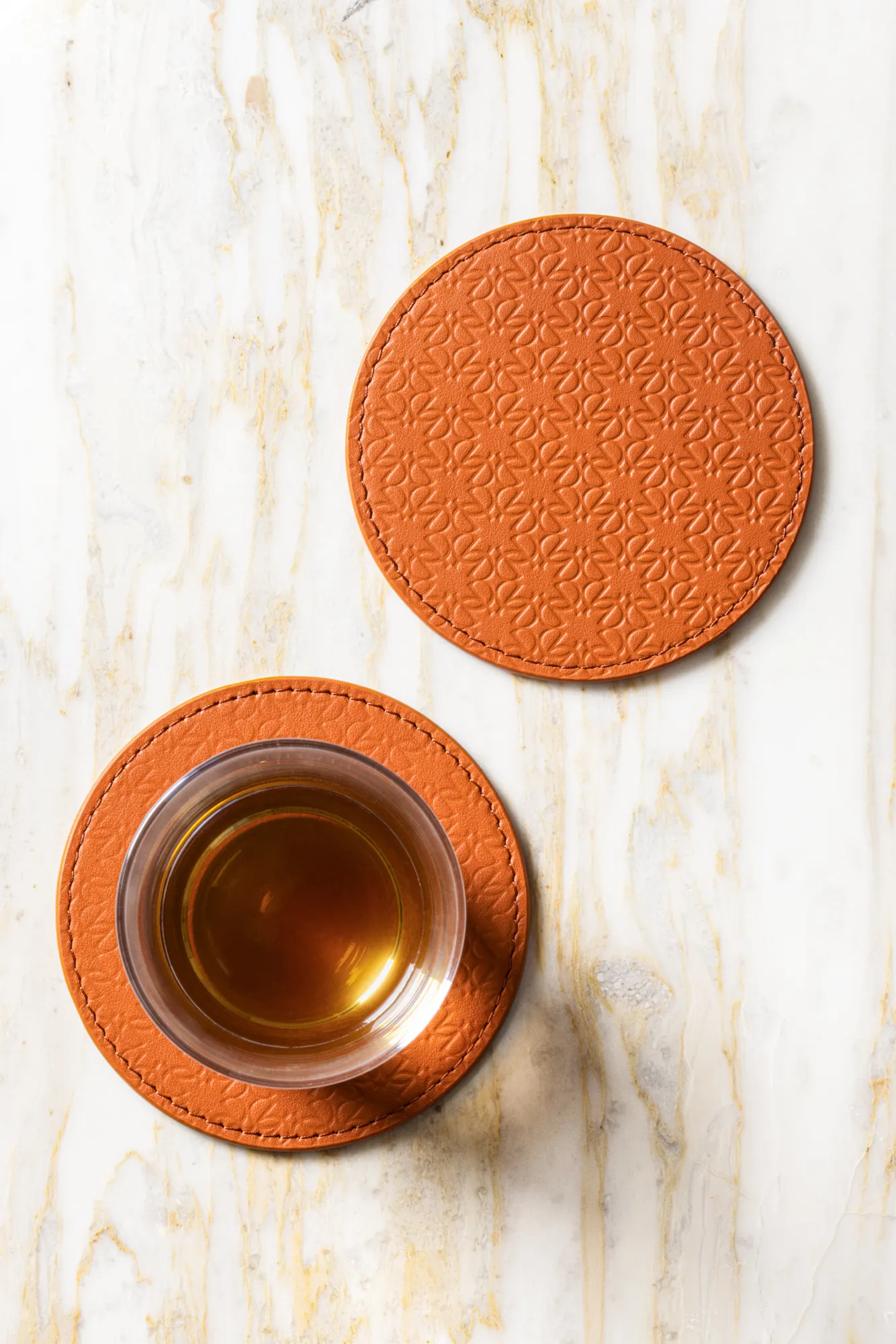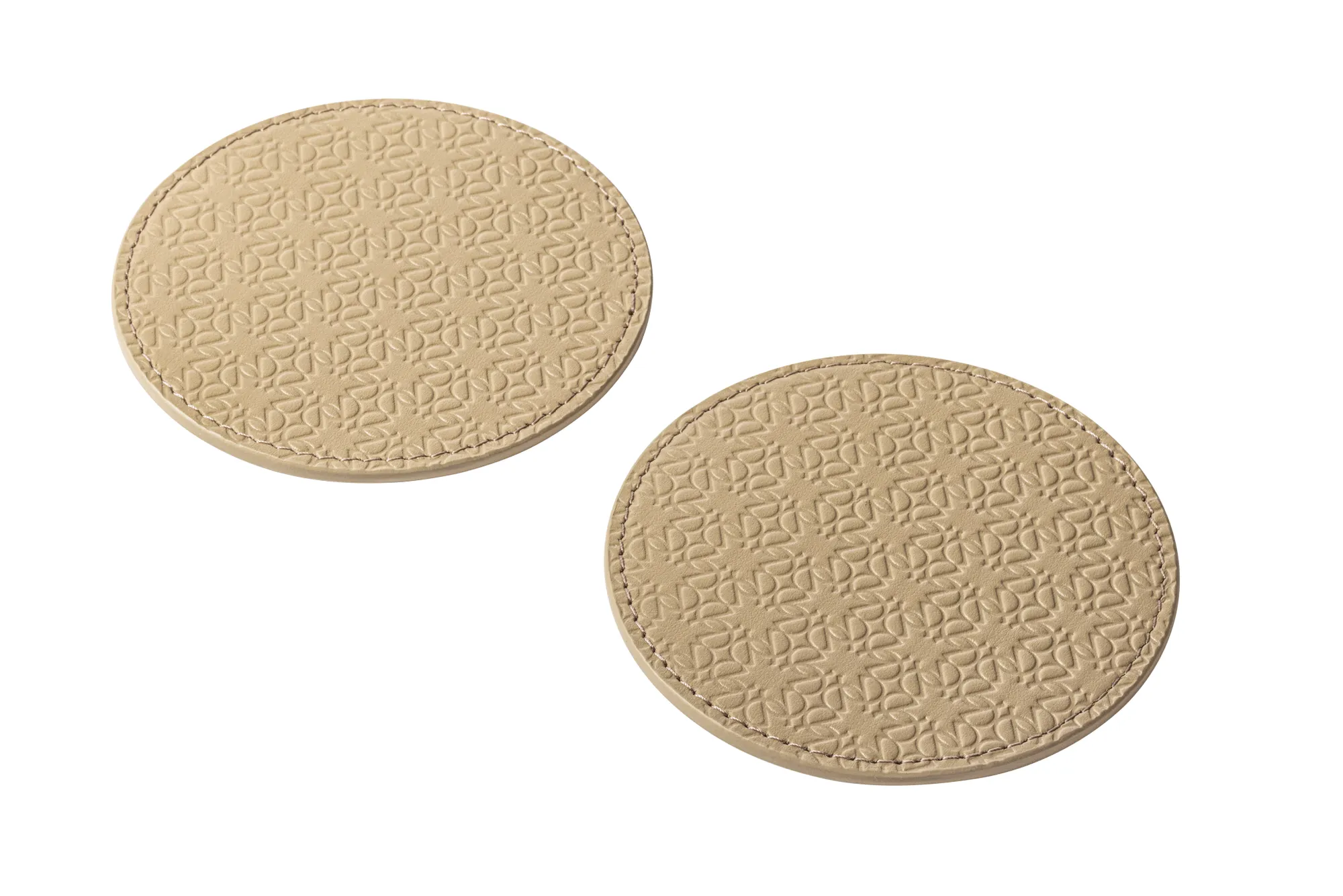 Set of 2 coasters made of padded leather featuring the ELIE SAAB Monogram pattern.