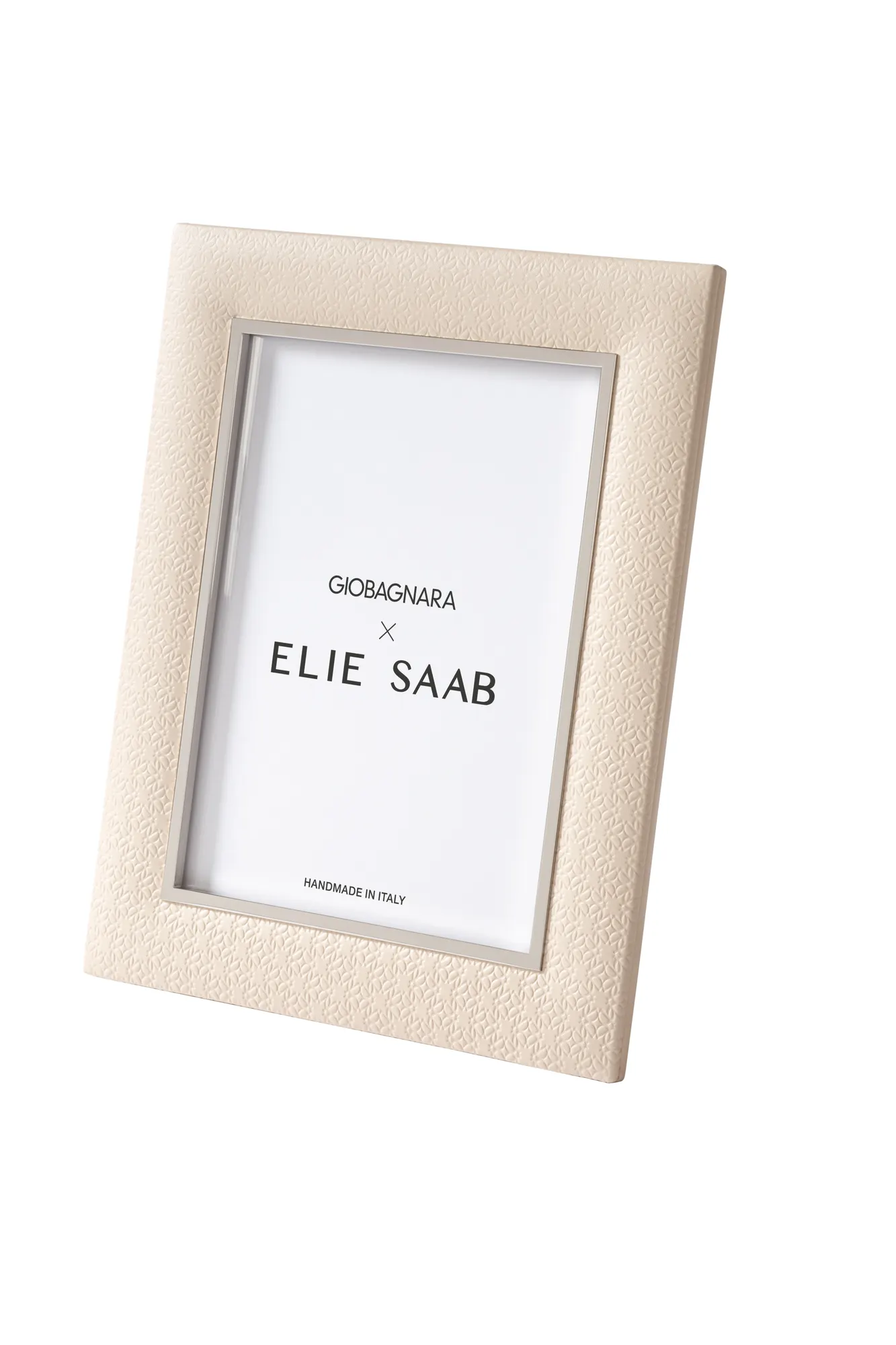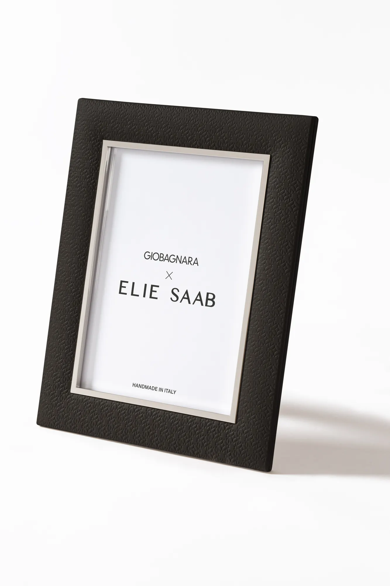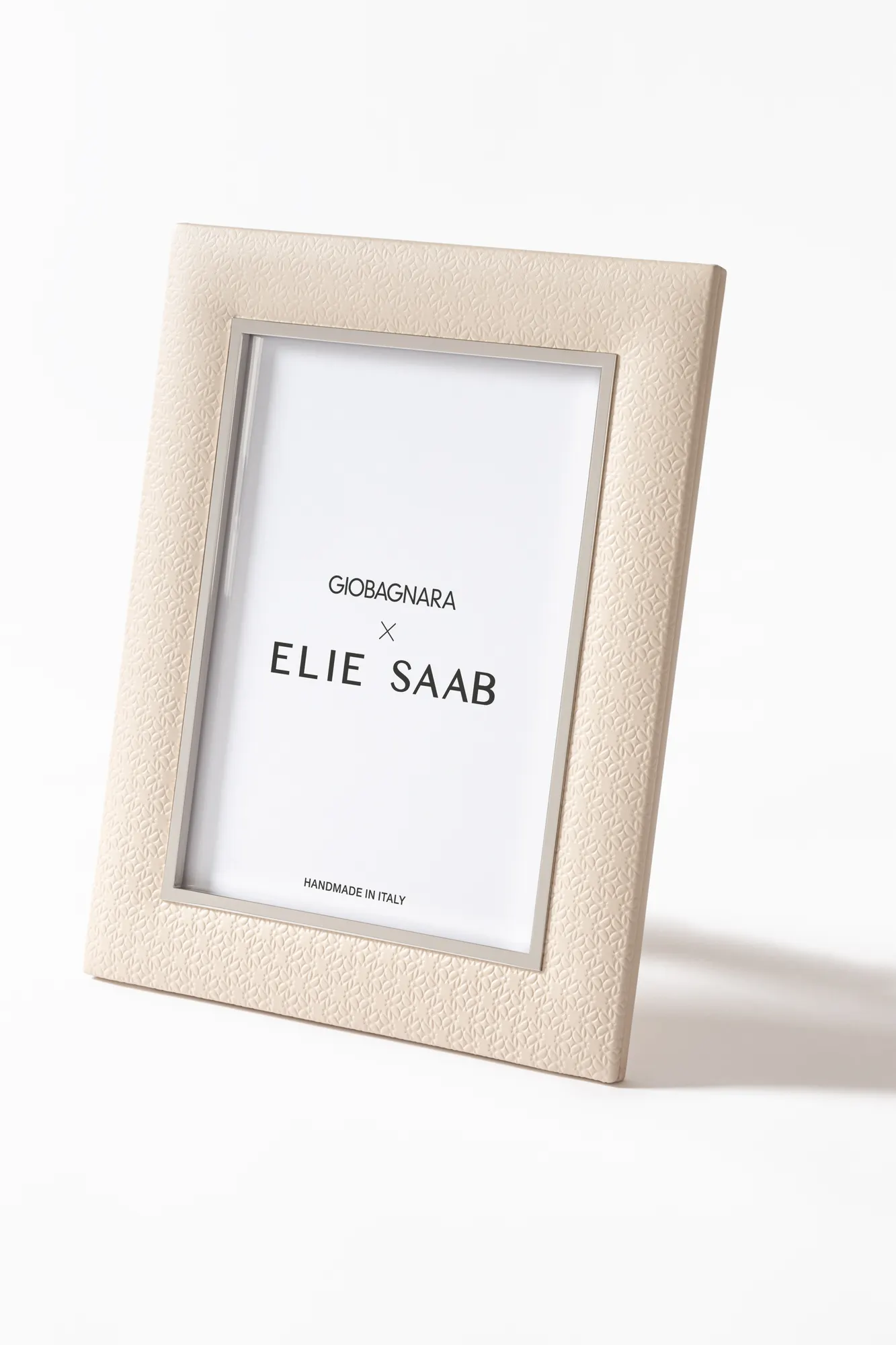 Padded leather frame with polished palladium trim featuring the exclusive ELIE SAAB Monogram pattern.