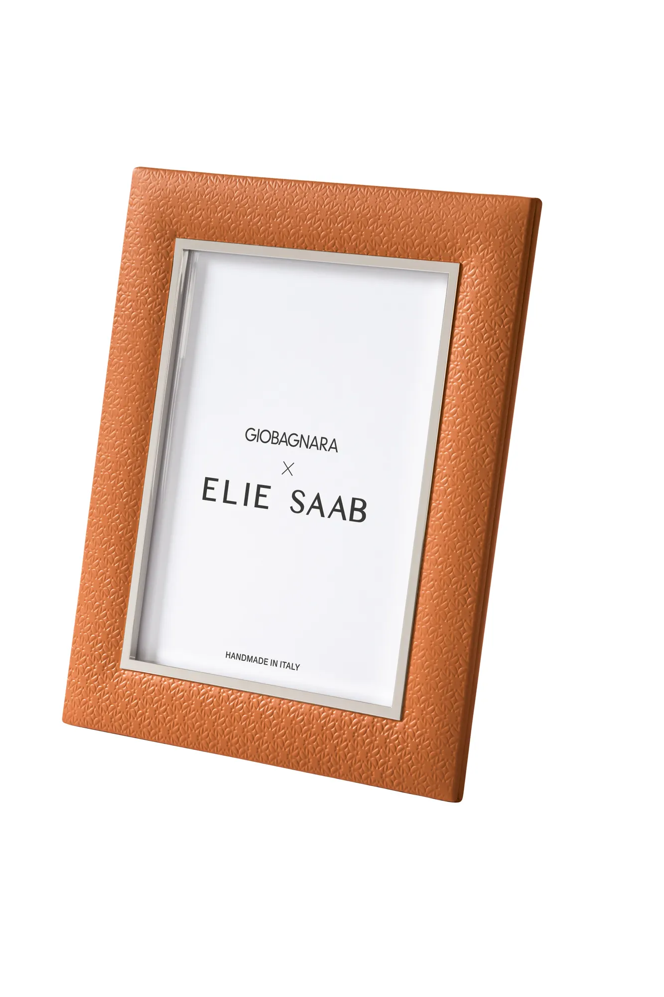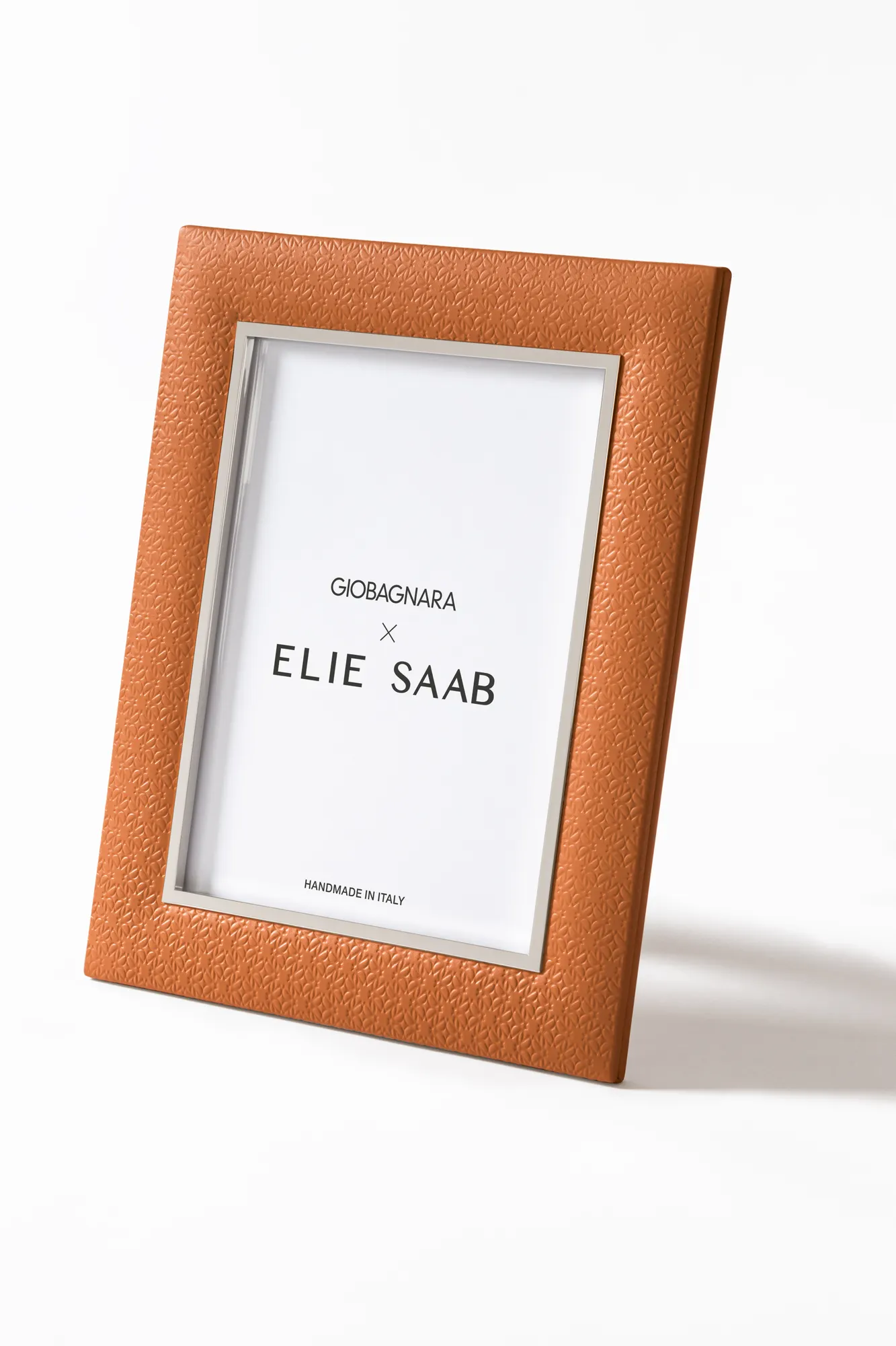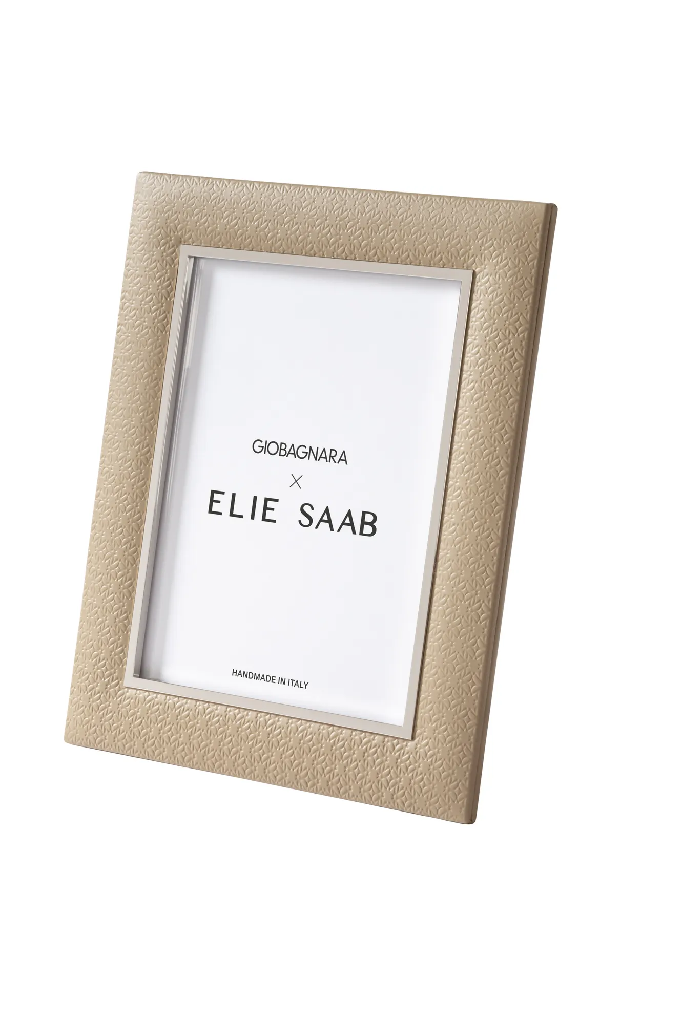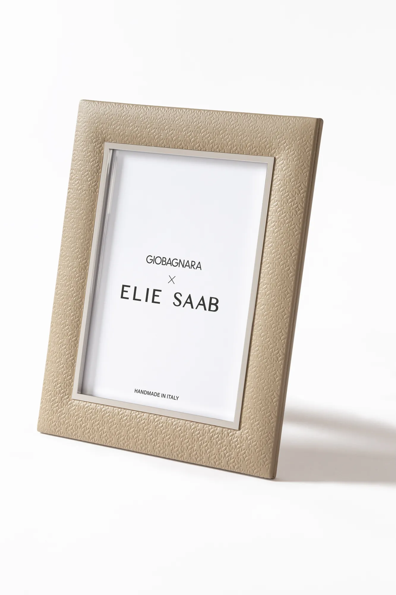 Padded leather frame with polished palladium trim featuring the exclusive ELIE SAAB Monogram pattern.