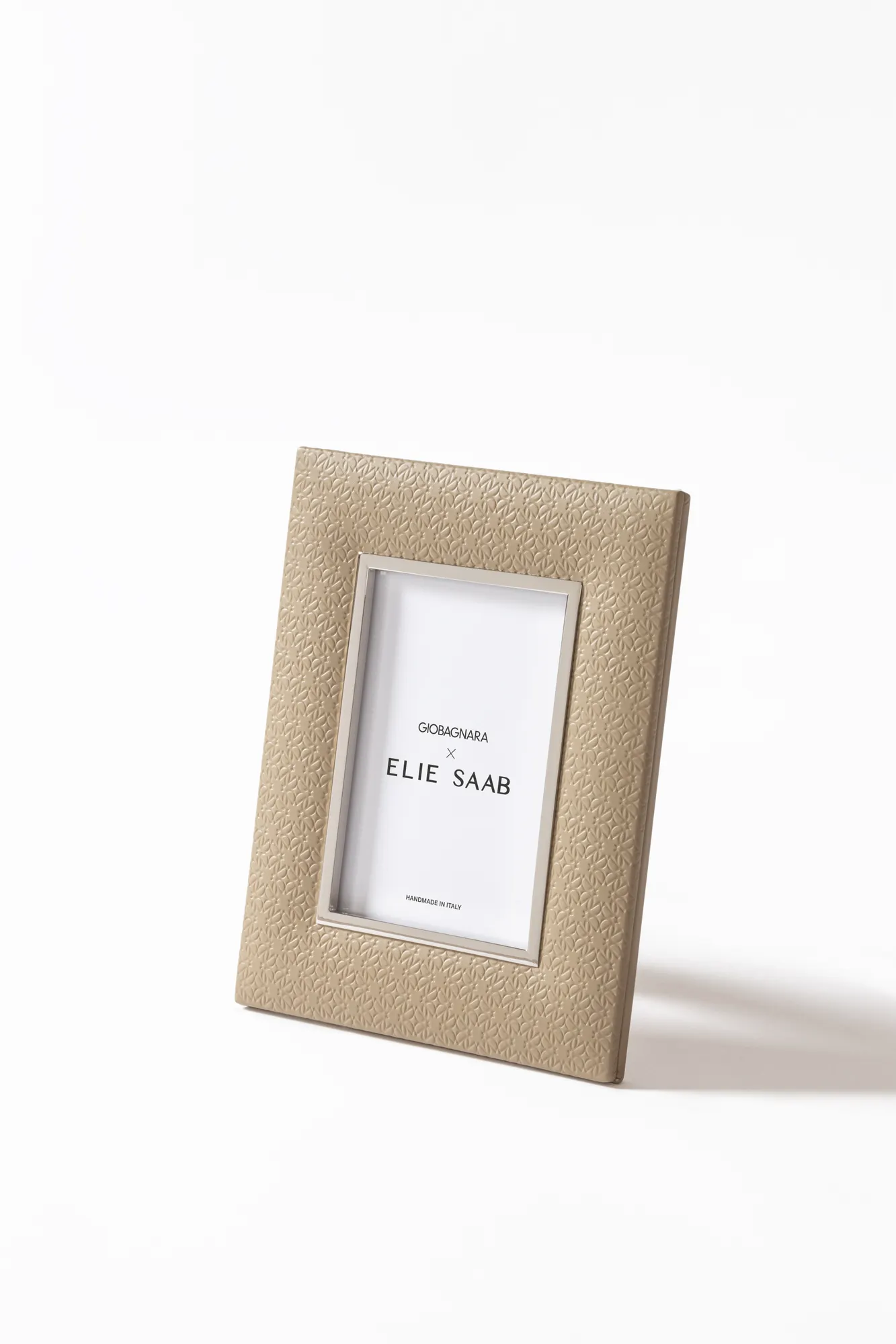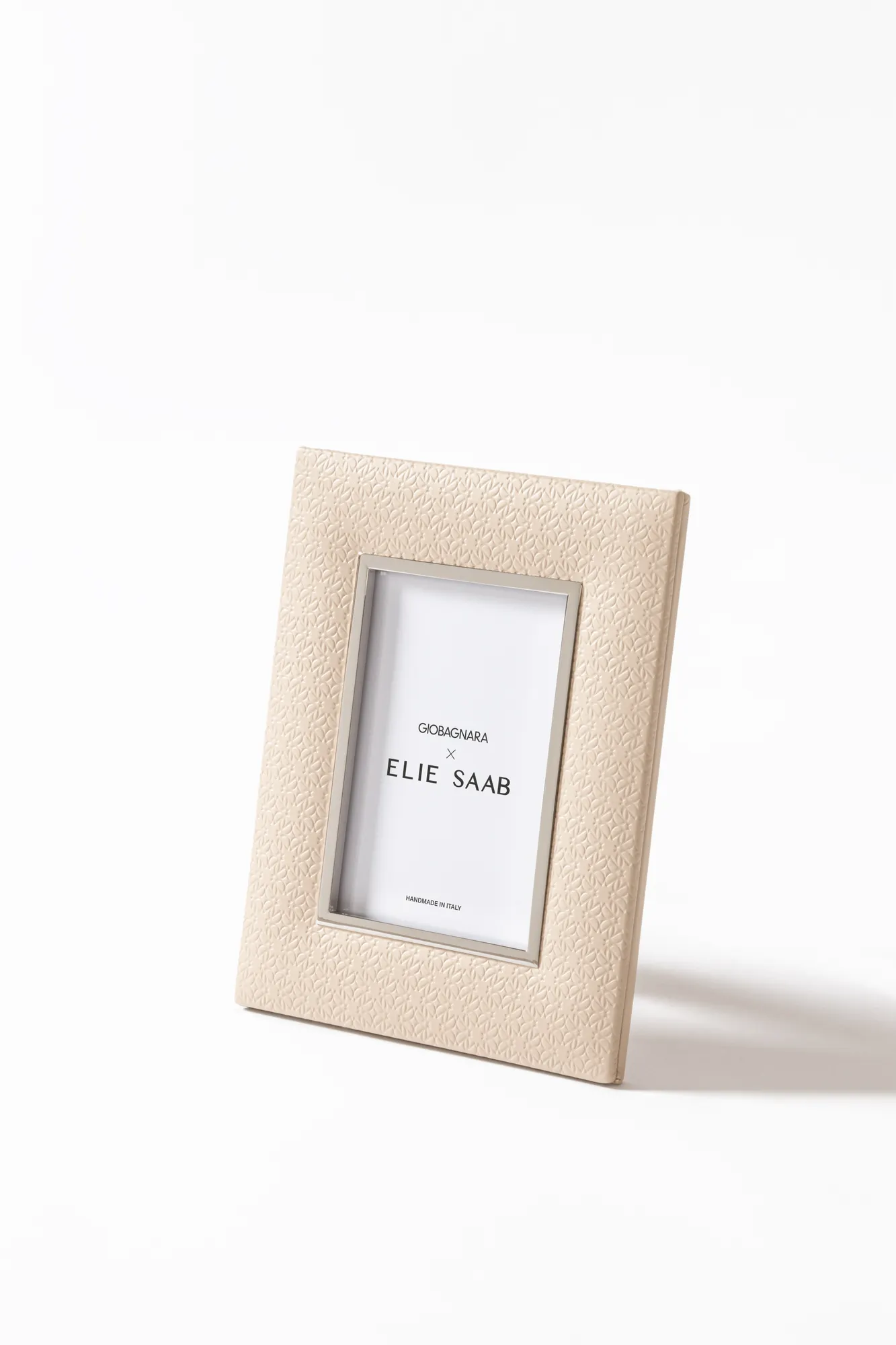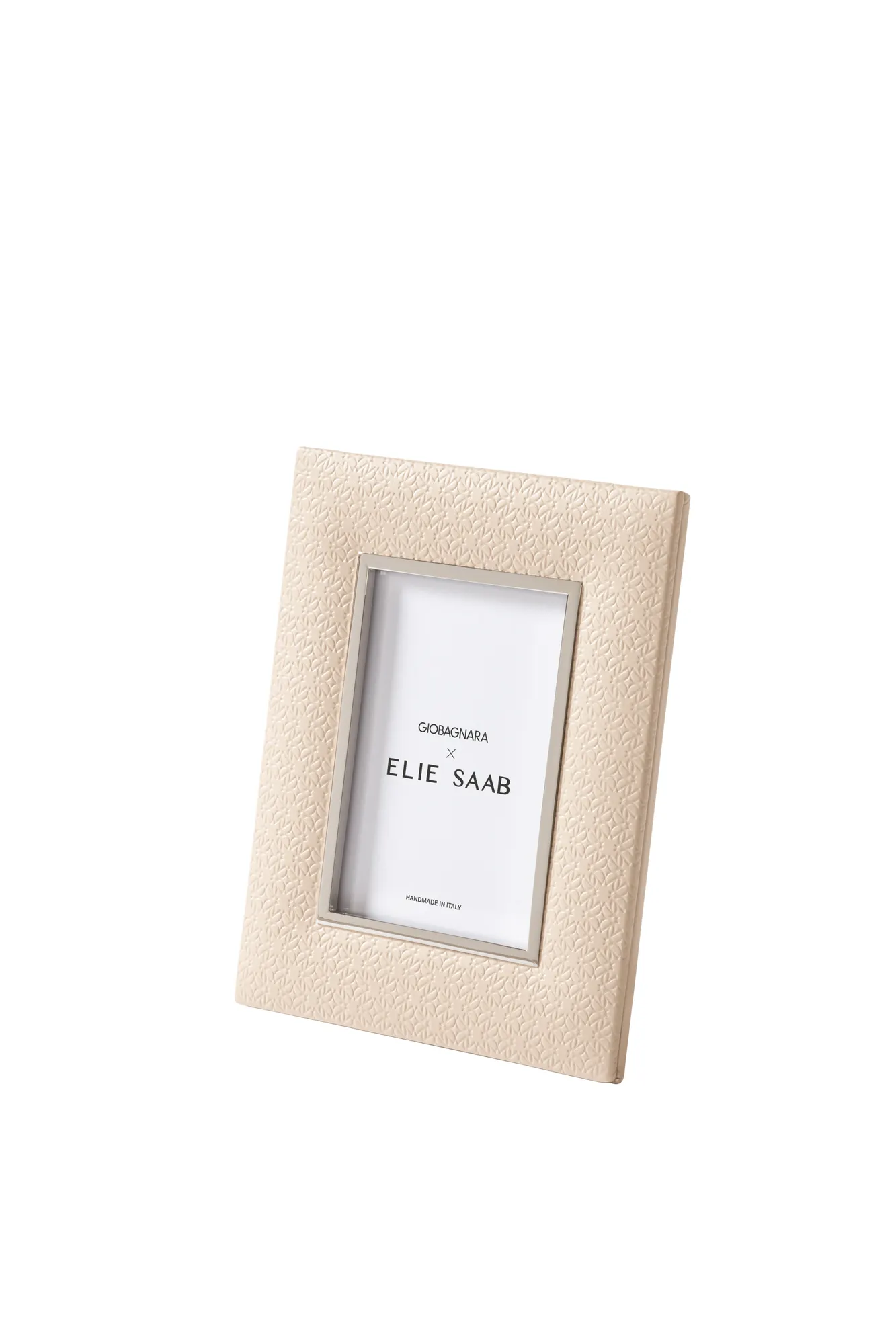Padded leather frame with polished palladium trim featuring the exclusive ELIE SAAB Monogram pattern.