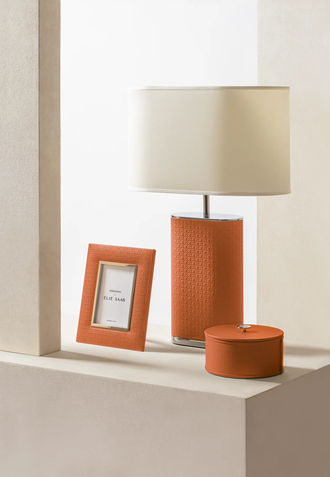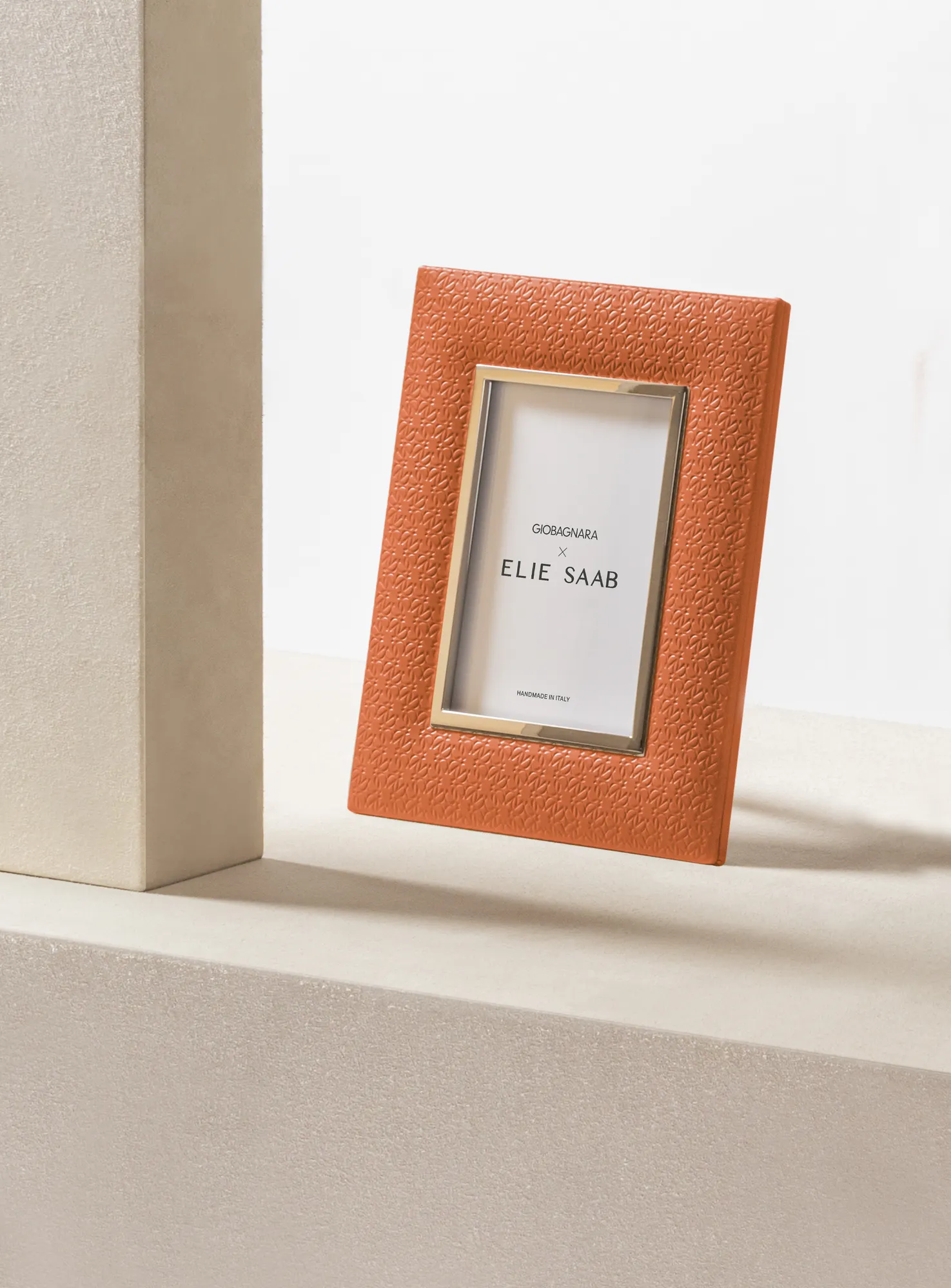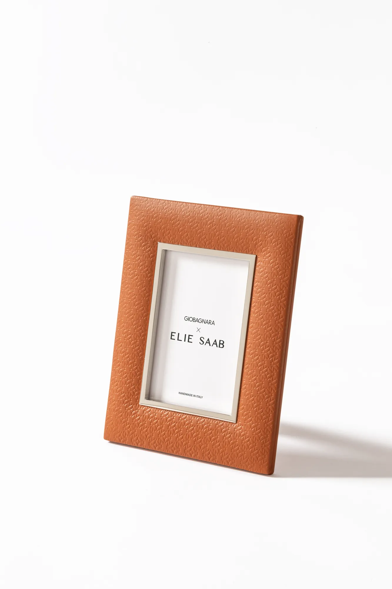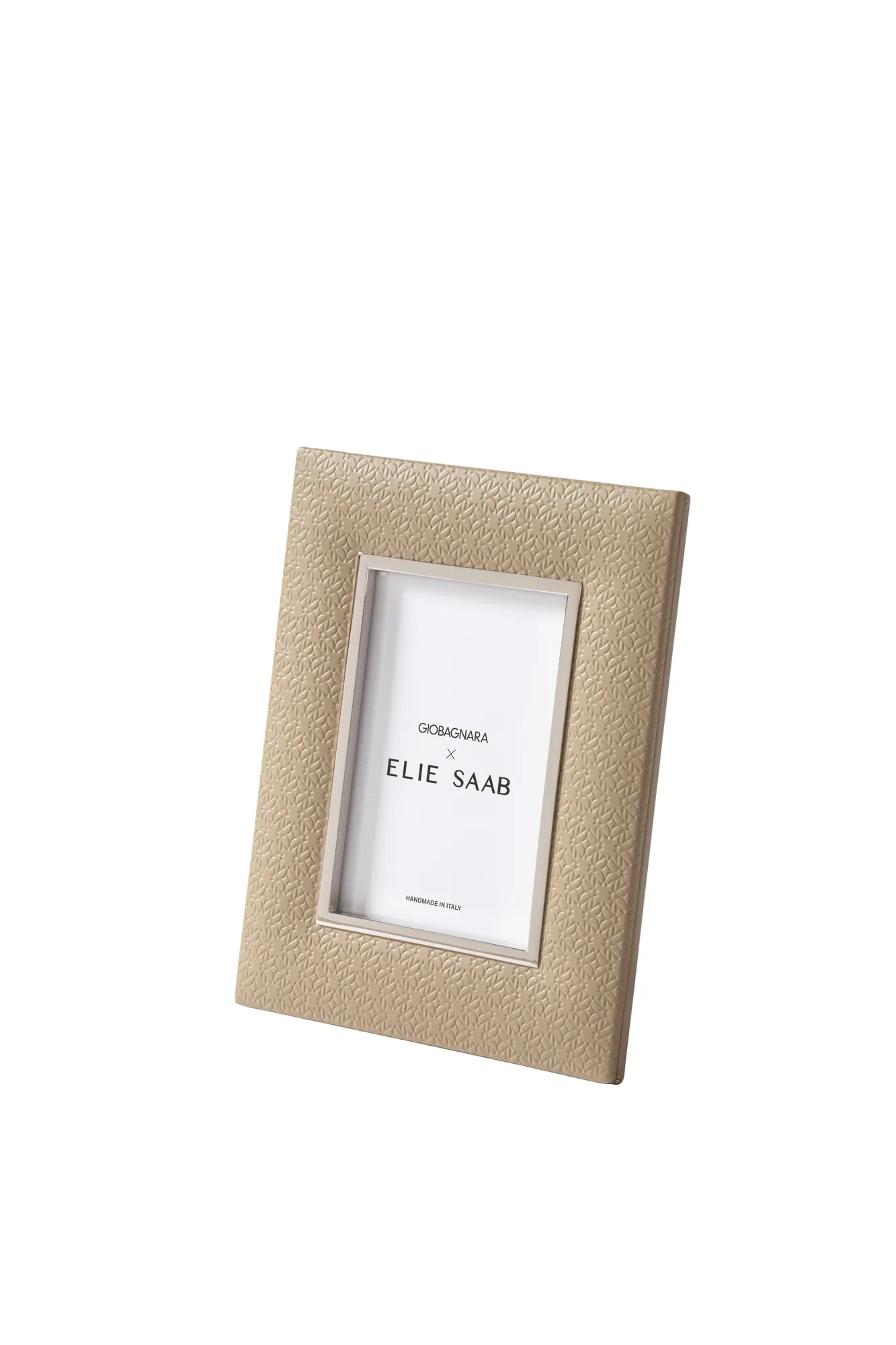 Padded leather frame with polished palladium trim featuring the exclusive ELIE SAAB Monogram pattern.