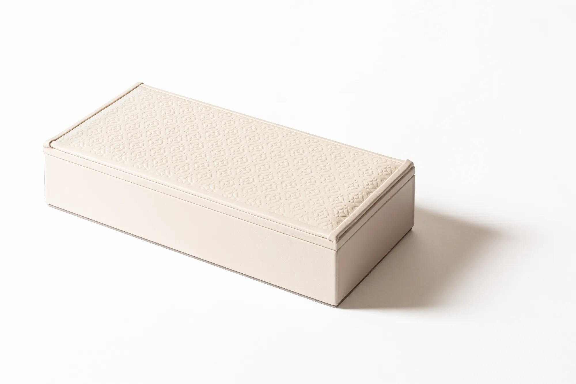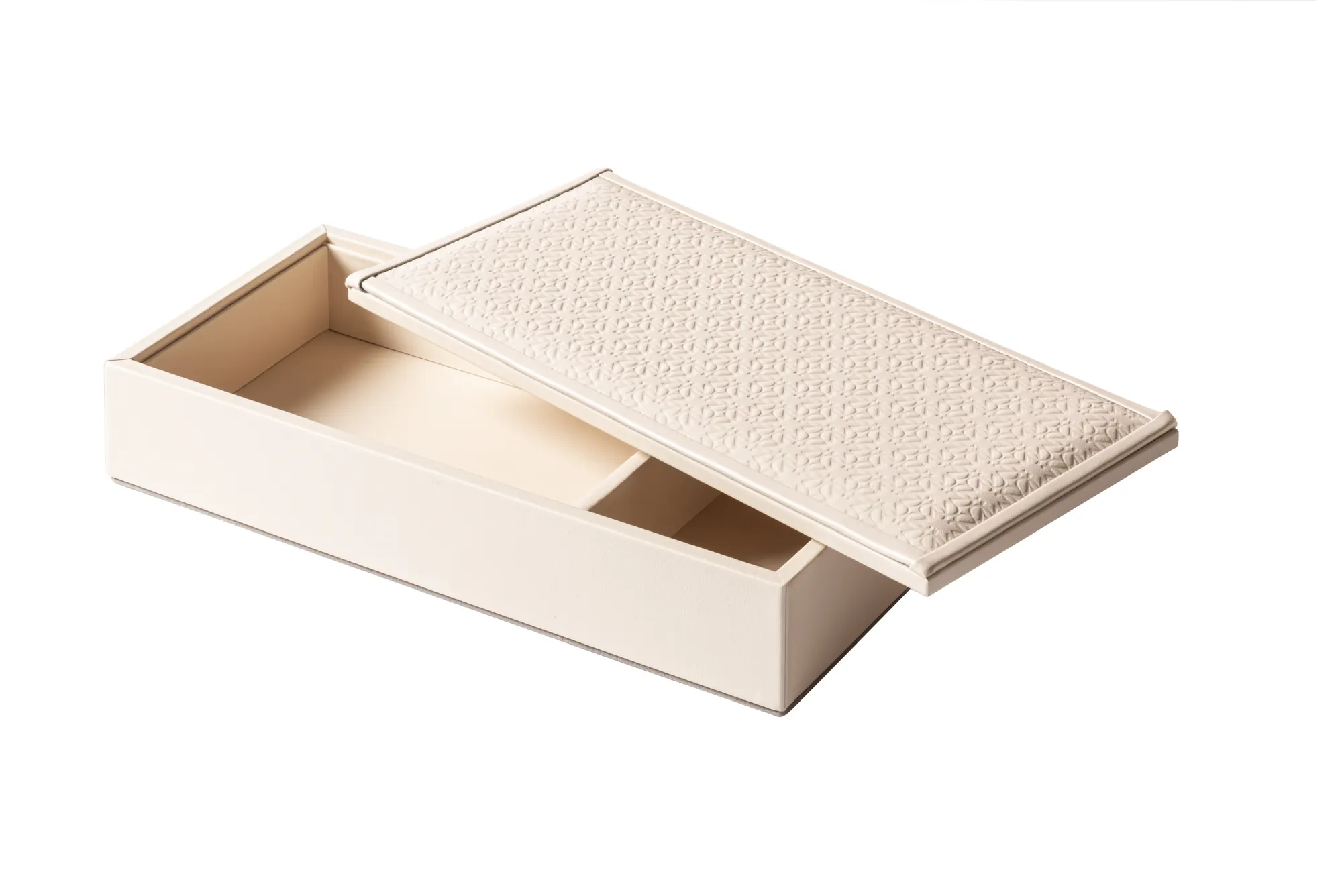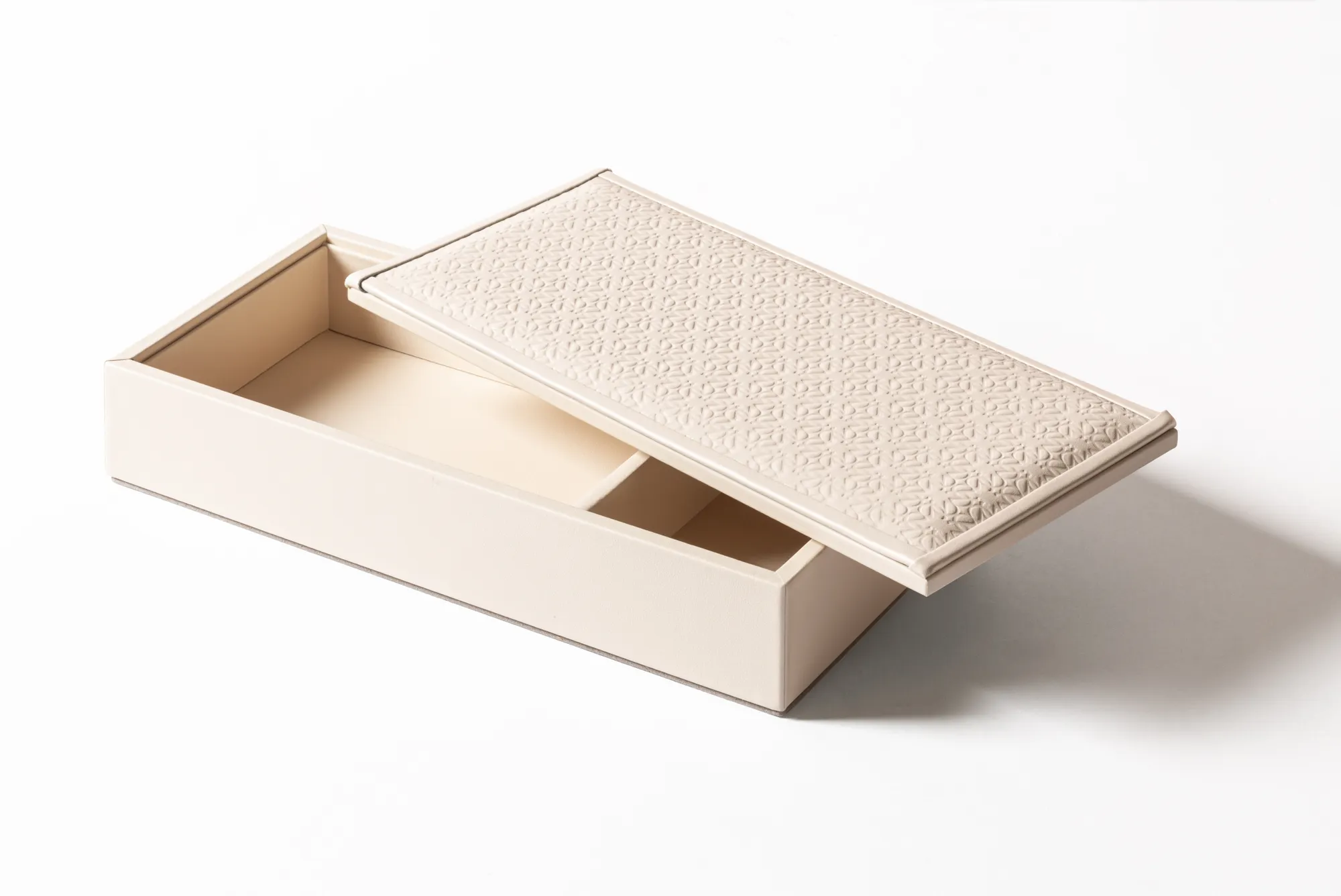 Rectangular box with padded leather inserts featuring the ELIE SAAB Monogram pattern.