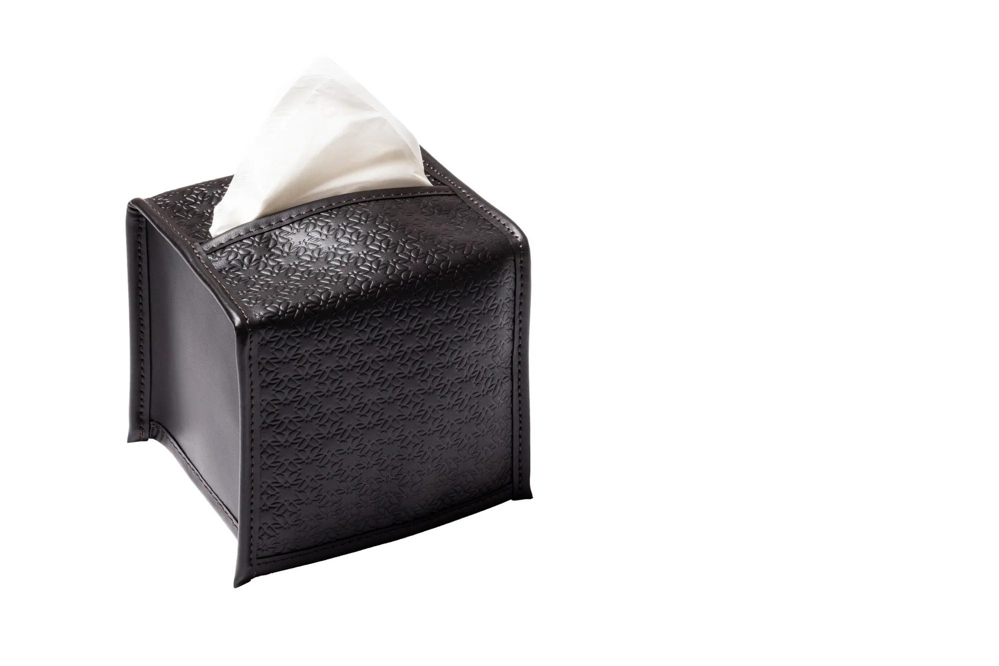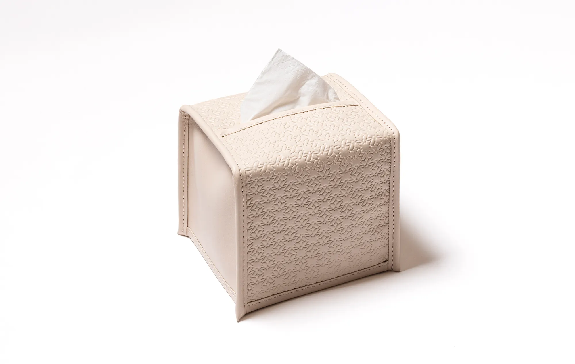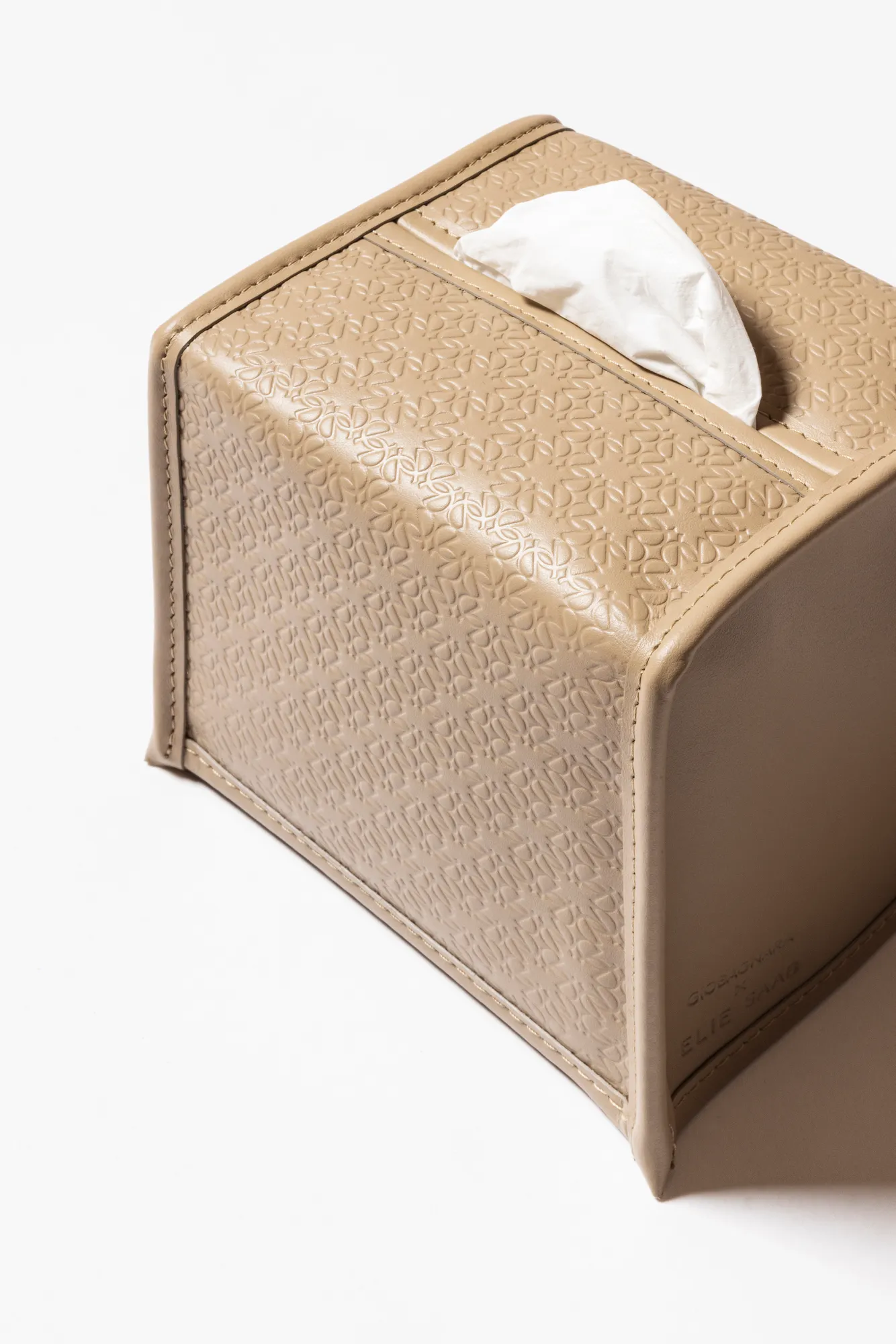 Leather tissue box cover featuring the ELIE SAAB Monogram pattern.