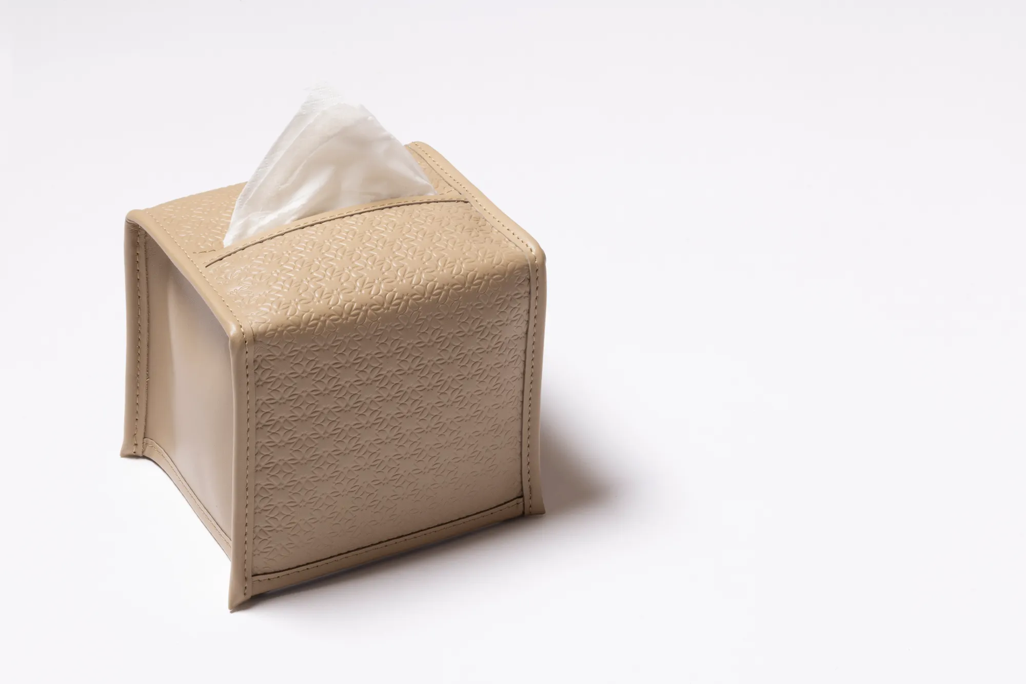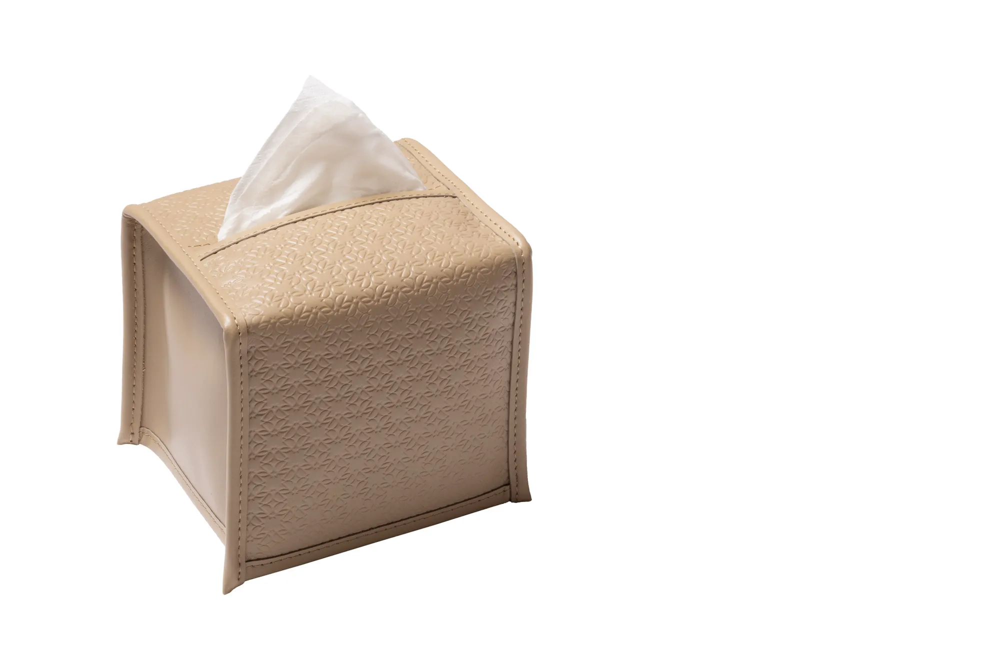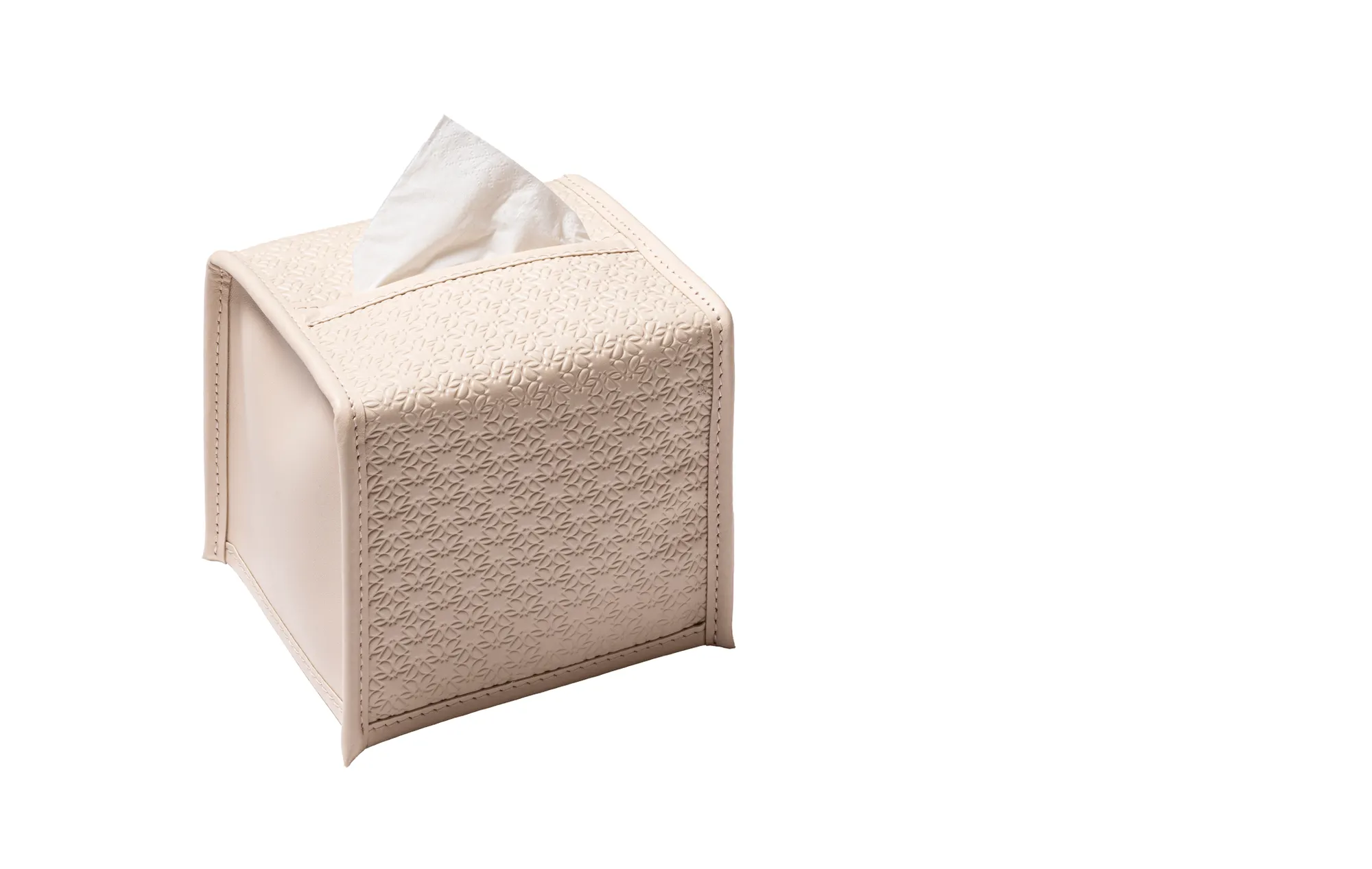 Leather tissue box cover featuring the ELIE SAAB Monogram pattern.