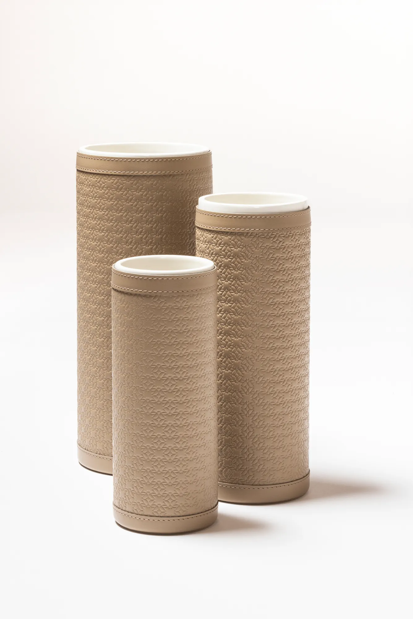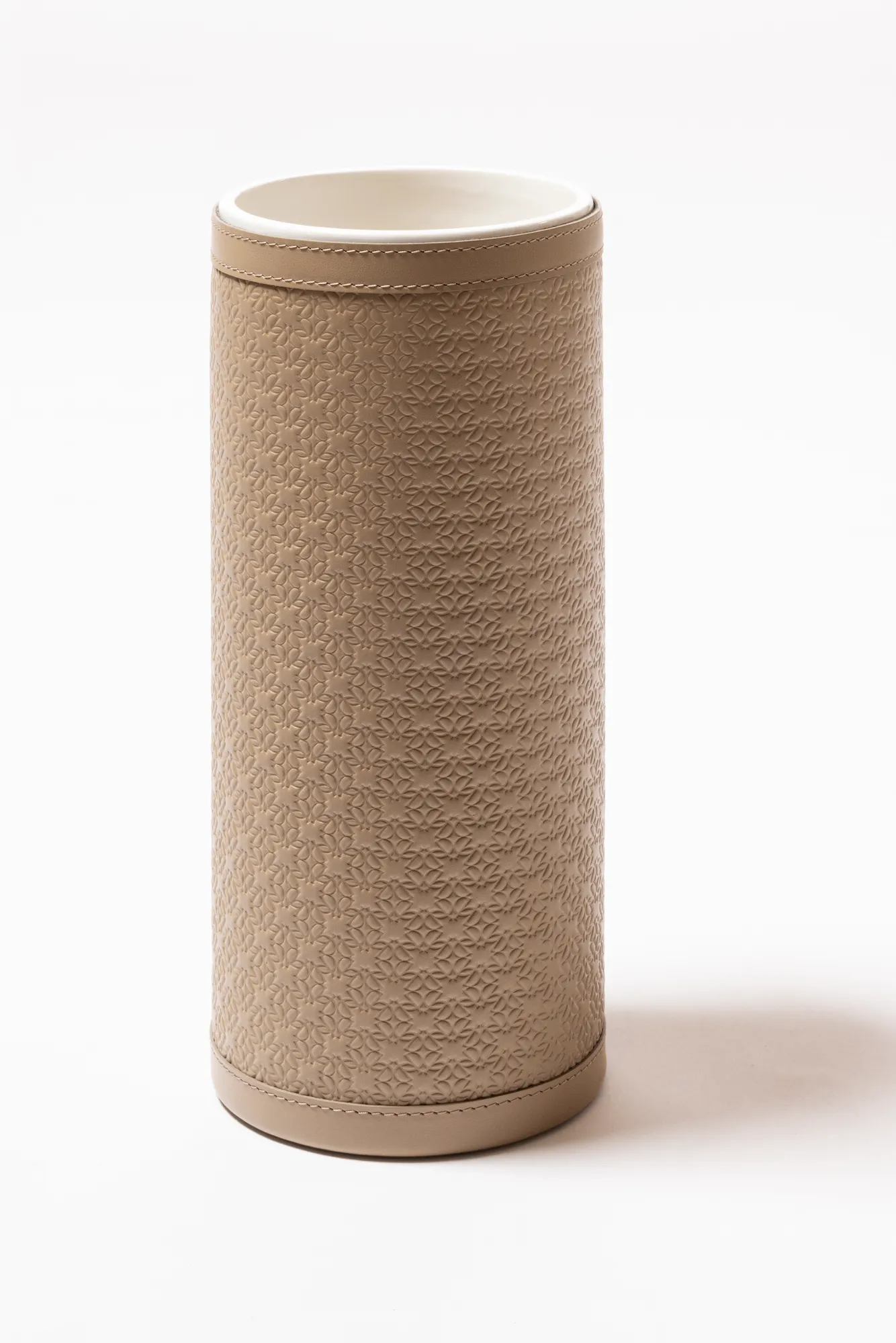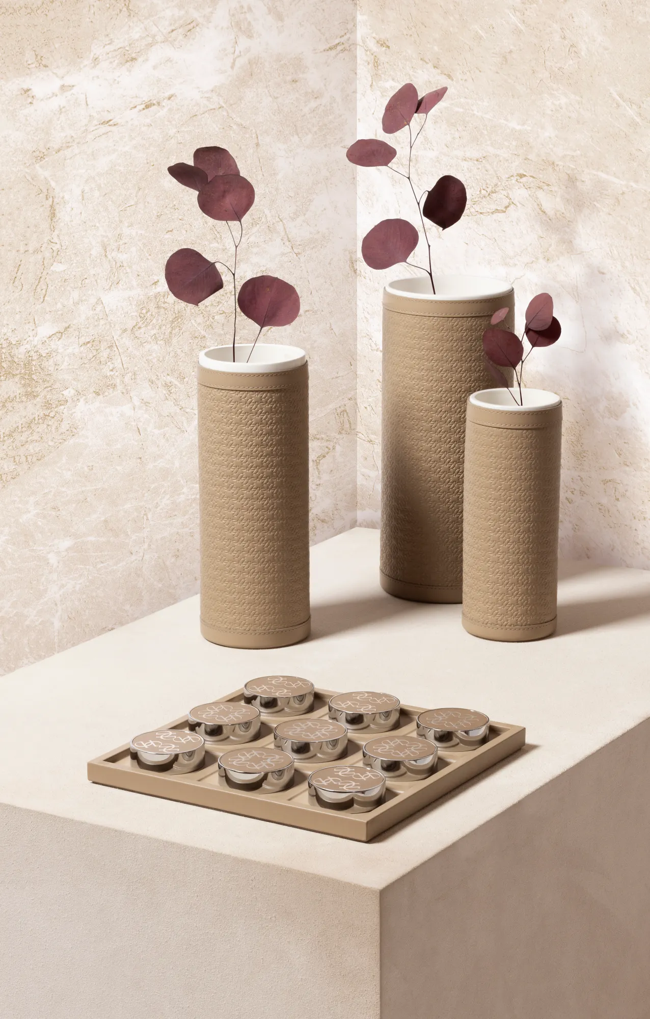 Ceramic vase, removable leather cover featuring the ELIE SAAB stitched Monogram.
