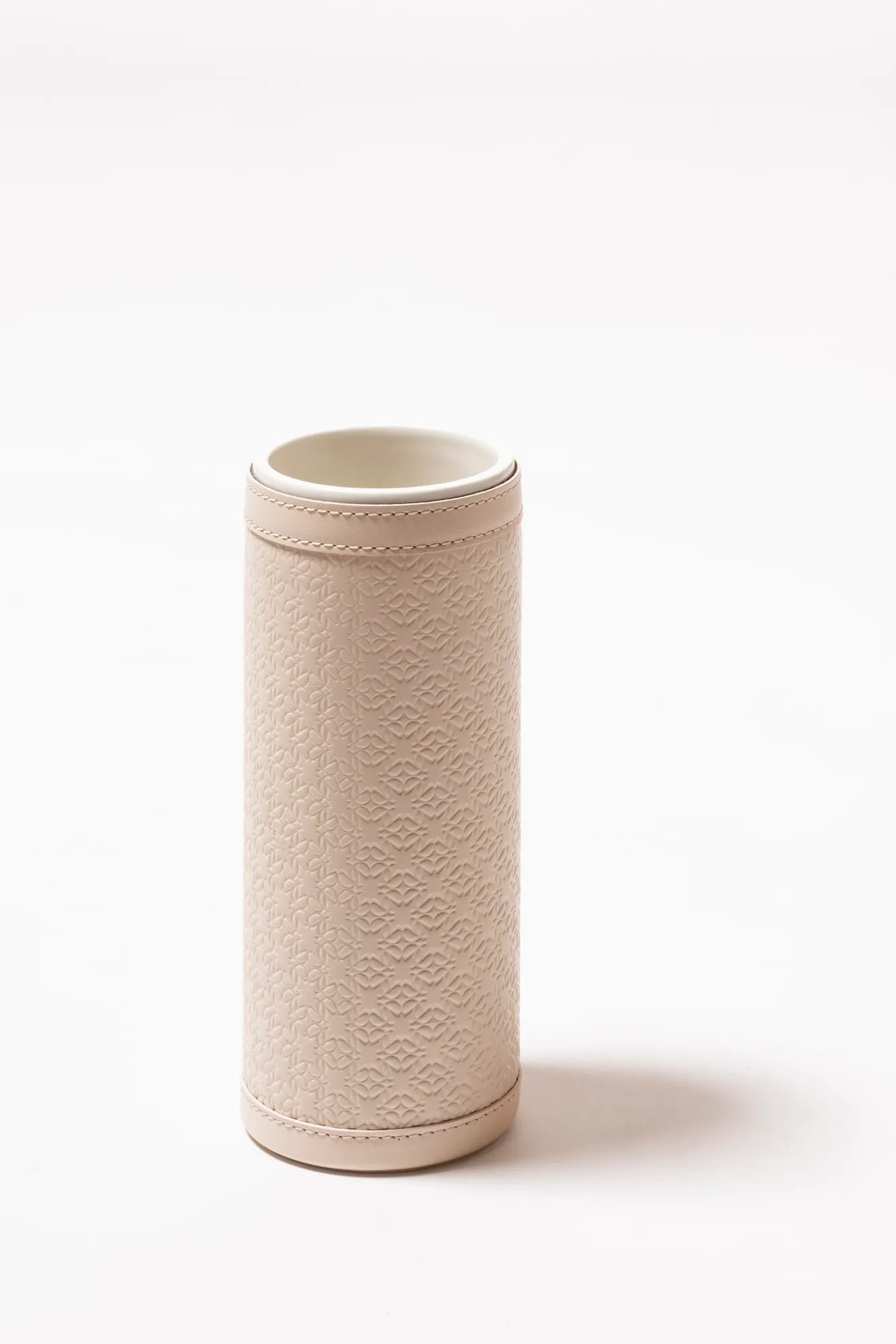 Ceramic vase, removable leather cover featuring the ELIE SAAB stitched Monogram.