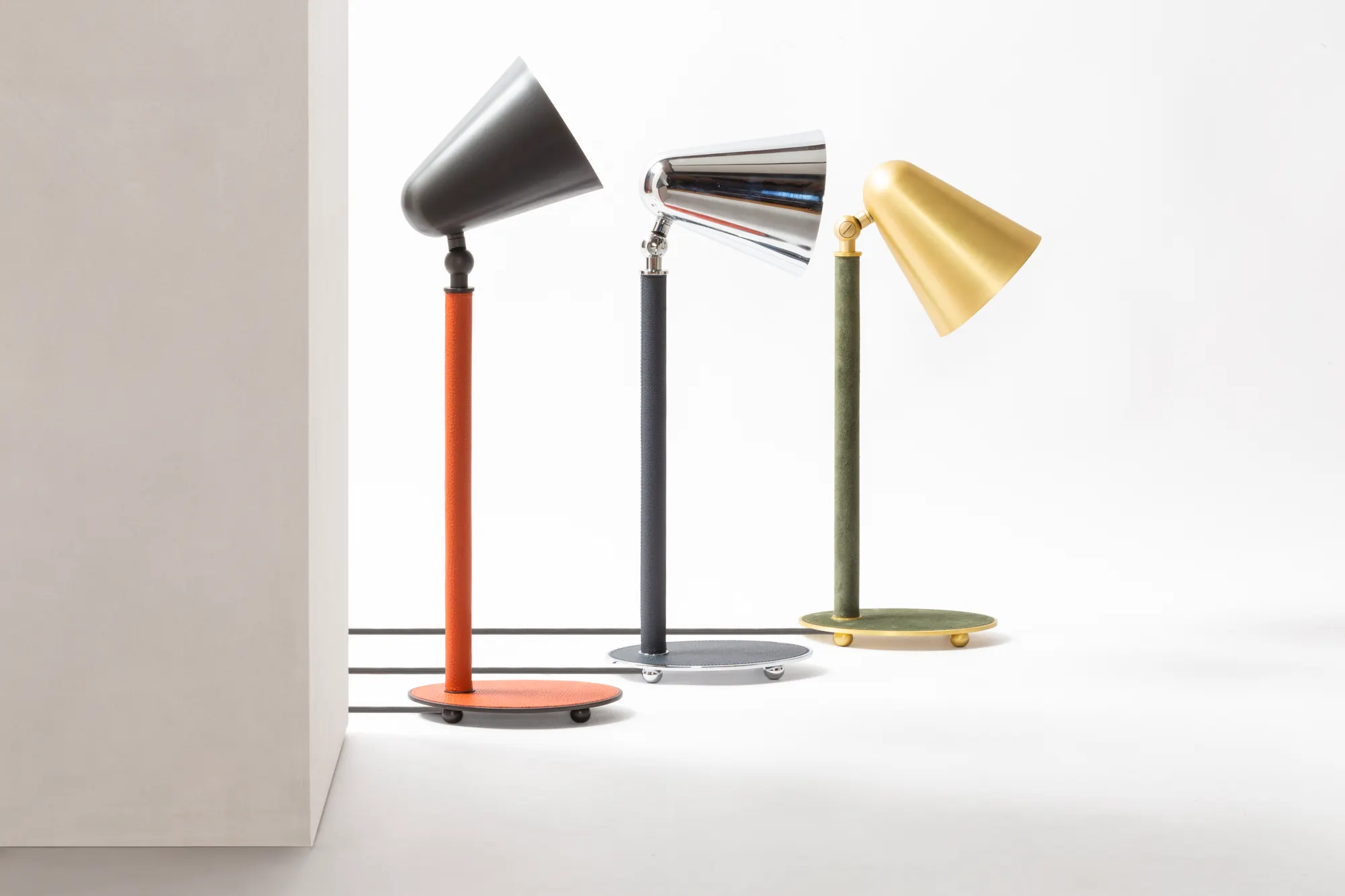 Partially leather-covered metal structure available in different finishes provided with metal rounded feet.