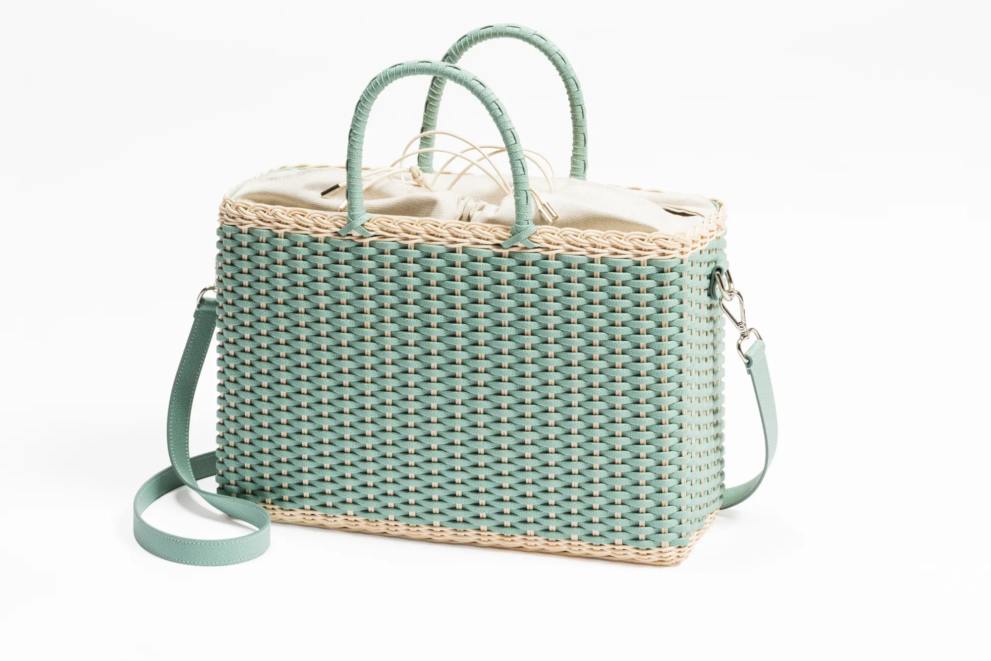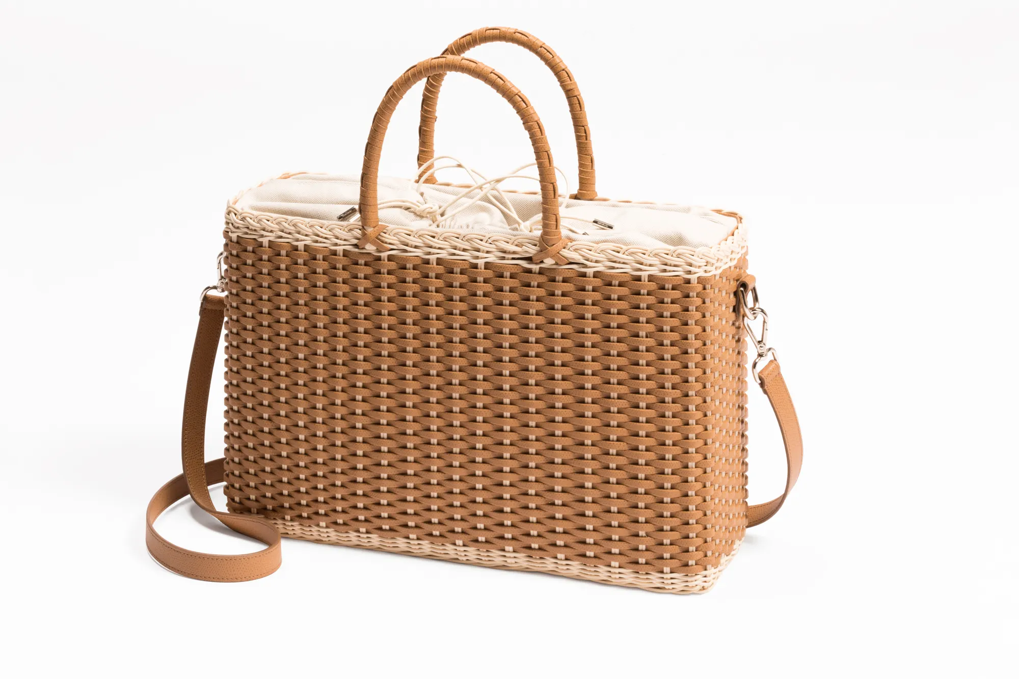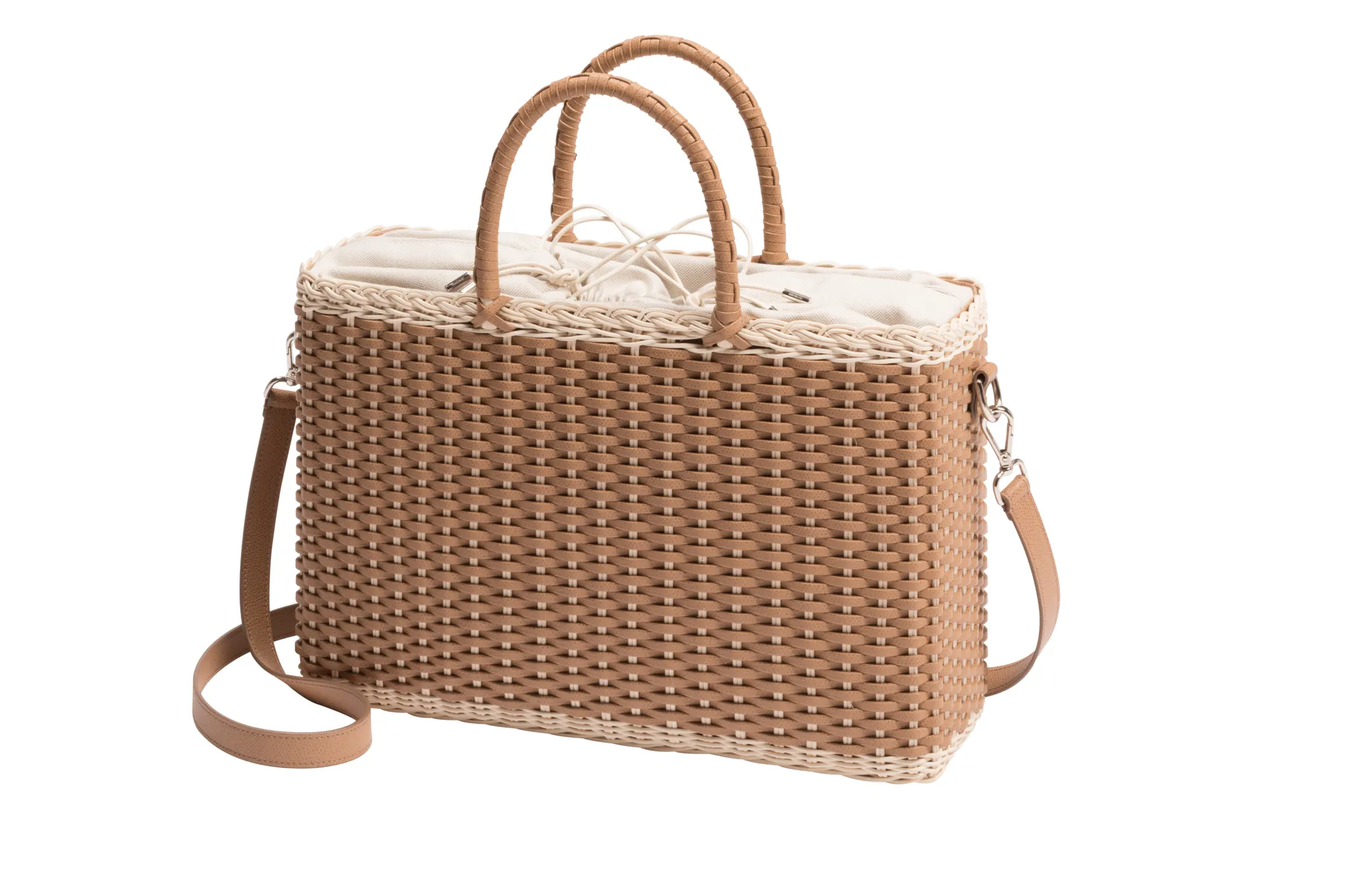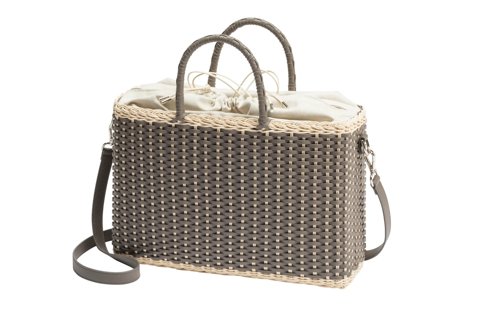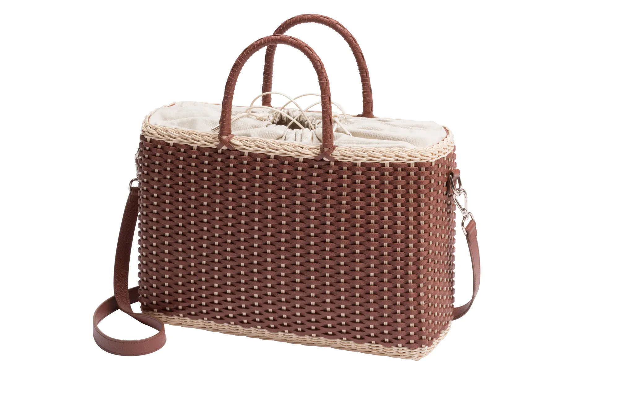 Made with the finest woven leather and rattan, this collection of compact day bags boasts a casual yet sophisticated attitude: the elegant shiny calfskin and the gentle freshness of rattan complement each other perfectly. The structured basket style is trimmed with hand-wrapped golf leather handles which showcase sophisticated leatherwork, while opening it reveals a cotton lining featuring a leather drawstring closure which adds a fresh touch. The Nartelle bags can either be carried with the two top handles or with the additional adjustable leather strap according to one's taste.