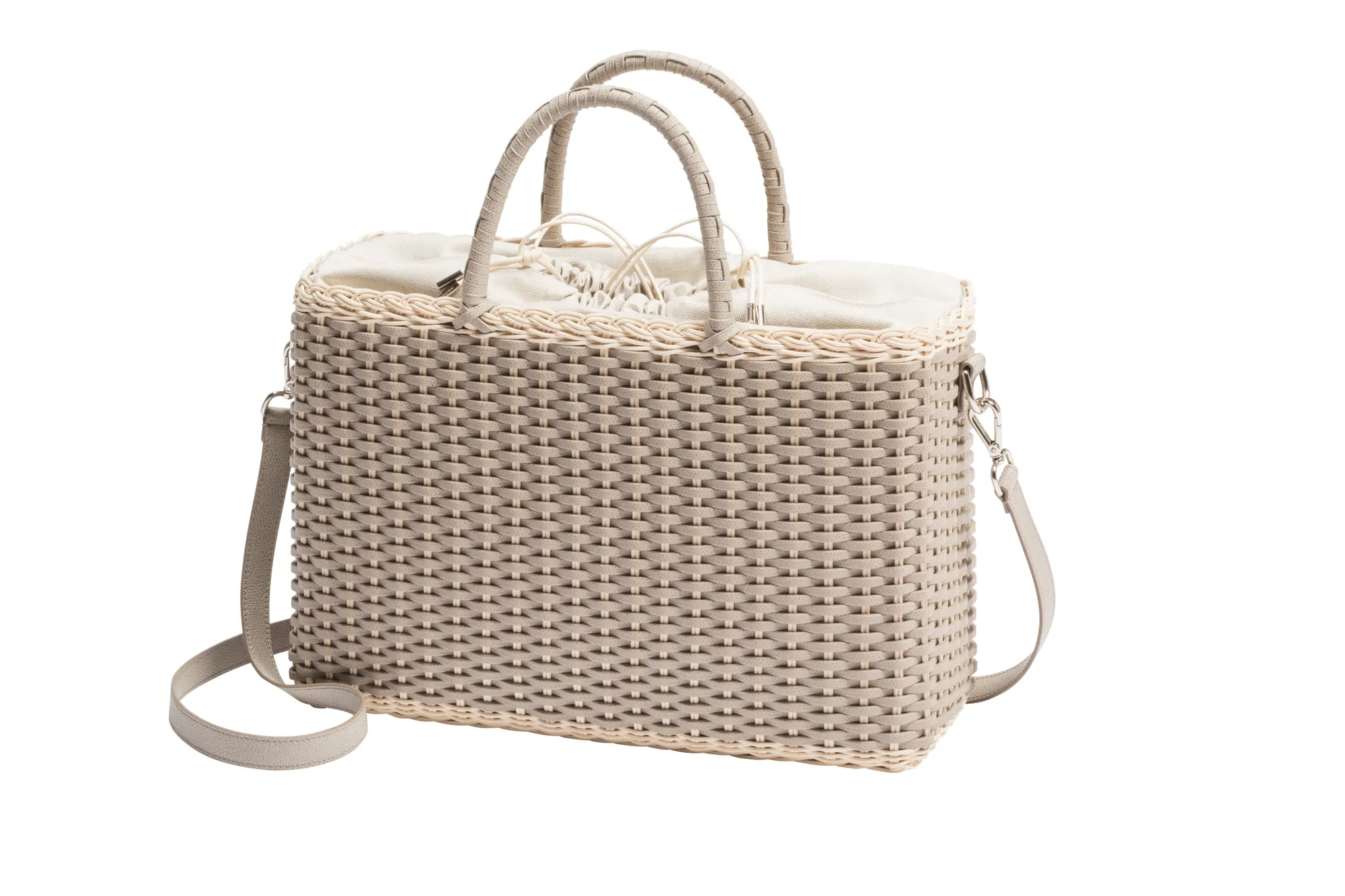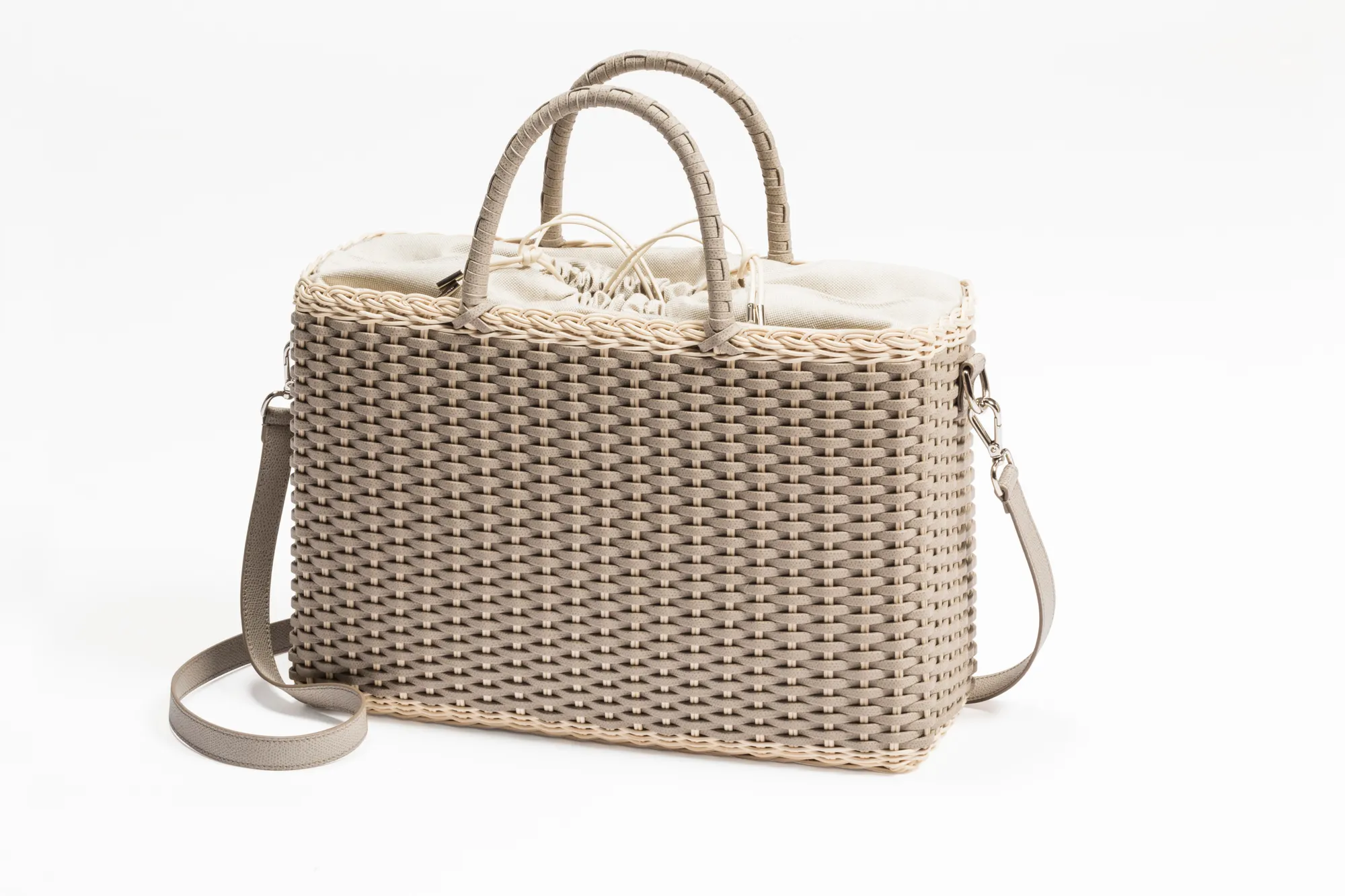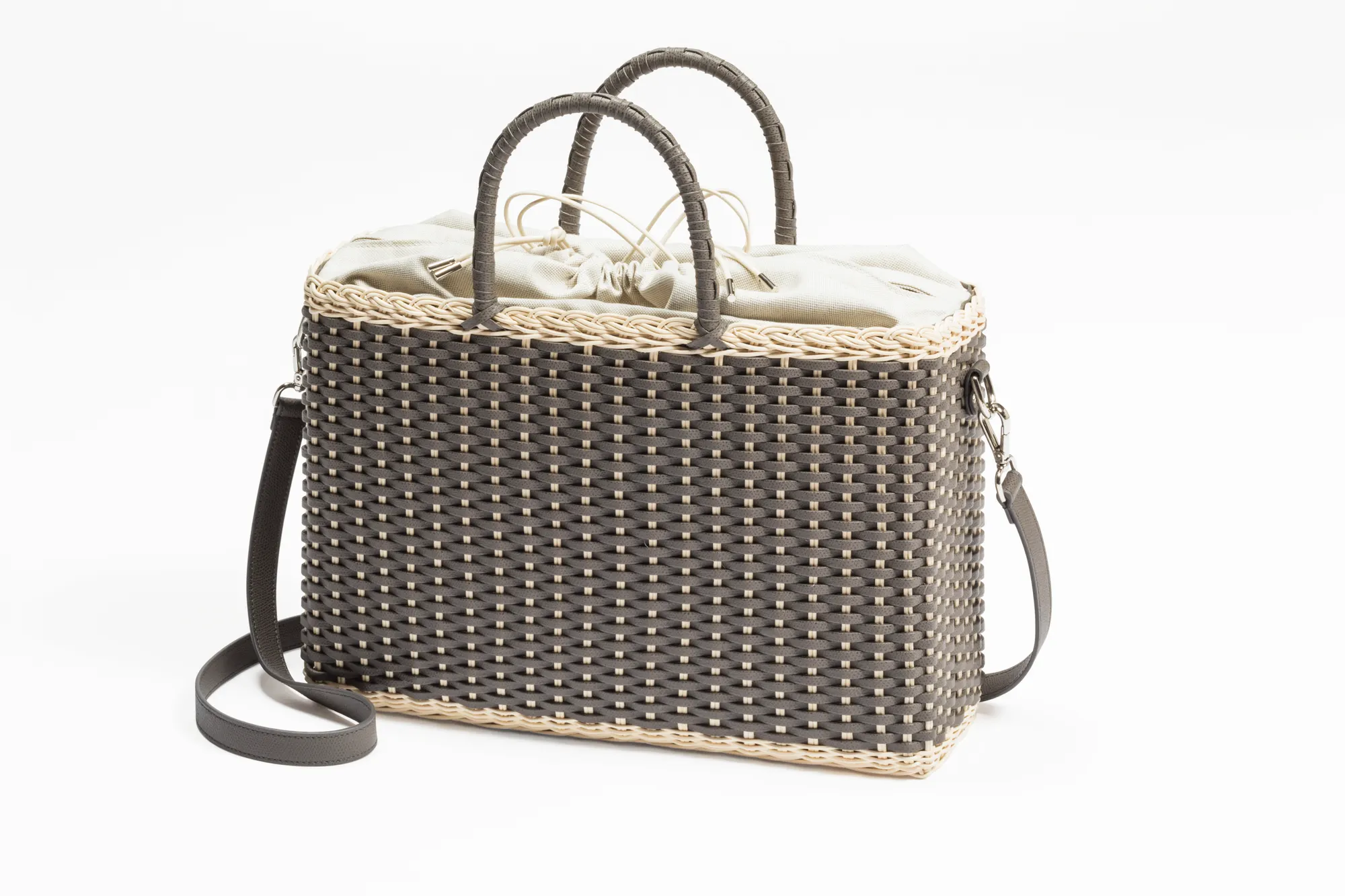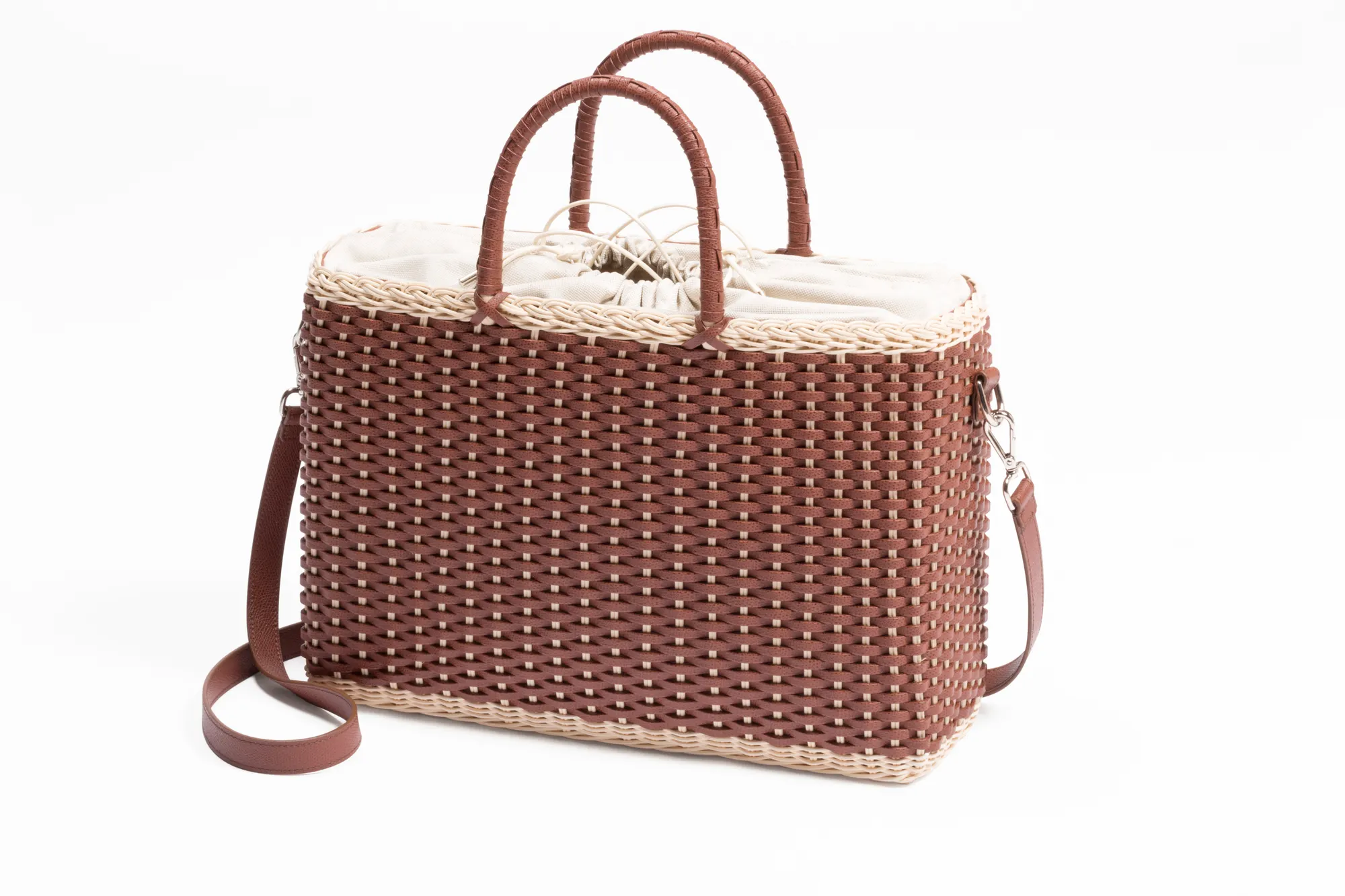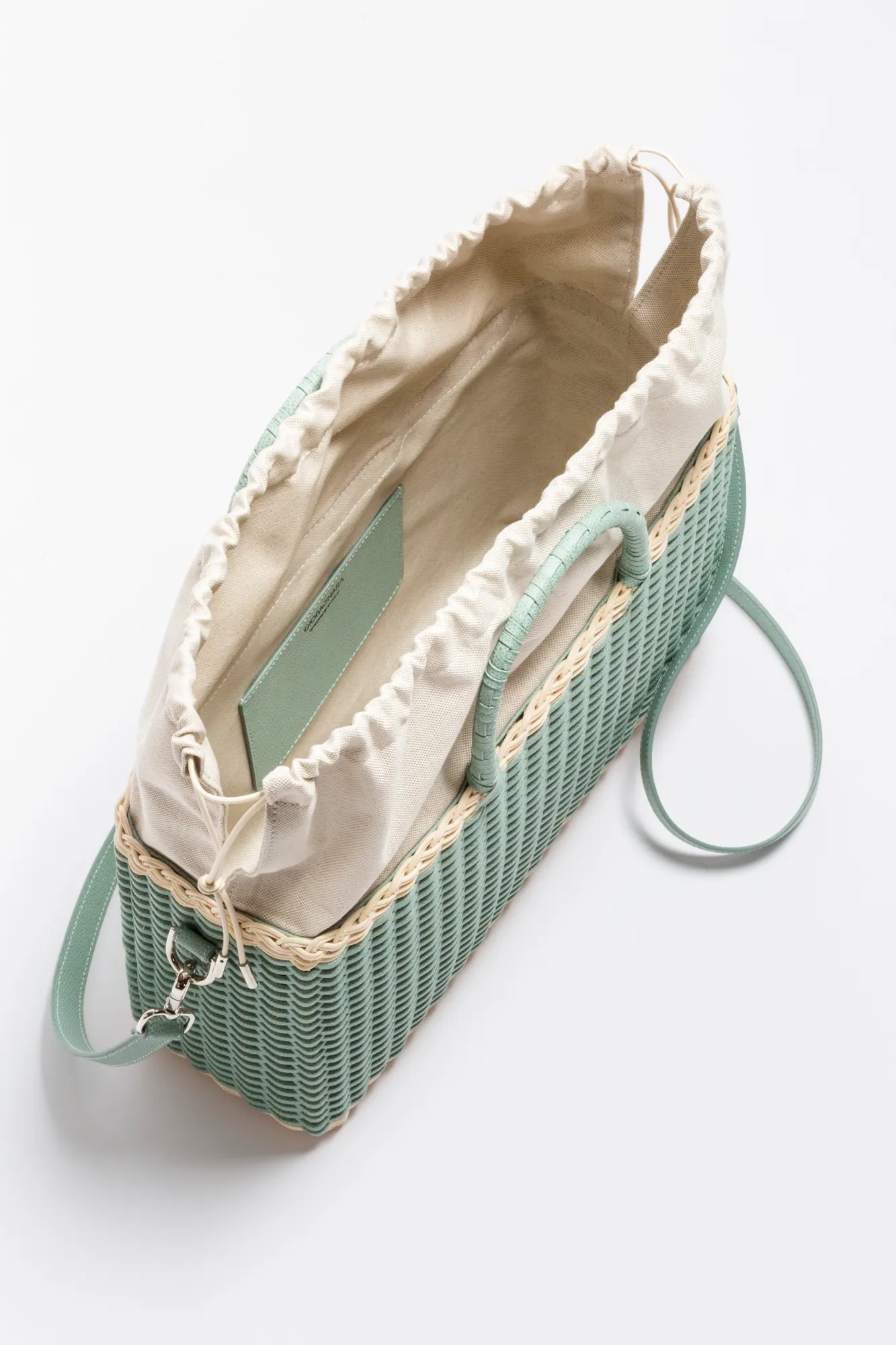 Made with the finest woven leather and rattan, this collection of compact day bags boasts a casual yet sophisticated attitude: the elegant shiny calfskin and the gentle freshness of rattan complement each other perfectly. The structured basket style is trimmed with hand-wrapped golf leather handles which showcase sophisticated leatherwork, while opening it reveals a cotton lining featuring a leather drawstring closure which adds a fresh touch. The Nartelle bags can either be carried with the two top handles or with the additional adjustable leather strap according to one's taste.