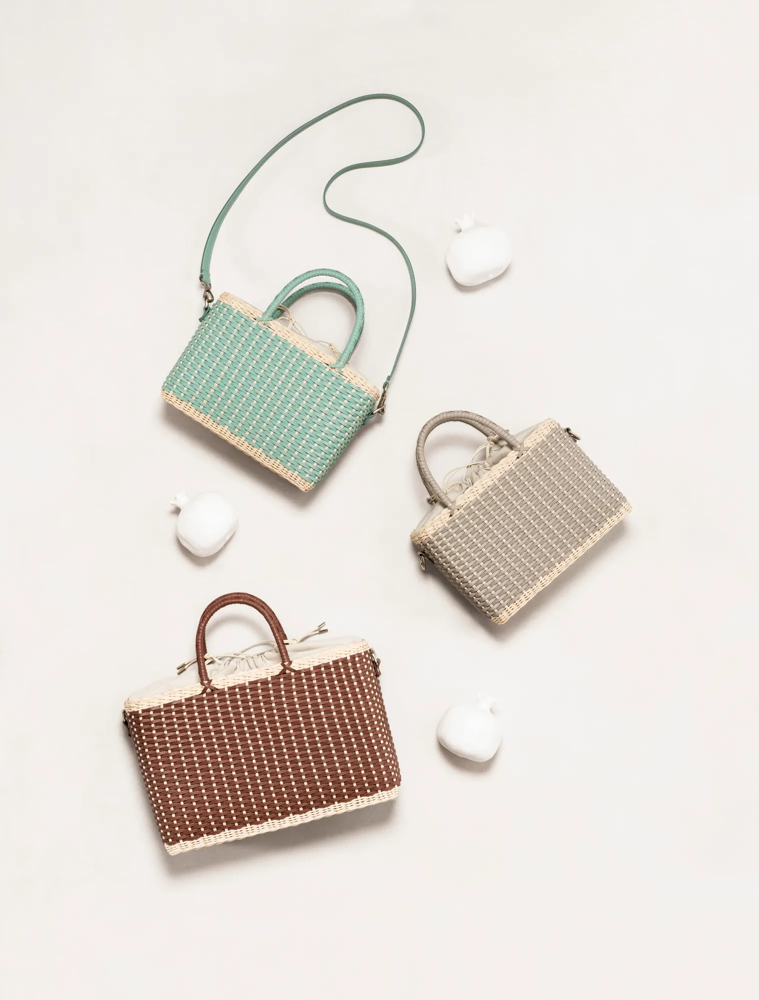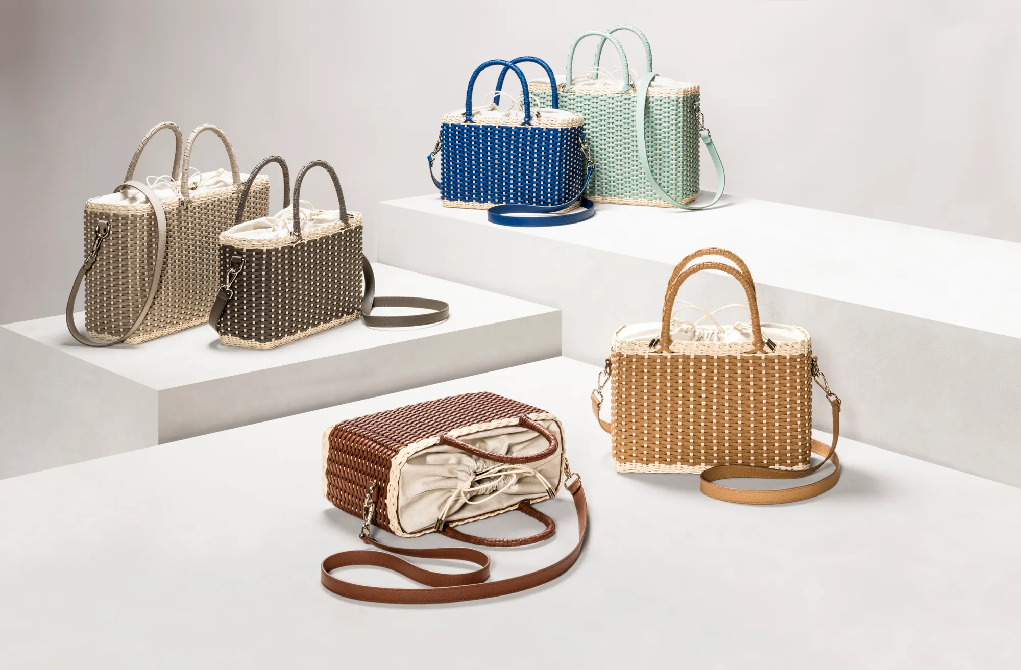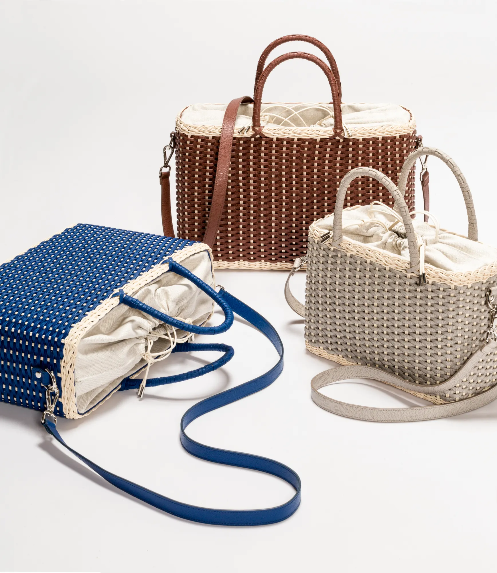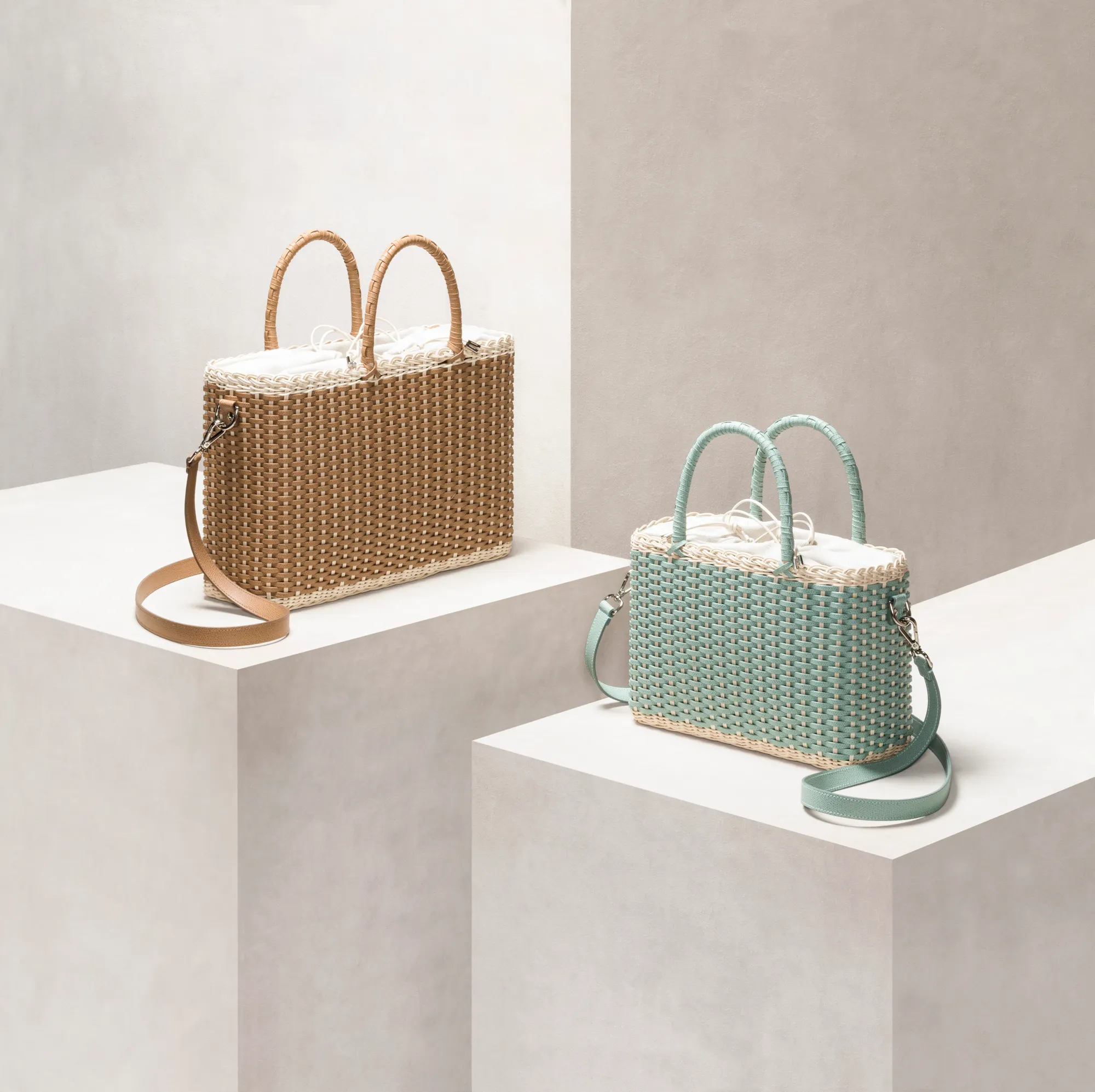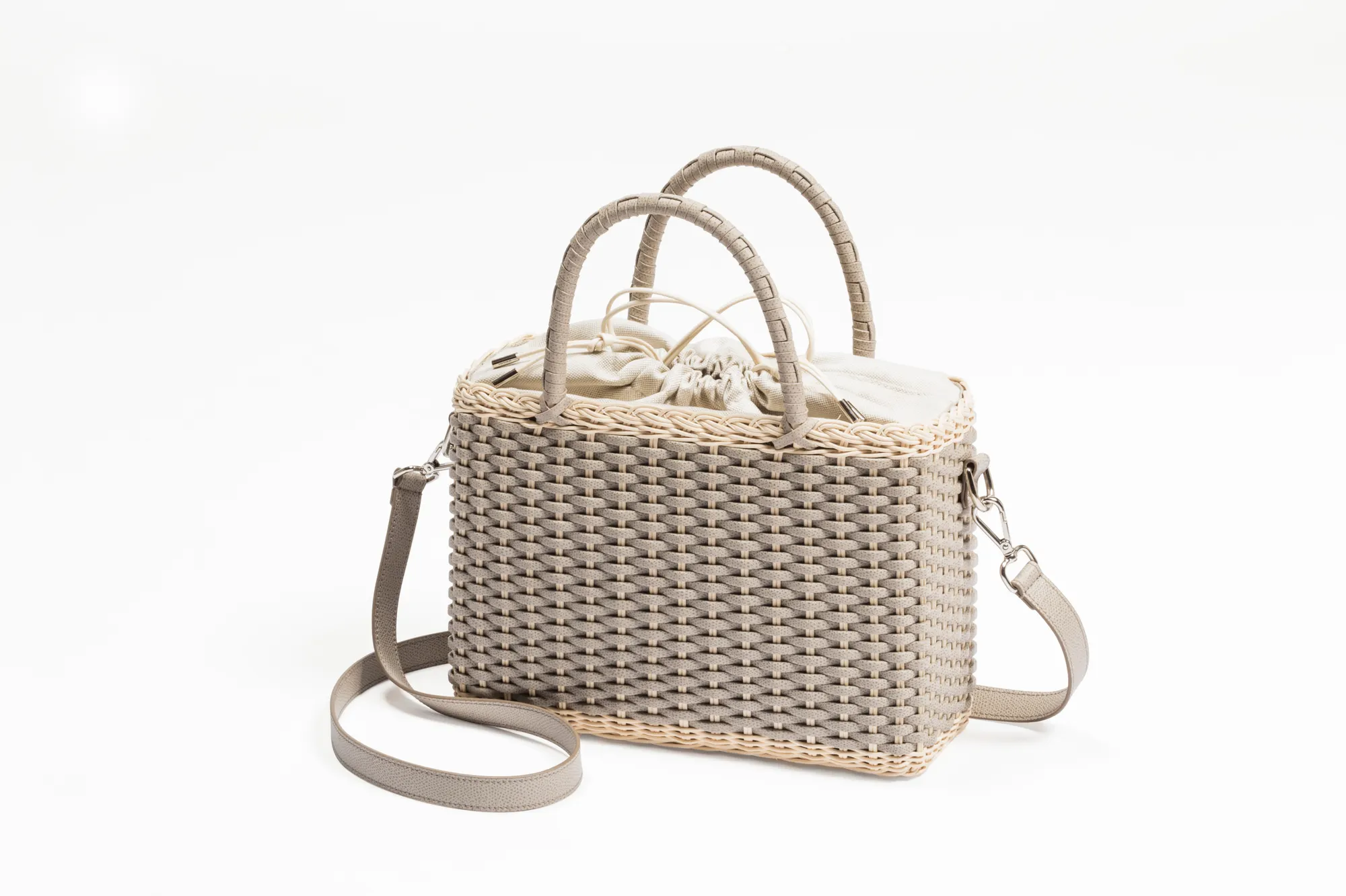 Made with the finest woven leather and rattan, this collection of compact day bags boasts a casual yet sophisticated attitude: the elegant shiny calfskin and the gentle freshness of rattan complement each other perfectly. The structured basket style is trimmed with hand-wrapped golf leather handles which showcase sophisticated leatherwork, while opening it reveals a cotton lining featuring a leather drawstring closure which adds a fresh touch. The Nartelle bags can either be carried with the two top handles or with the additional adjustable leather strap according to one's taste.