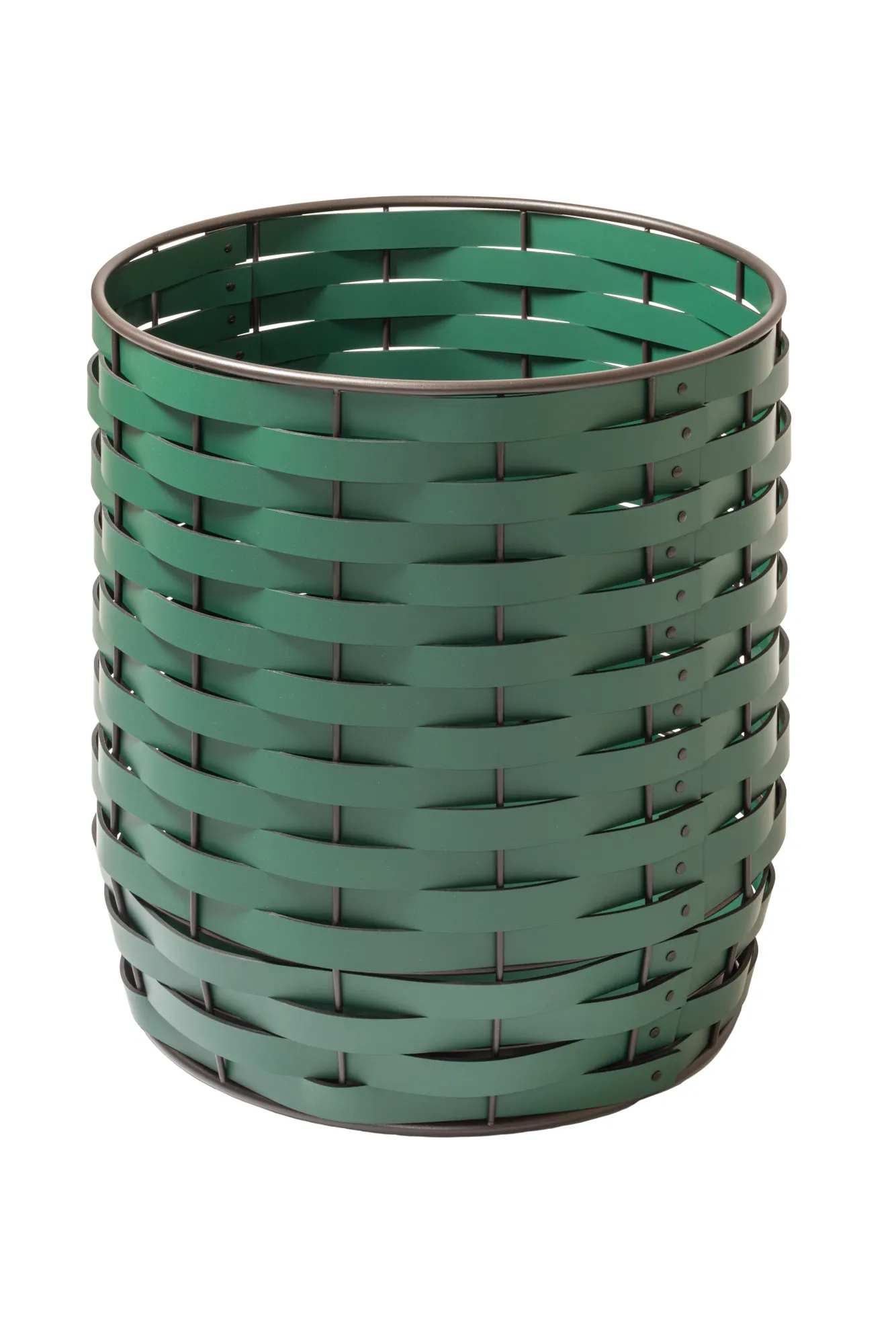 The Nassa collection is the perfect synergy of style and utility able to redefine living spaces with its sophisticated allure. The framework of this series of storage baskets boasts a sophisticated dark-stained aluminum structure and a vibrant Tecnocuoio® weaving, providing not only durability but also a touch of contemporary elegance. This sleek combination of materials ensures stability while adding a subtle yet striking visual appeal to the planters. Design by Simone Fanciullacci.