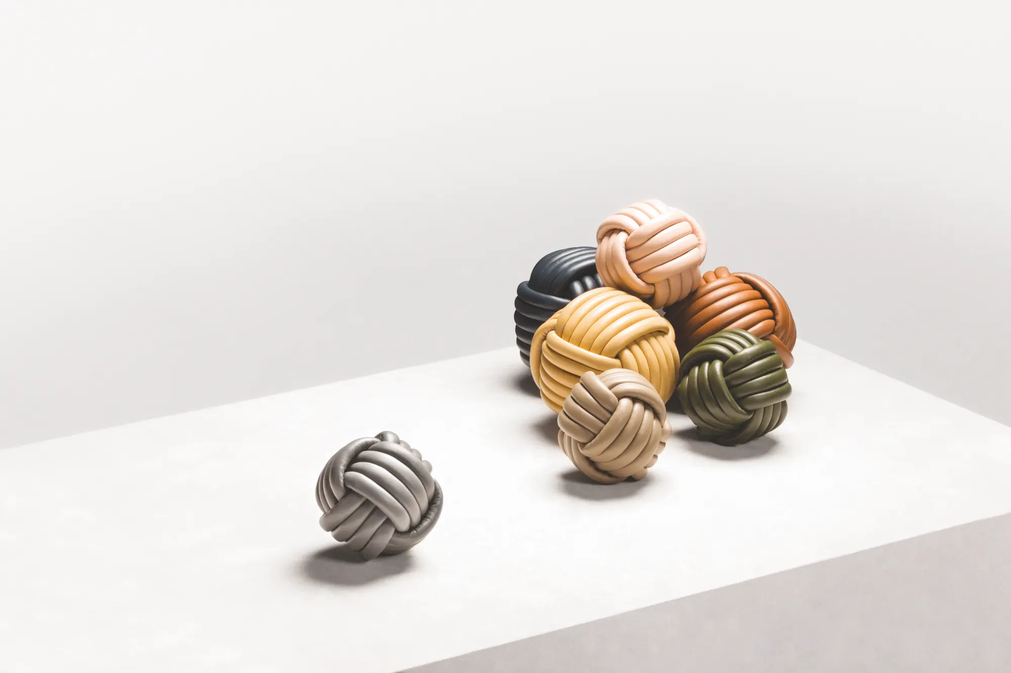 Nappa leather doorstop. Available only in a selection of nappa leather finishes from our finishes chart. Very stable. Nodo is an Italian word which means knot.