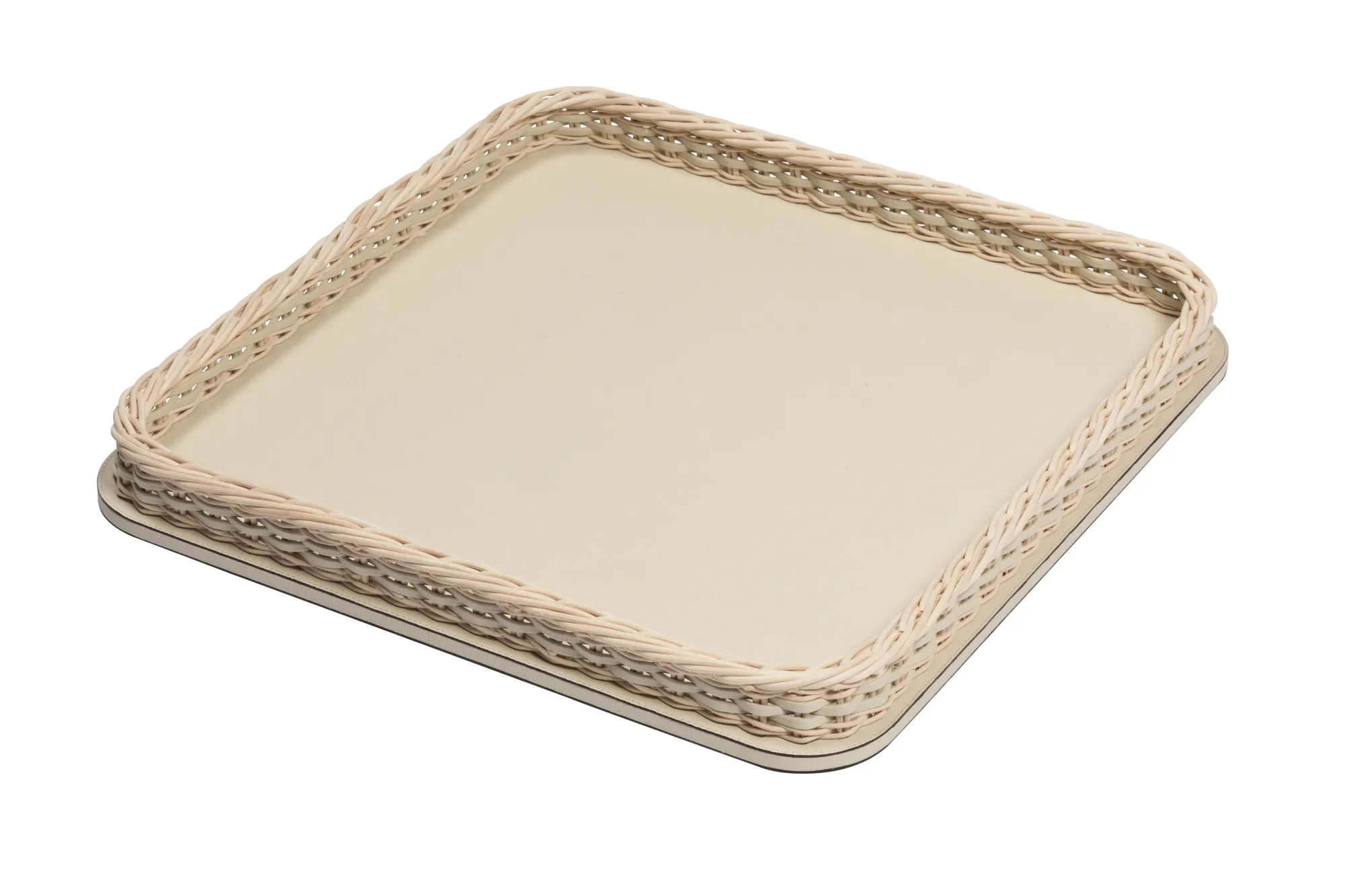ORSAY LEATHER & RATTAN TRAY SQUARE LARGE