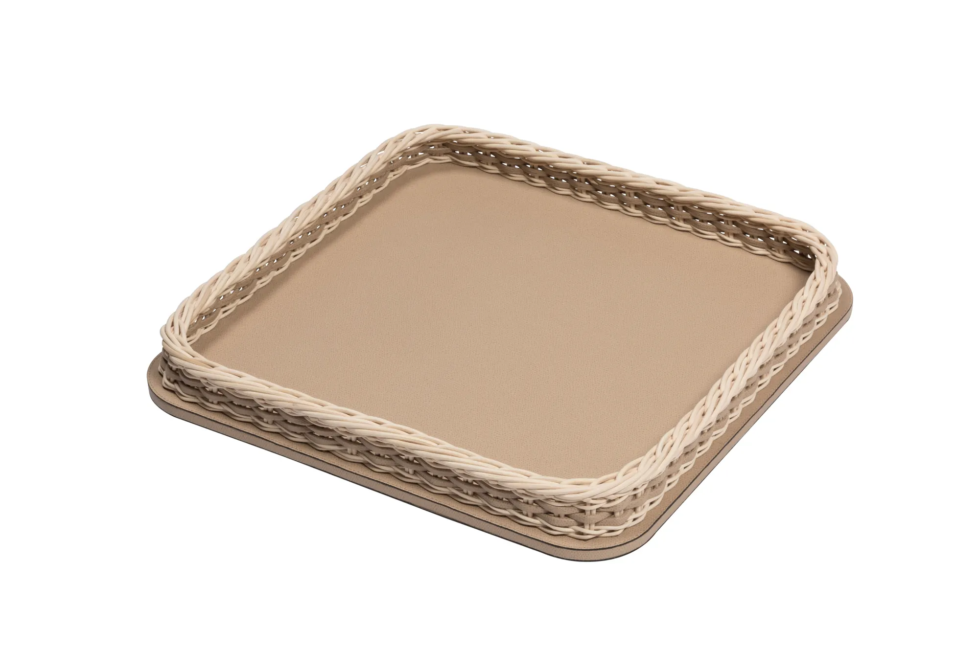 ORSAY LEATHER & RATTAN TRAY SQUARE SMALL