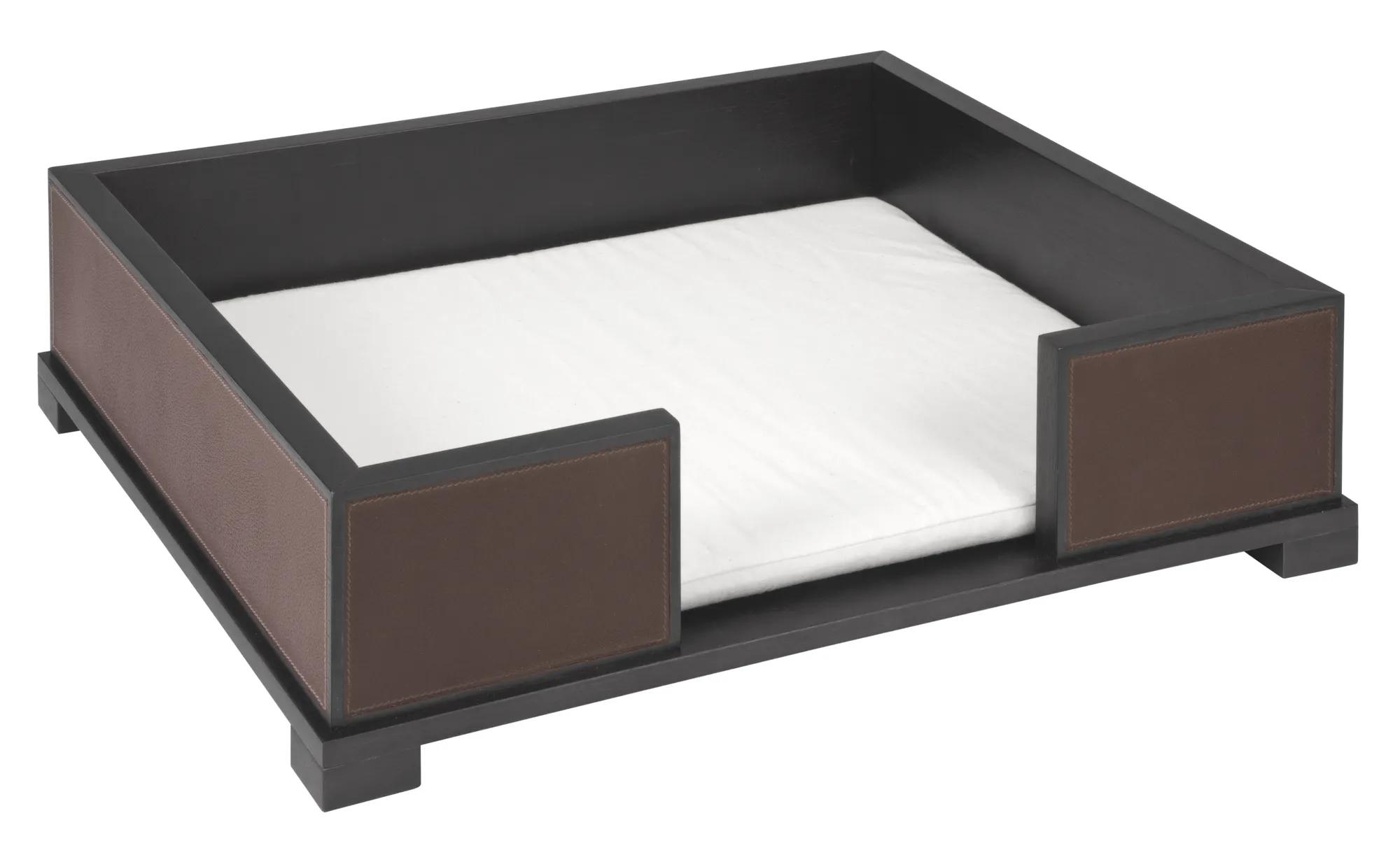 Oak frame (available in three finishes) with embedded leather on the outside. Comes with pillow and removable cushion cover.
