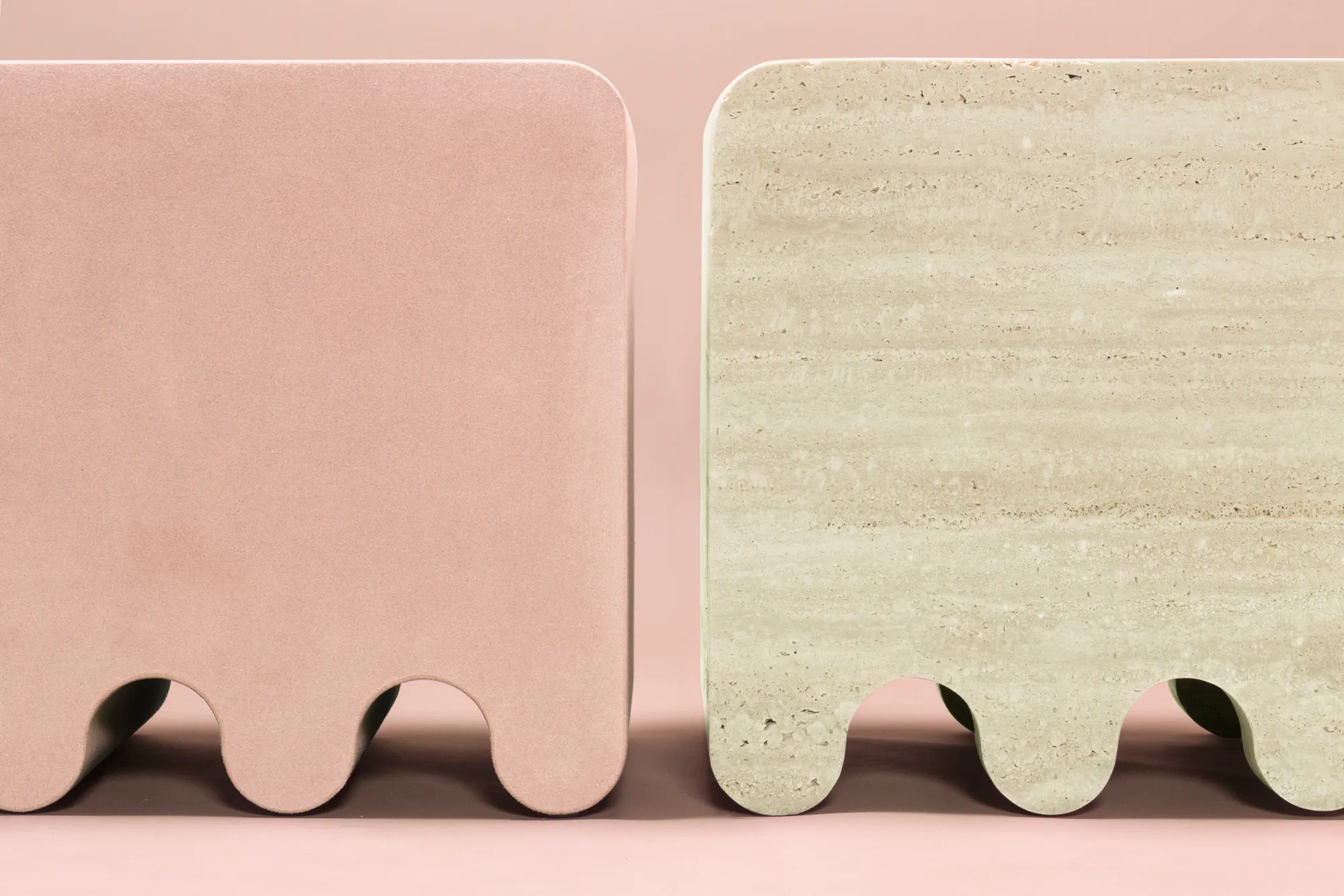 Ossicle is a collection that comprises monolithic seats, benches and tables crafted with a carefully selected range of leather and marble colors and finishes. Their monumental volumes originate from both primal monolithic and contemporary minimal features entwined, while the lines are a reference to the 'Jeu des Osselets', which has roots dating back to ancient Greece and Rome, reinterpreting it according to a modern visual and a sharp humour, creating the perfect balance between organic and pure geometric shapes.