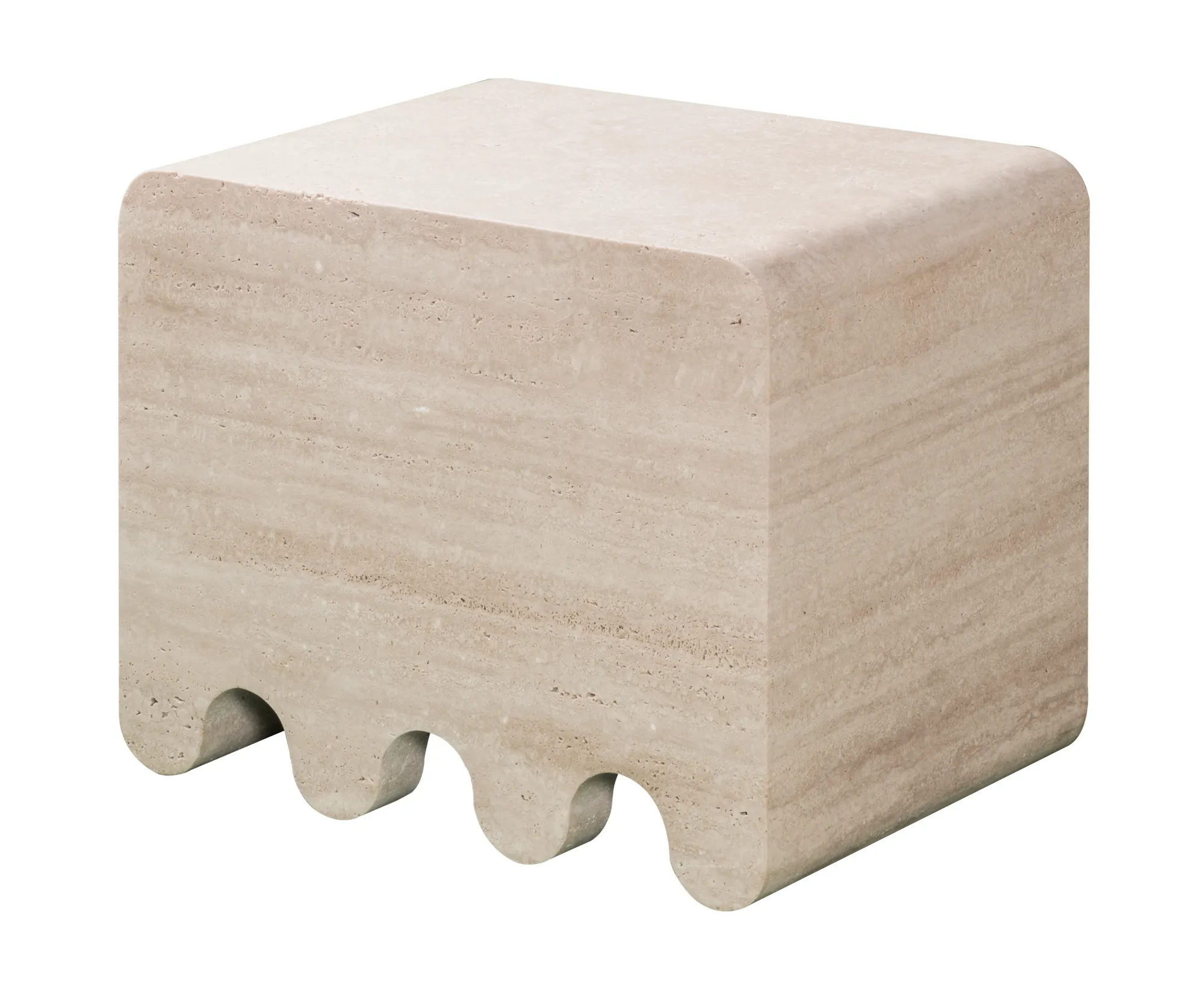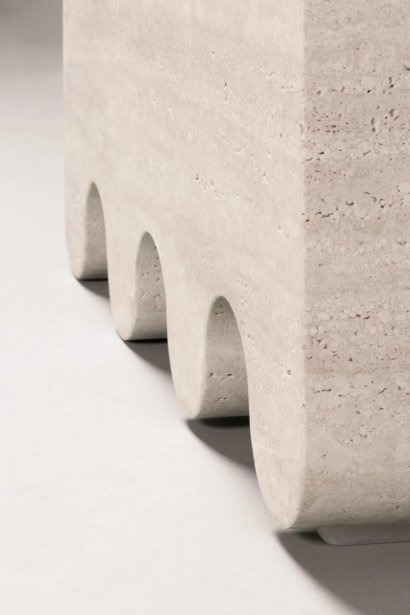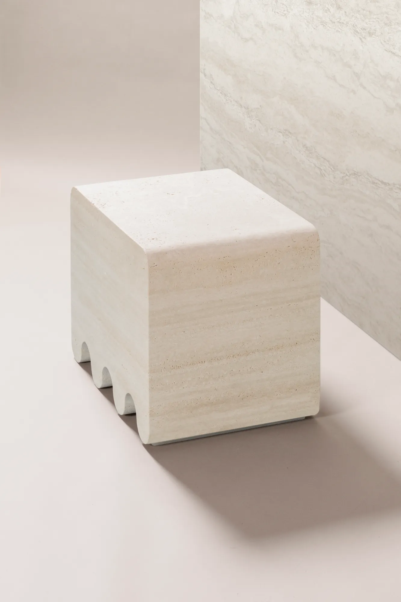 Ossicle is a collection that comprises monolithic seats, benches and tables crafted with a carefully selected range of leather and marble colors and finishes. Their monumental volumes originate from both primal monolithic and contemporary minimal features entwined, while the lines are a reference to the 'Jeu des Osselets', which has roots dating back to ancient Greece and Rome, reinterpreting it according to a modern visual and a sharp humour, creating the perfect balance between organic and pure geometric shapes.