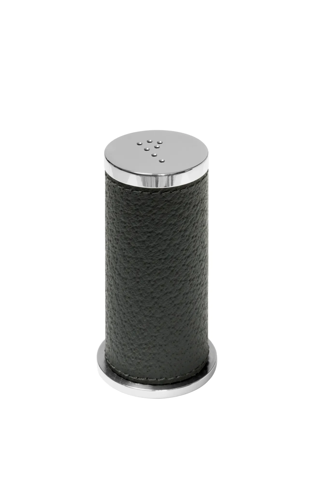 Partially leather-covered stainless steel structure. They feature screw-on bottoms for an easy refill.