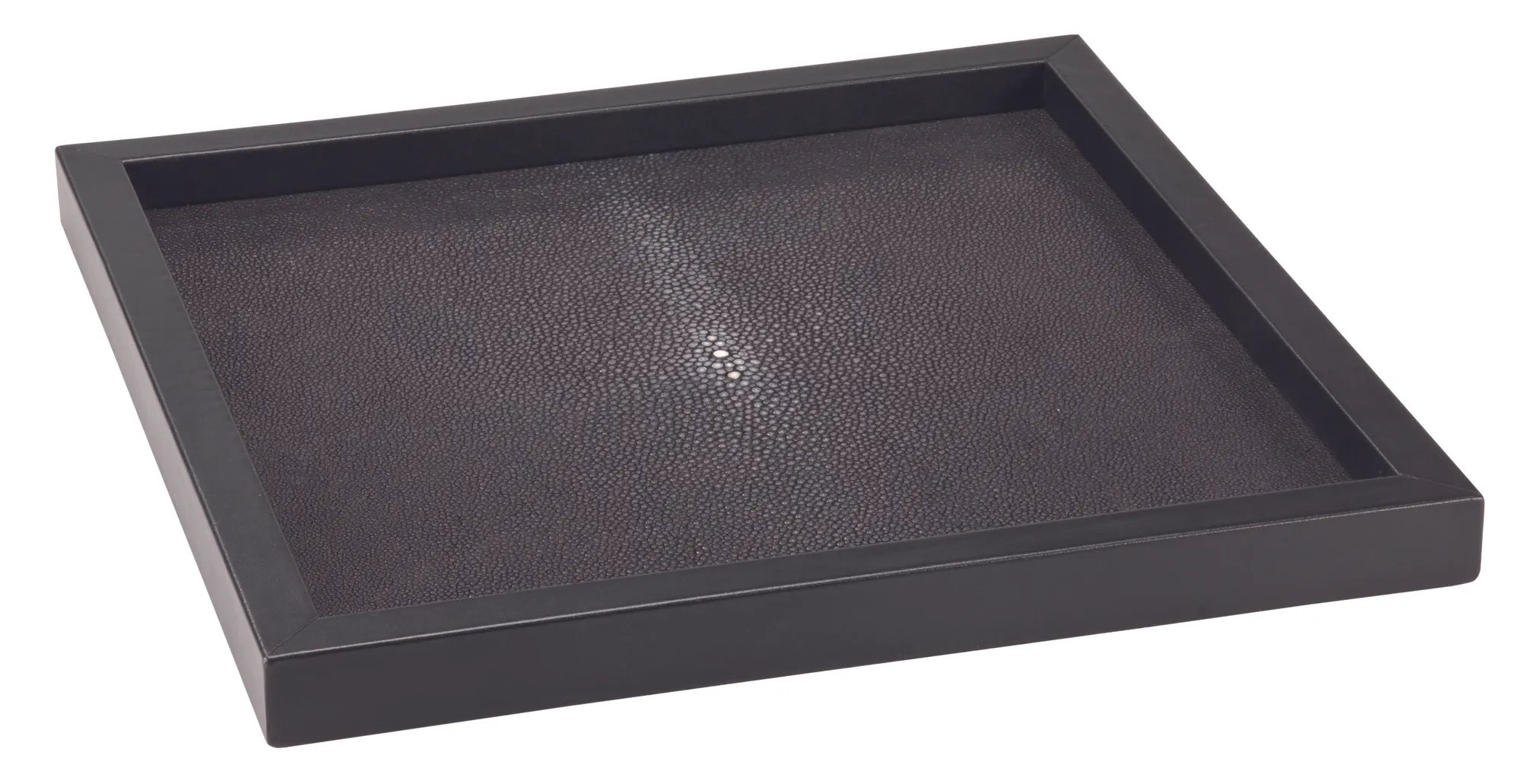 Leather covered wood structure: black calfskin for borders and real shagreen for the top.