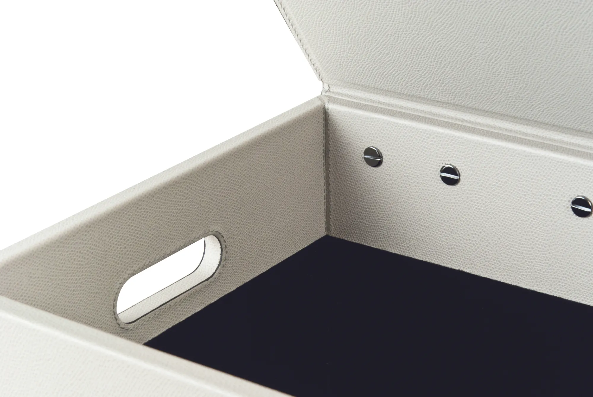 Leather covered wood base with waterproof black interior. Magnetic closure.