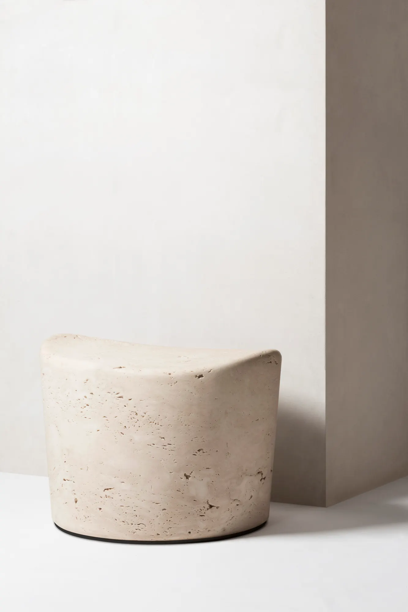 This monolithic pouf boasts elegant curves that perfectly accommodate one's body to ensure comfort. The main structure is placed on a rotating base and is easy to move due to the smoothness of a high quality teflon cushion, able to sustain any weight up to 300kg.