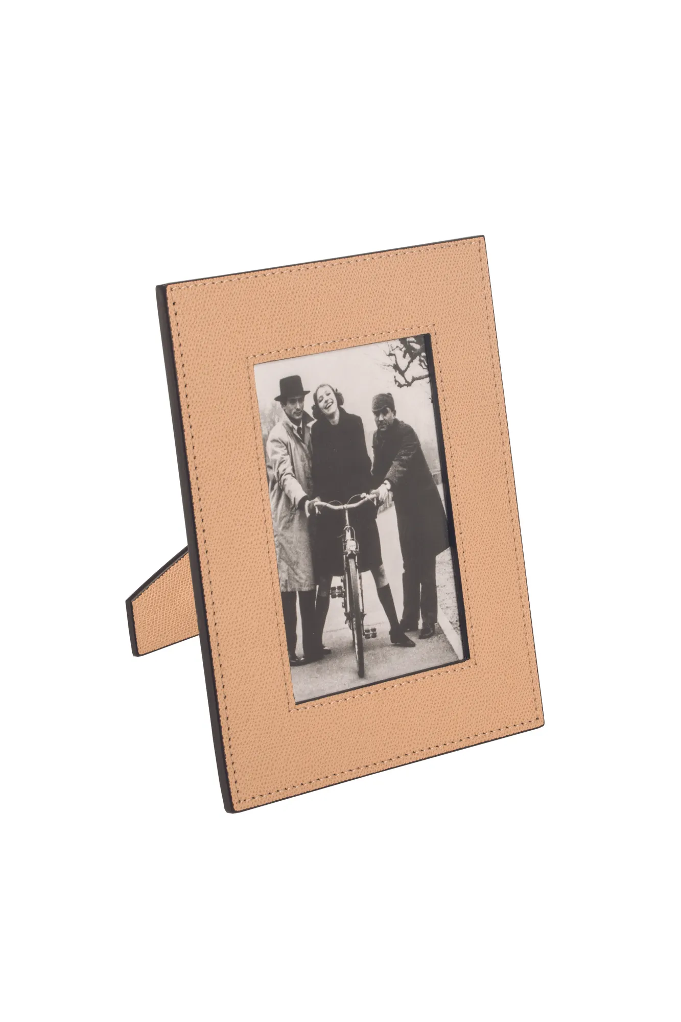 All-leather frame able to stand both horizontally or vertically. Photo protected by flexible plastic.