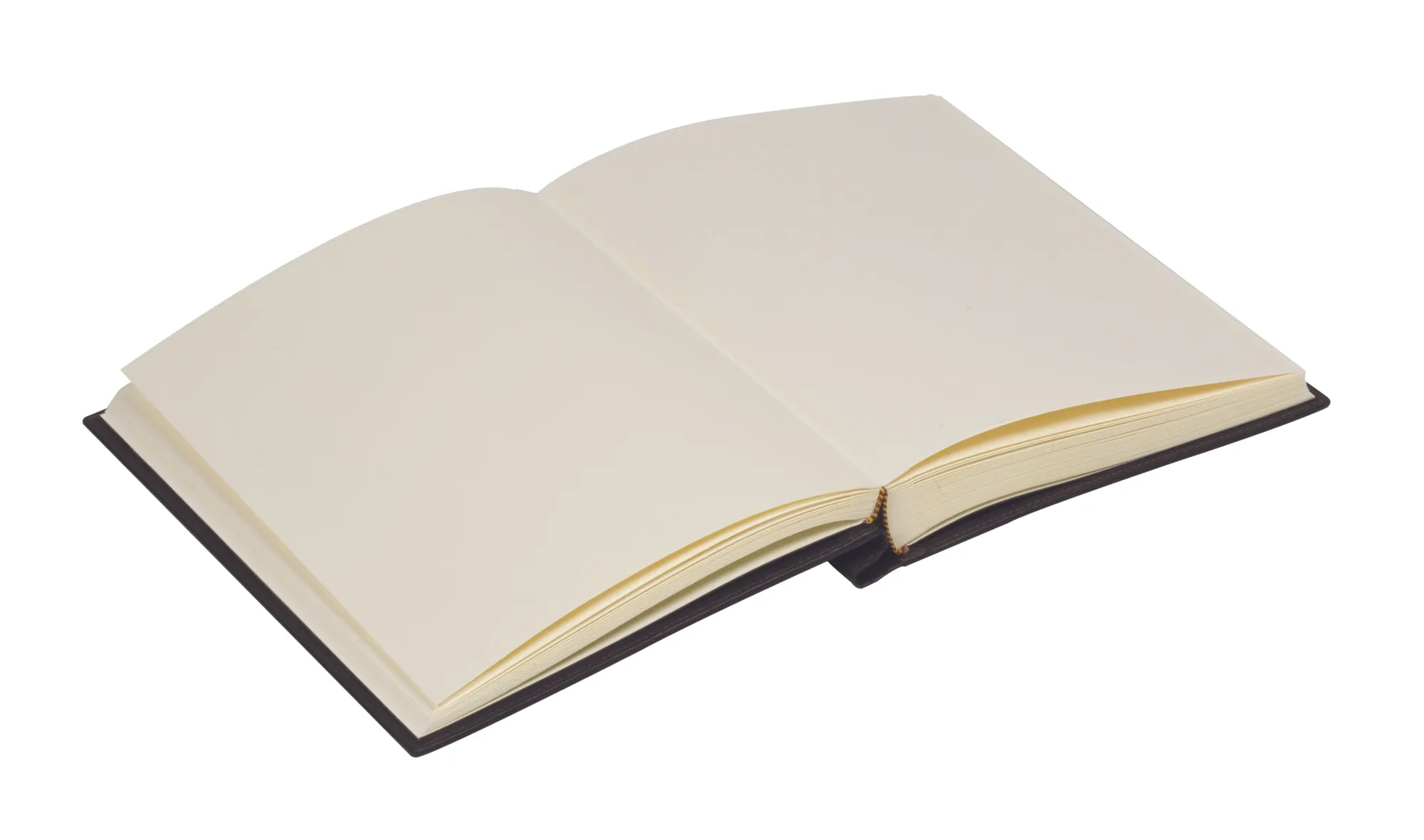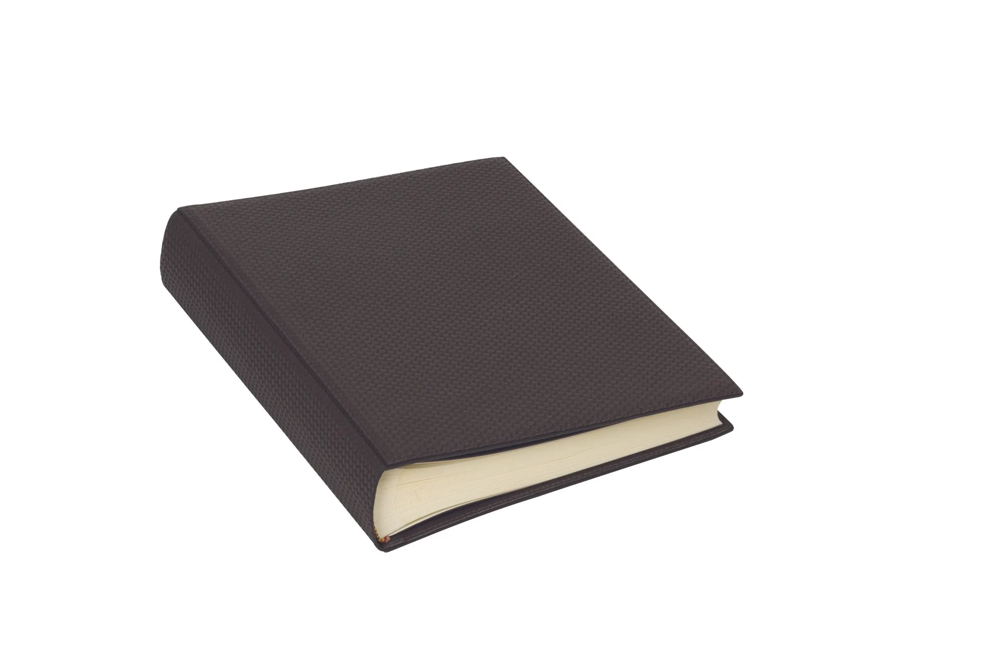 Leather cover and suede lining. White cardboard album interleaved with tissue paper.