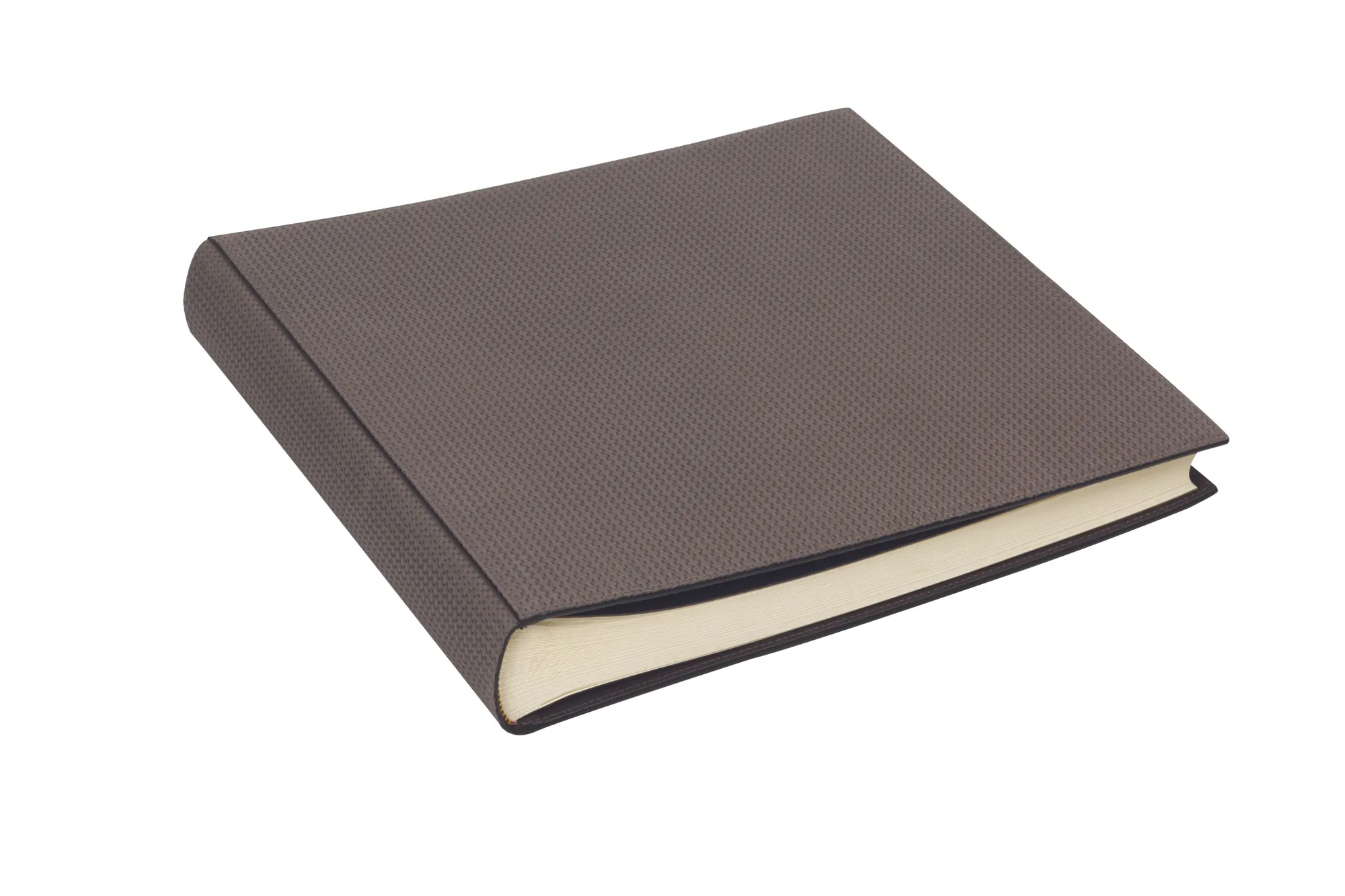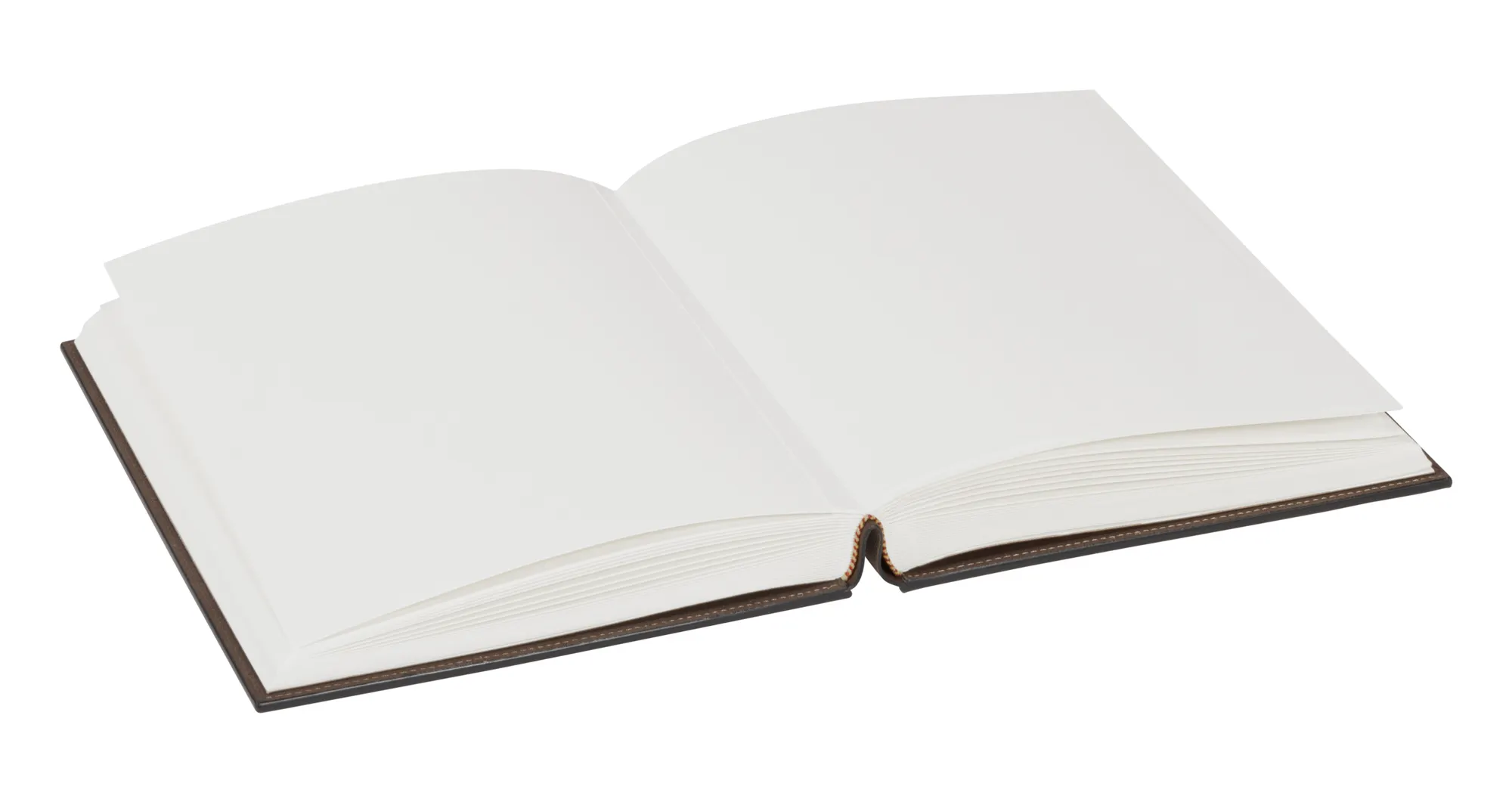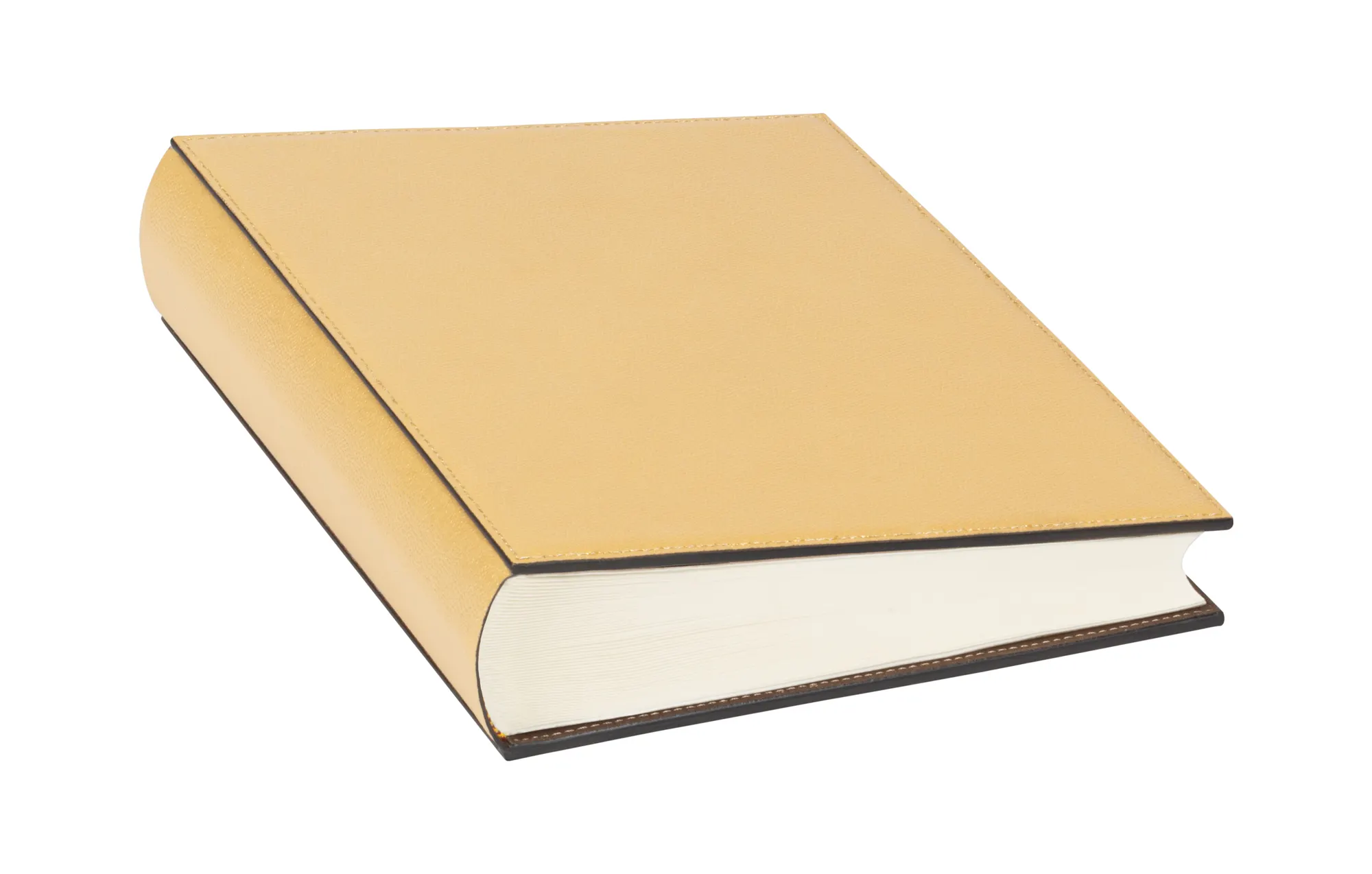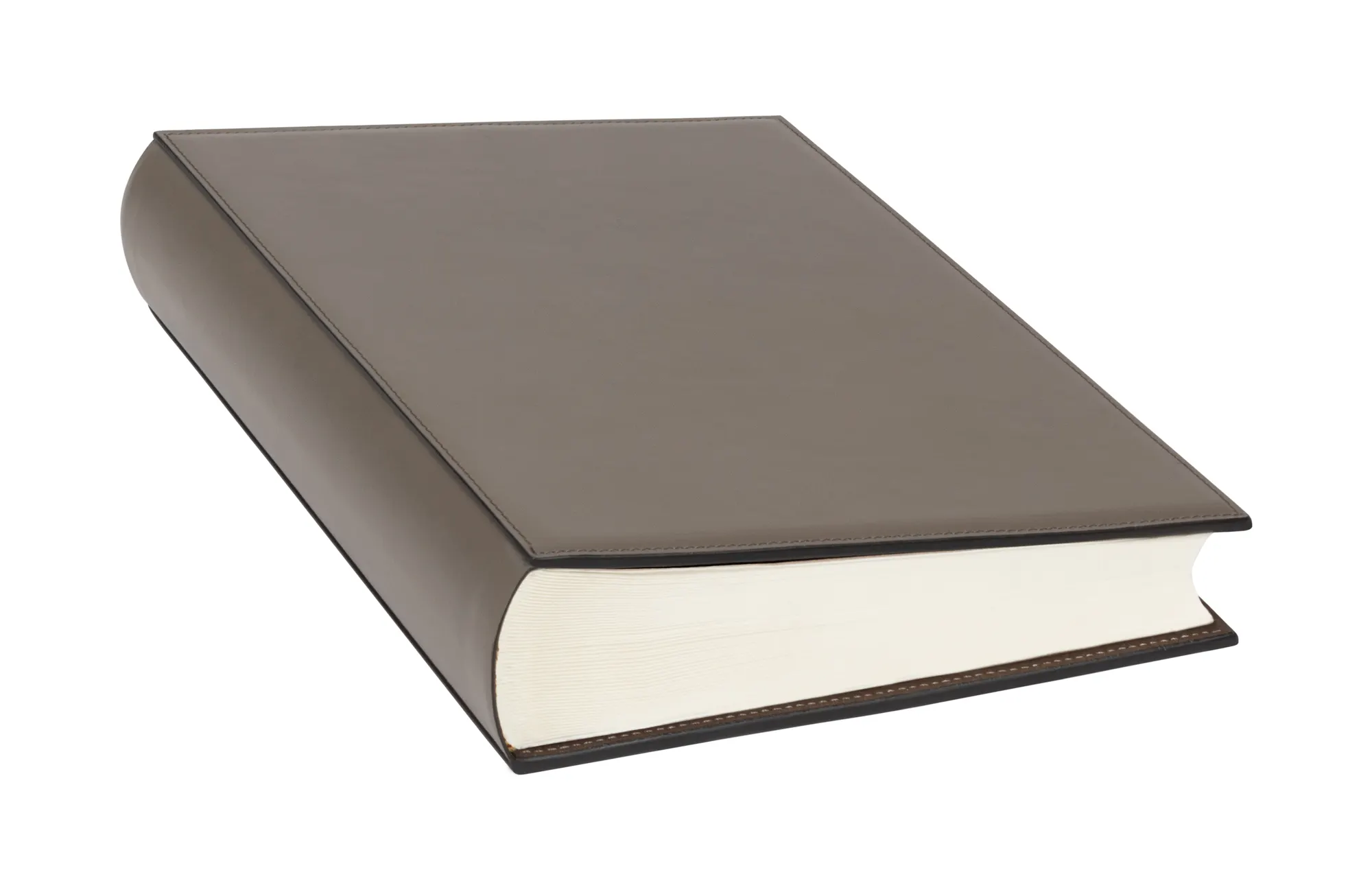 Leather cover and suede lining. White cardboard album interleaved with tissue paper.
