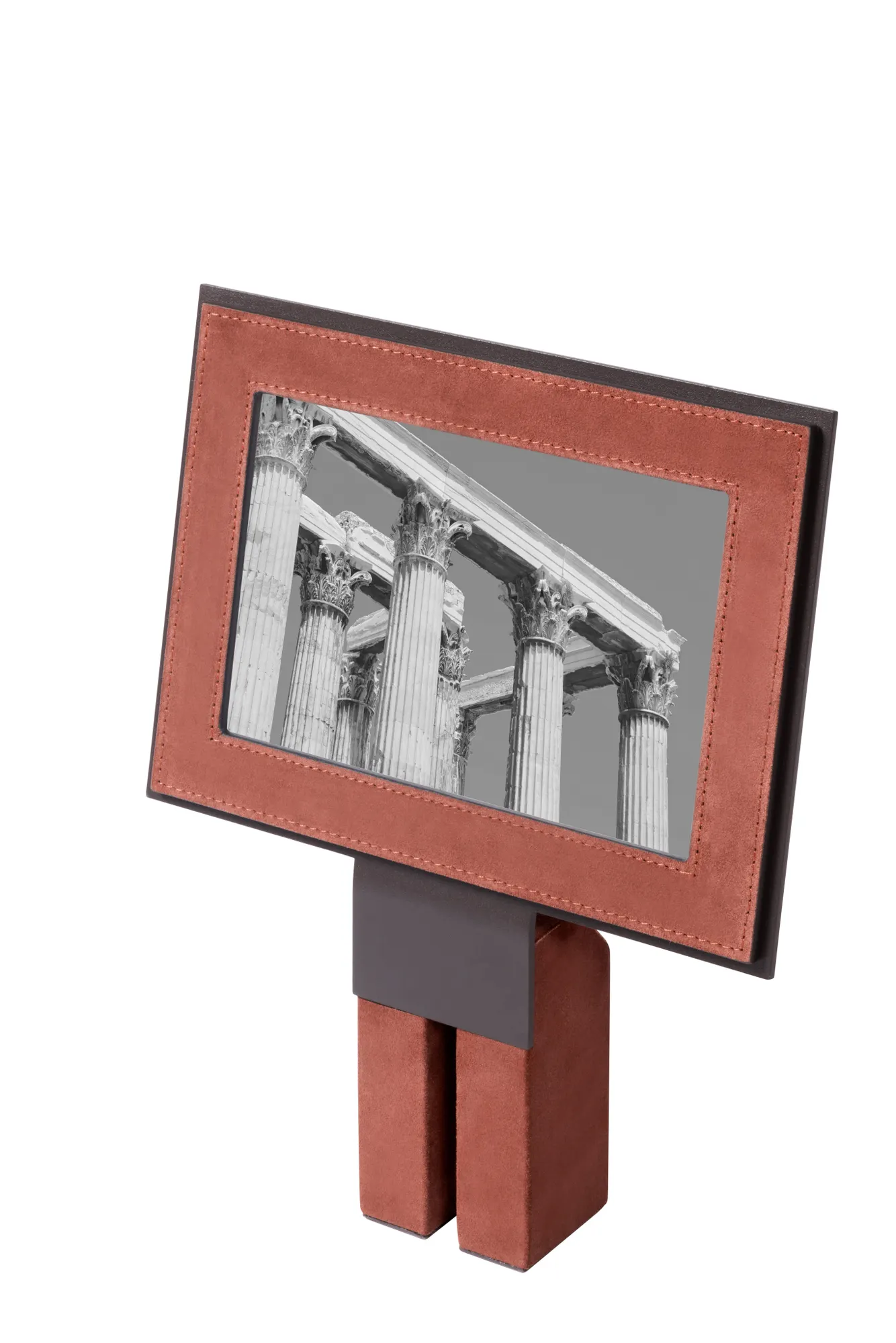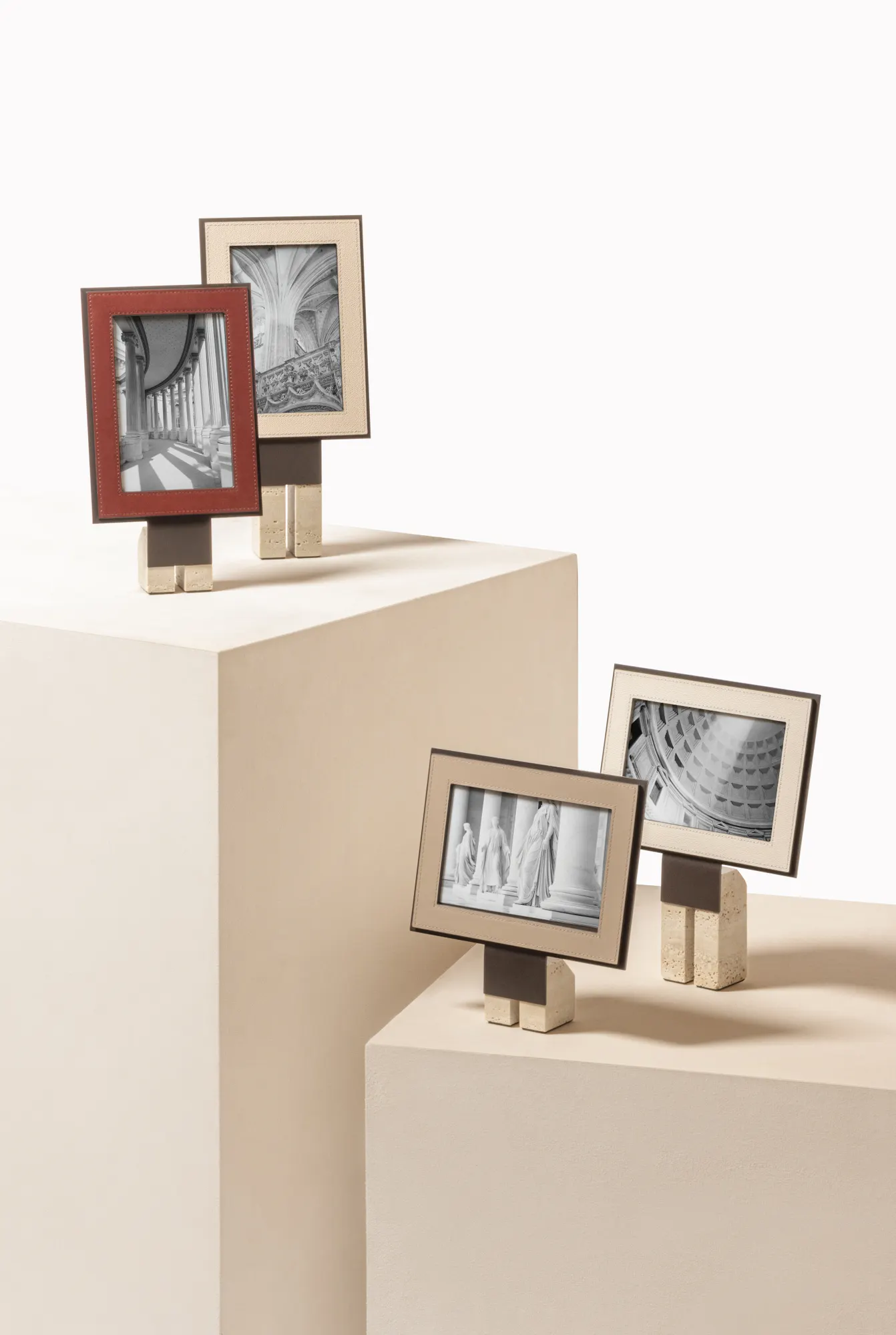 Pillar is an exquisite collection of frames and menu stands that elegantly blend sophistication with contemporary design. Each piece features a meticulously crafted metal frame featuring luxurious all-leather accents or an elegant combination of leather and travertine. Available in various heights and both vertical and horizontal orientations, this series' frames offer exceptional versatility for any display. Perfect for showcasing pictures, restaurant menus, or spa and hospitality information, 'Pillar' redefines presentation. The distinctive monolithic column-like base, reminiscent of classic essential architecture, imparts a sense of timeless strength and elegance, making this collection an ideal addition to both modern and classic interiors. Design by Simone Fanciullacci.