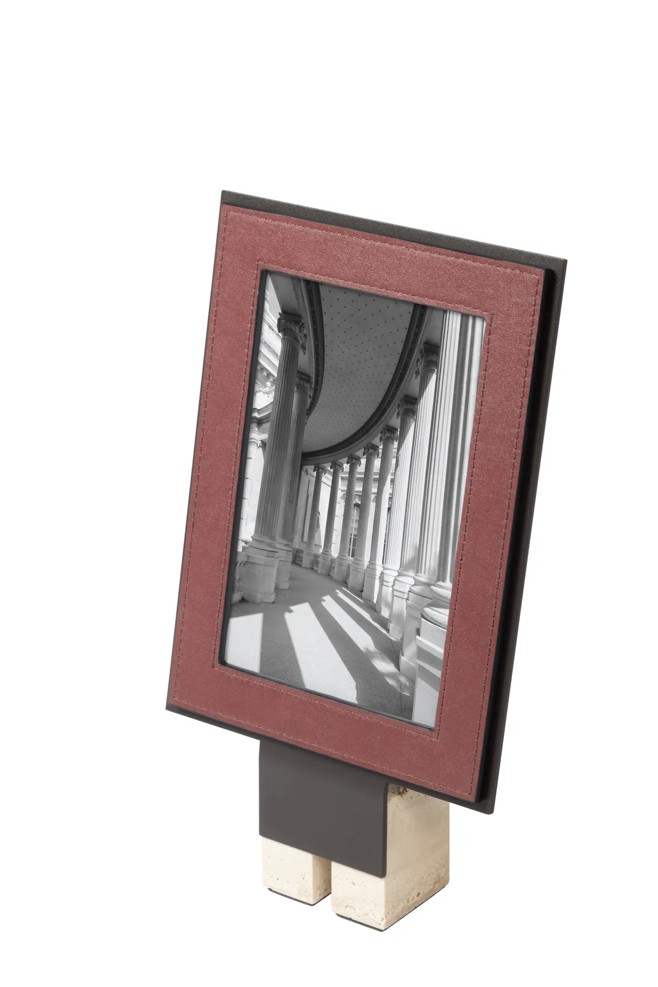 Pillar is an exquisite collection of frames and menu stands that elegantly blend sophistication with contemporary design. Each piece features a meticulously crafted metal frame featuring luxurious all-leather accents or an elegant combination of leather and travertine. Available in various heights and both vertical and horizontal orientations, this series' frames offer exceptional versatility for any display. Perfect for showcasing pictures, restaurant menus, or spa and hospitality information, 'Pillar' redefines presentation. The distinctive monolithic column-like base, reminiscent of classic essential architecture, imparts a sense of timeless strength and elegance, making this collection an ideal addition to both modern and classic interiors. Design by Simone Fanciullacci.