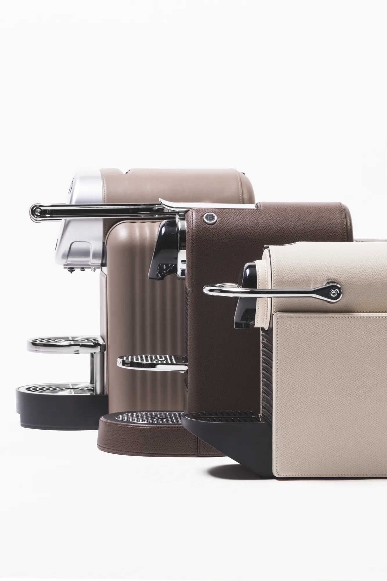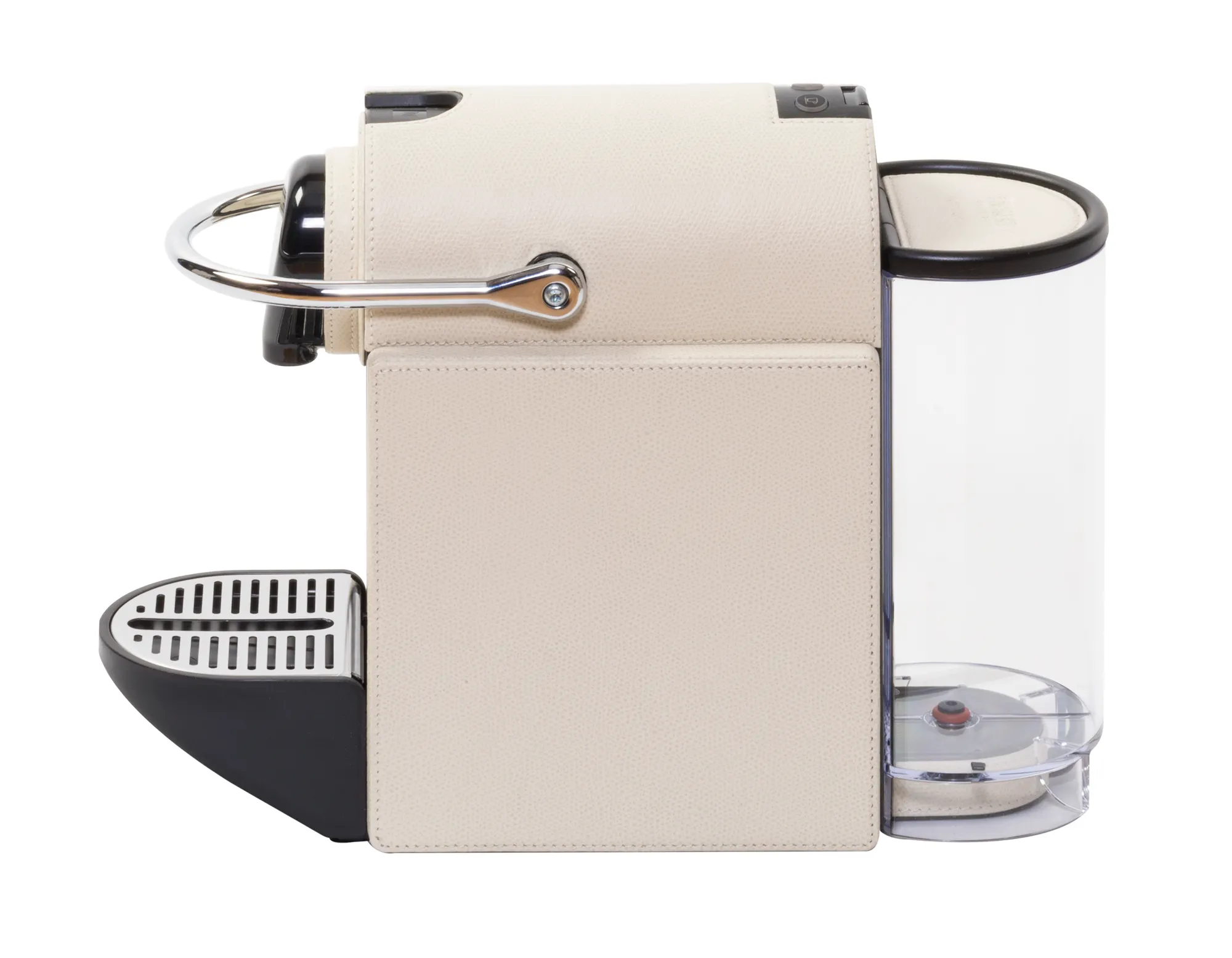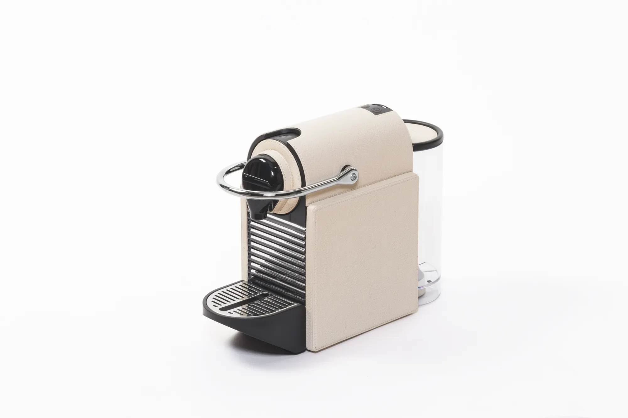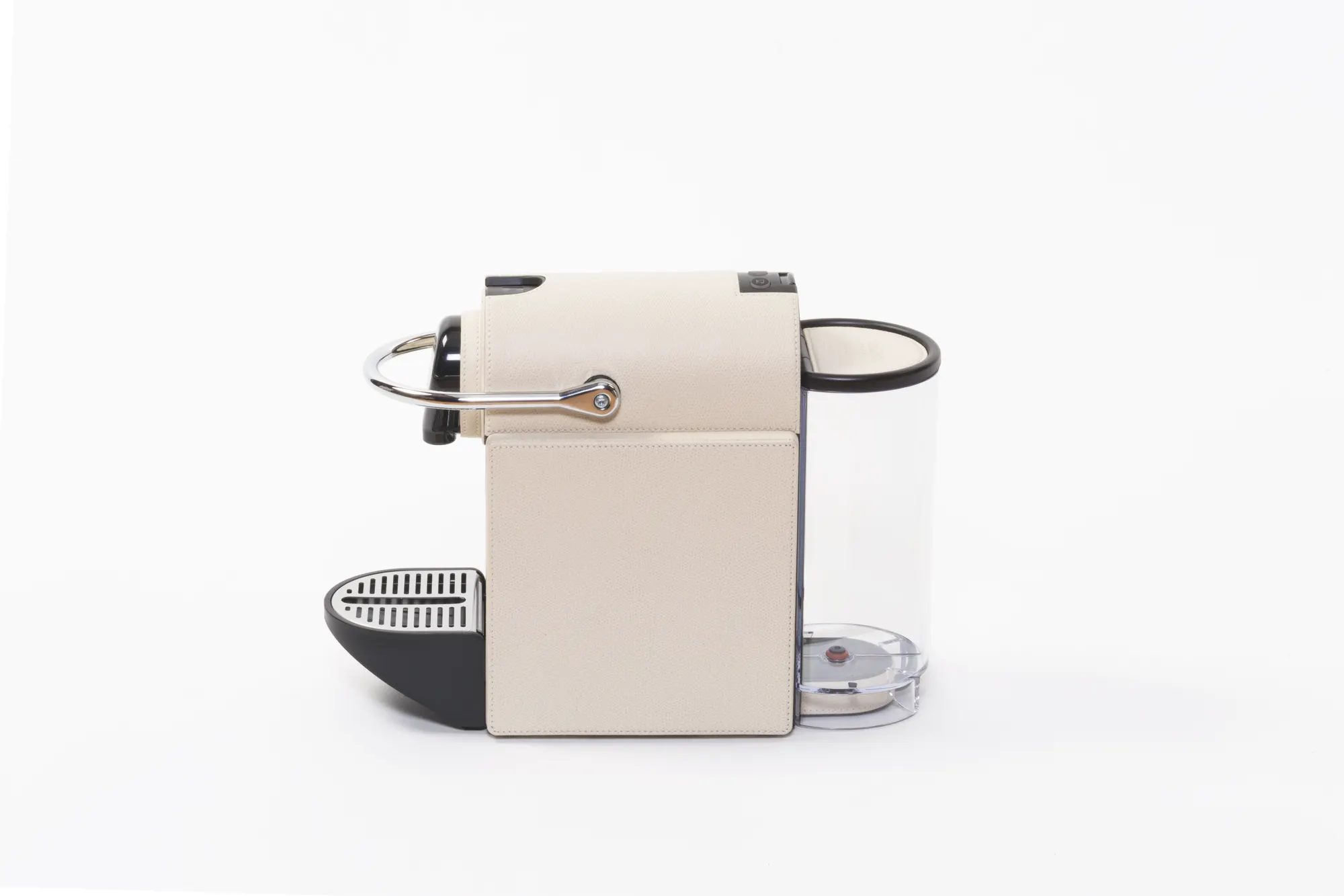 Simplified version for hospitality. Leather-bound Nespresso machine. It uses Nespresso classic capsules. Voltage available: 110V or 220V.