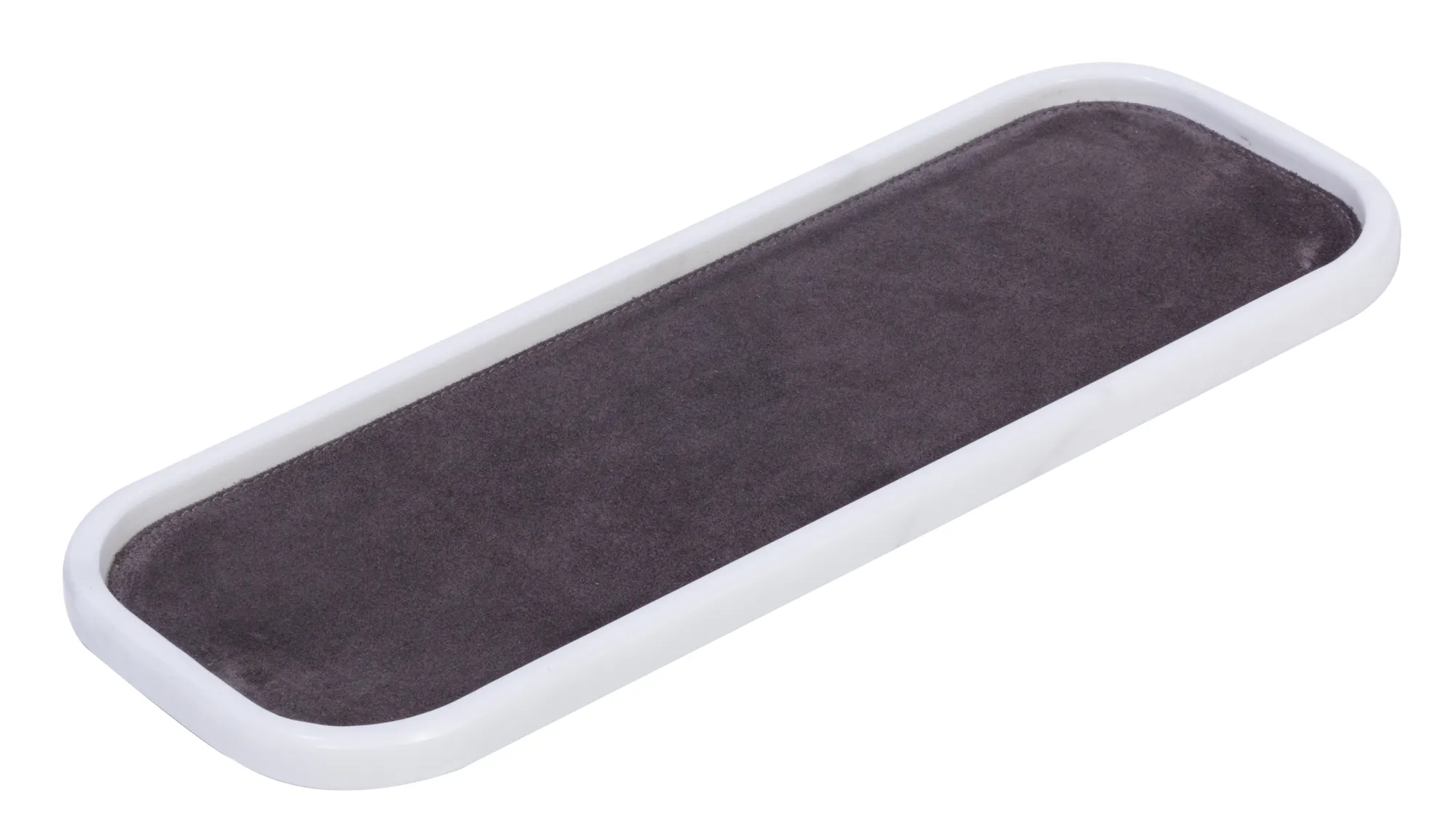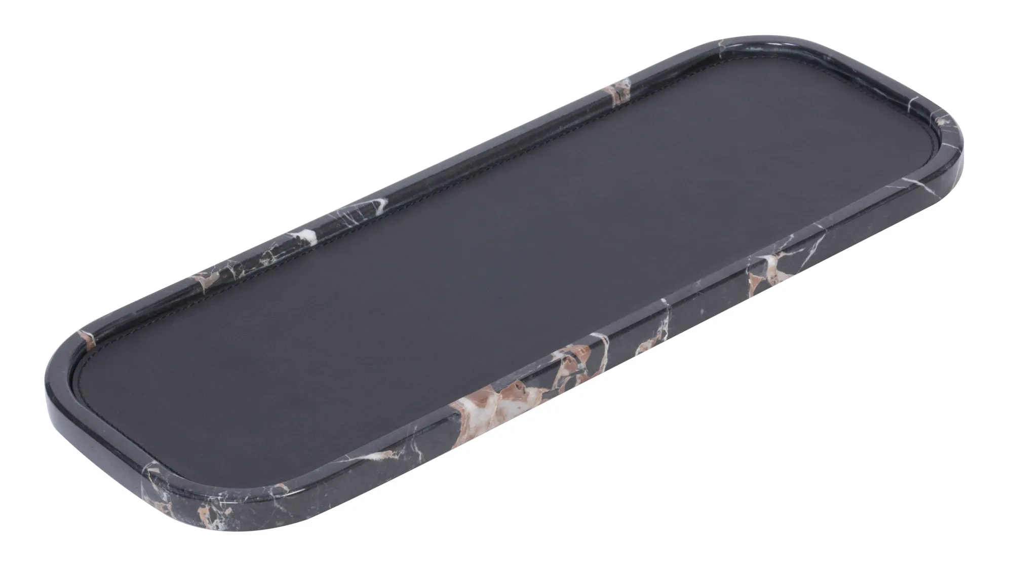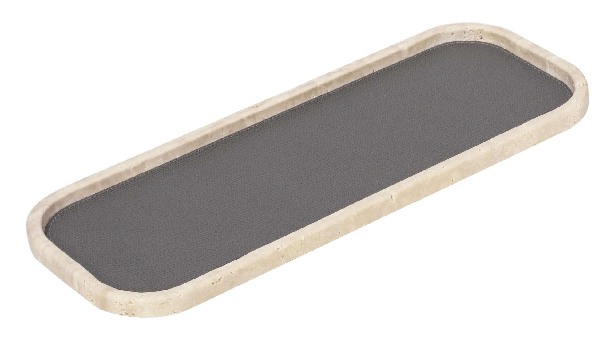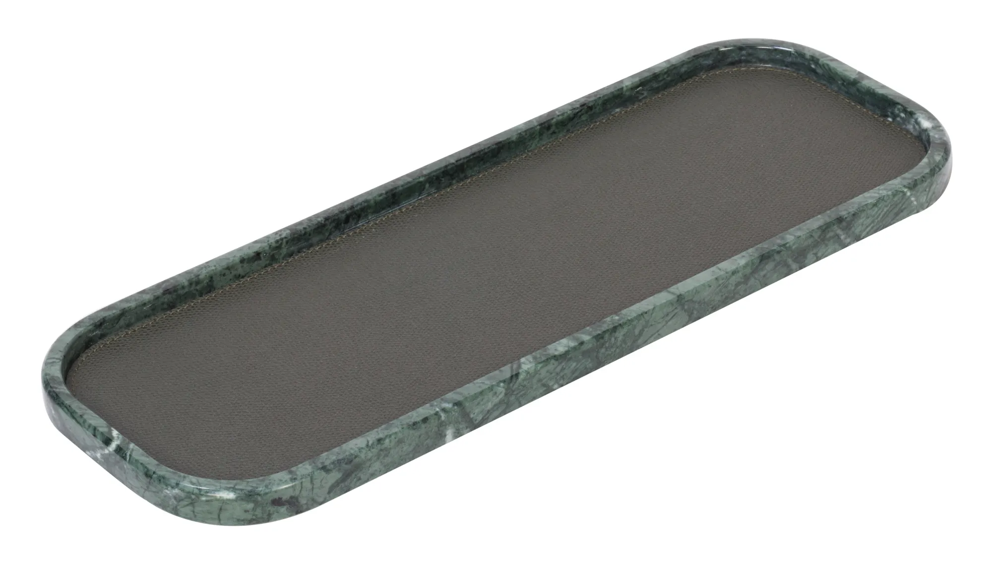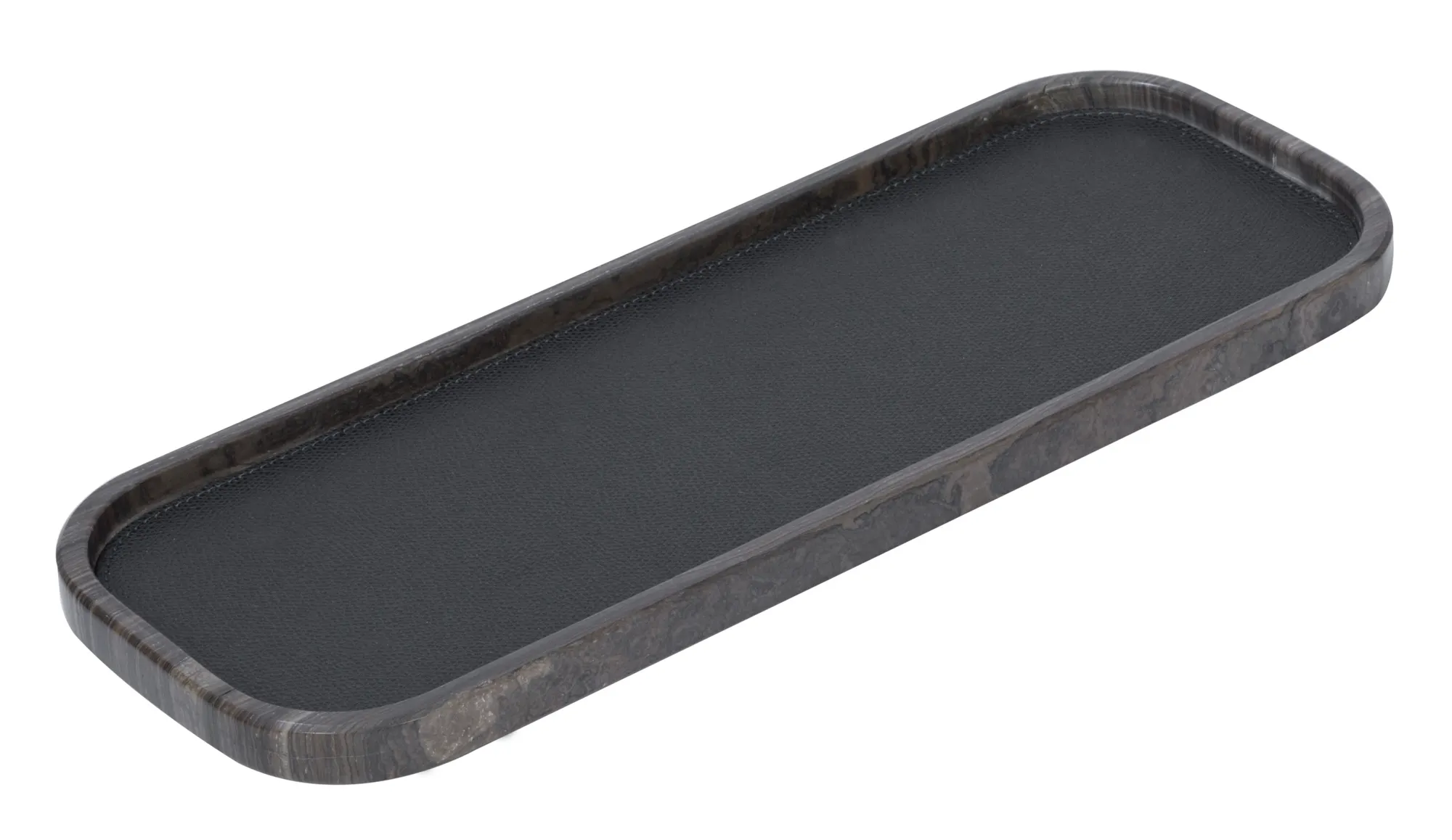 Marble piece with leather insert and bottom in suede. Each piece offers a unique stone pattern. Custom sizes available on request.